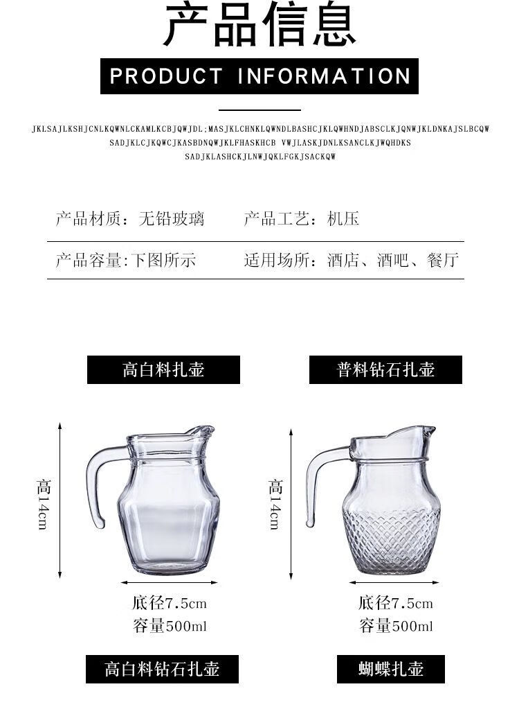 Thickened glass decanter, white wine and foreign wine pitcher, red wine wine divider, ktv cocktail jug, wedding banquet wine set 500ML 500ml, thickened ordinary diamond pitcher