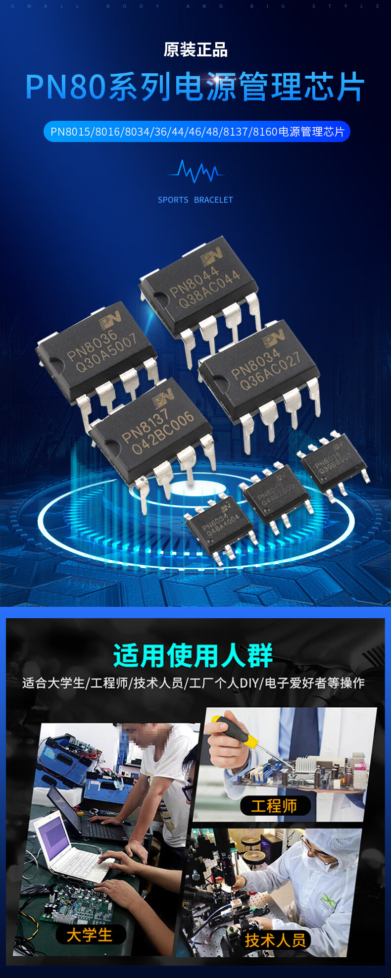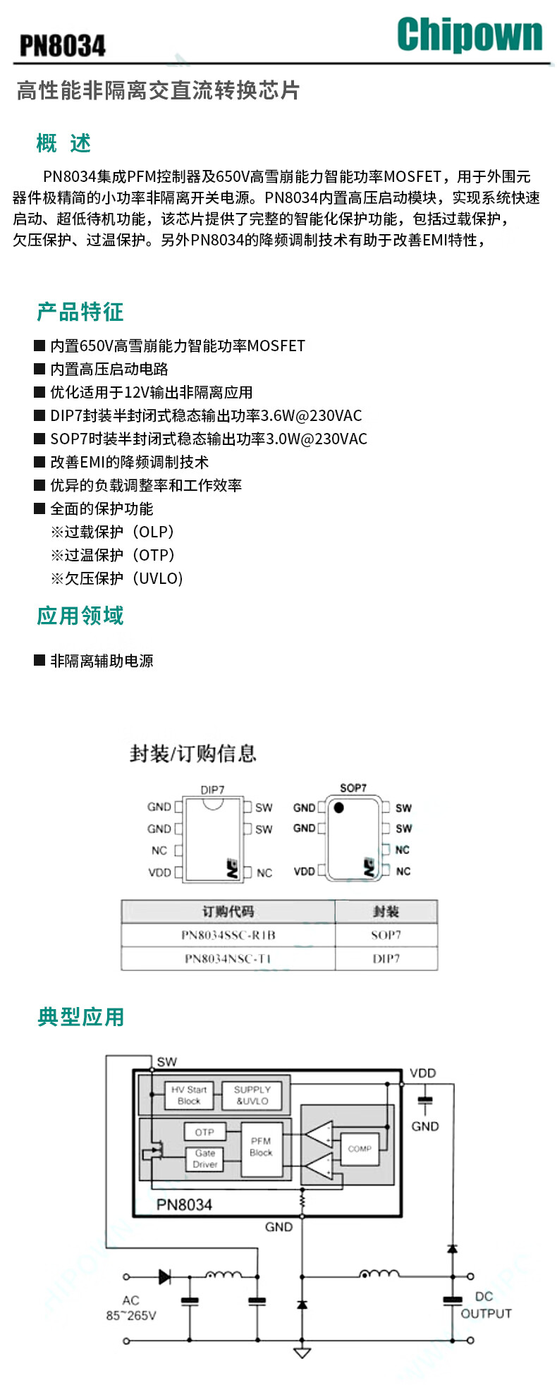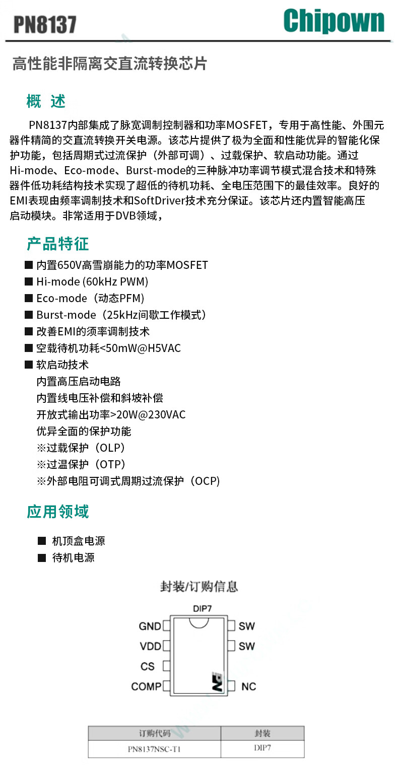 Original genuine PN8015/8016/8034/36/44/46/48/8137/8160 power management chip Xinpeng Micro PN8034SOP7 No Specifications