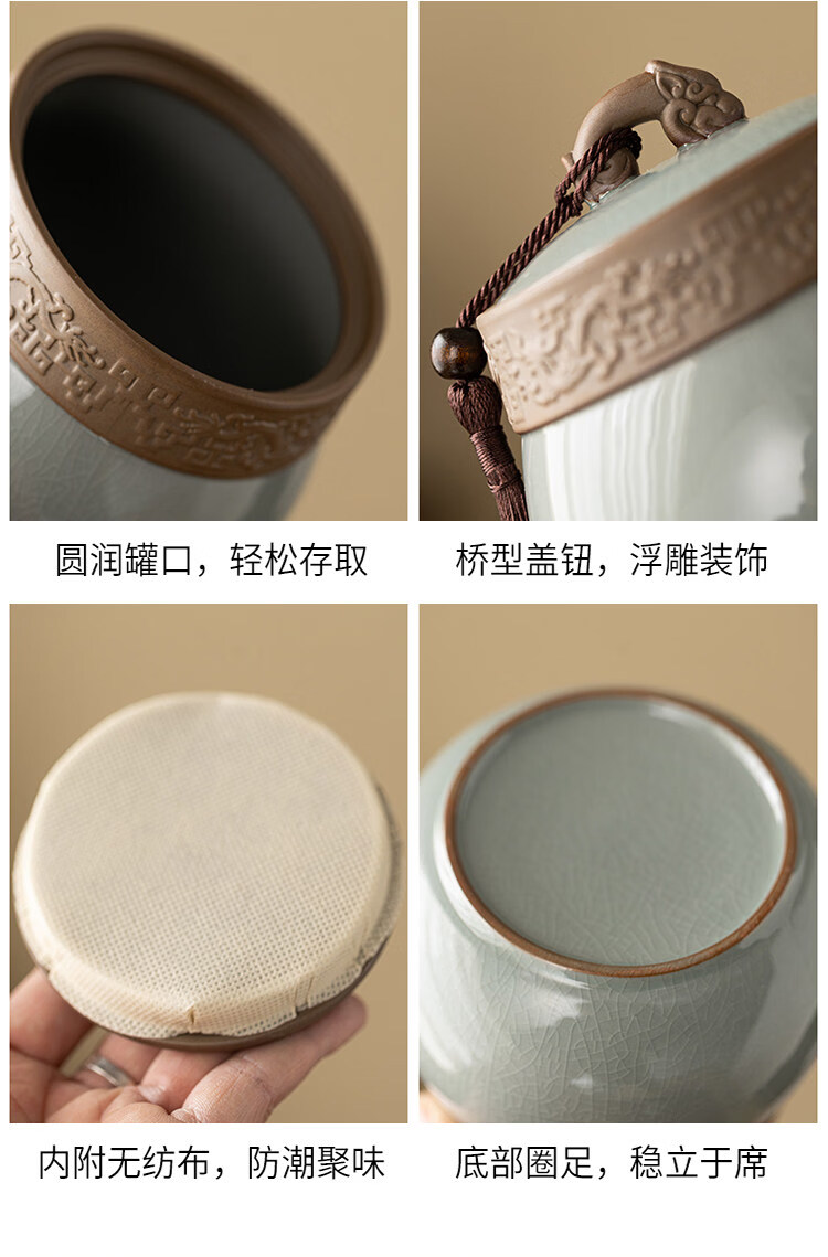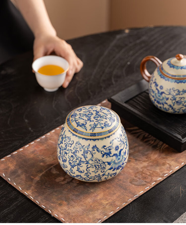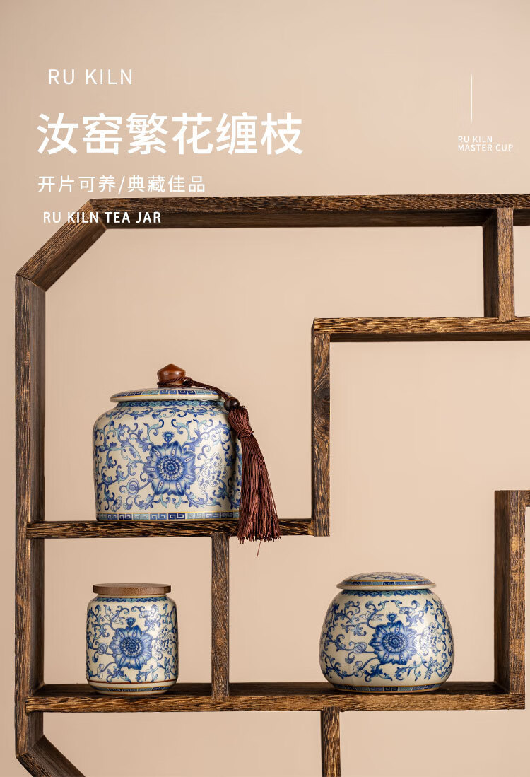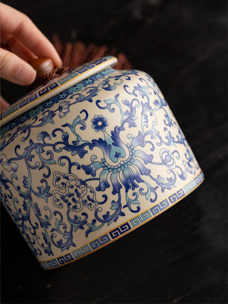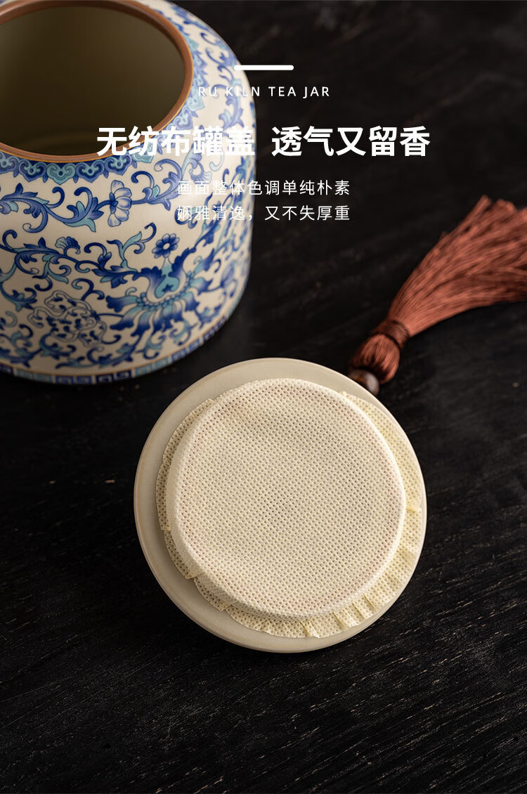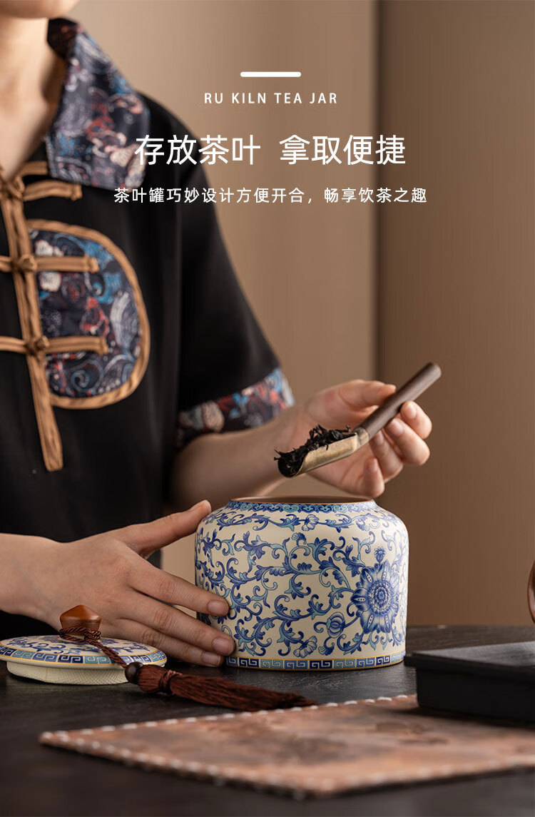 Jinpan blue and white Ru kiln tea jar large high-end sealed jar household ceramic moisture-proof tea jar Chinese tea storage tea jar Panzhilian blue and white Ru kiln-large tea jar