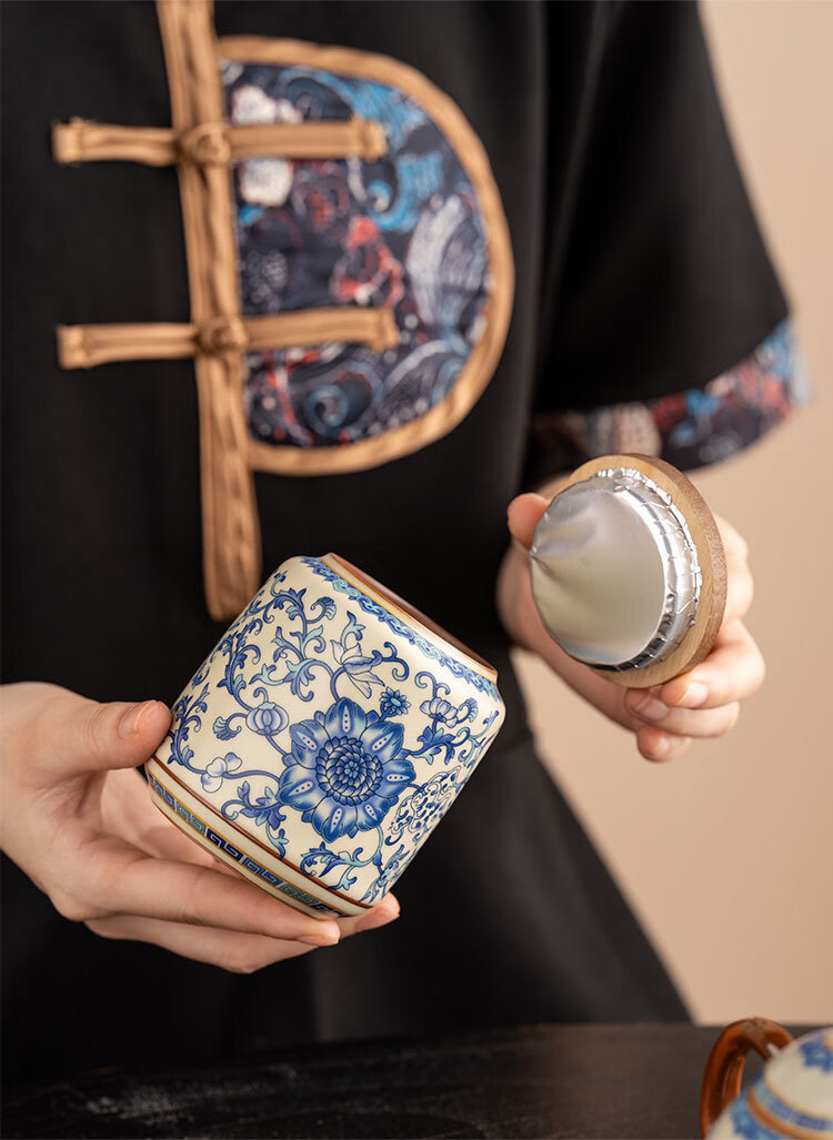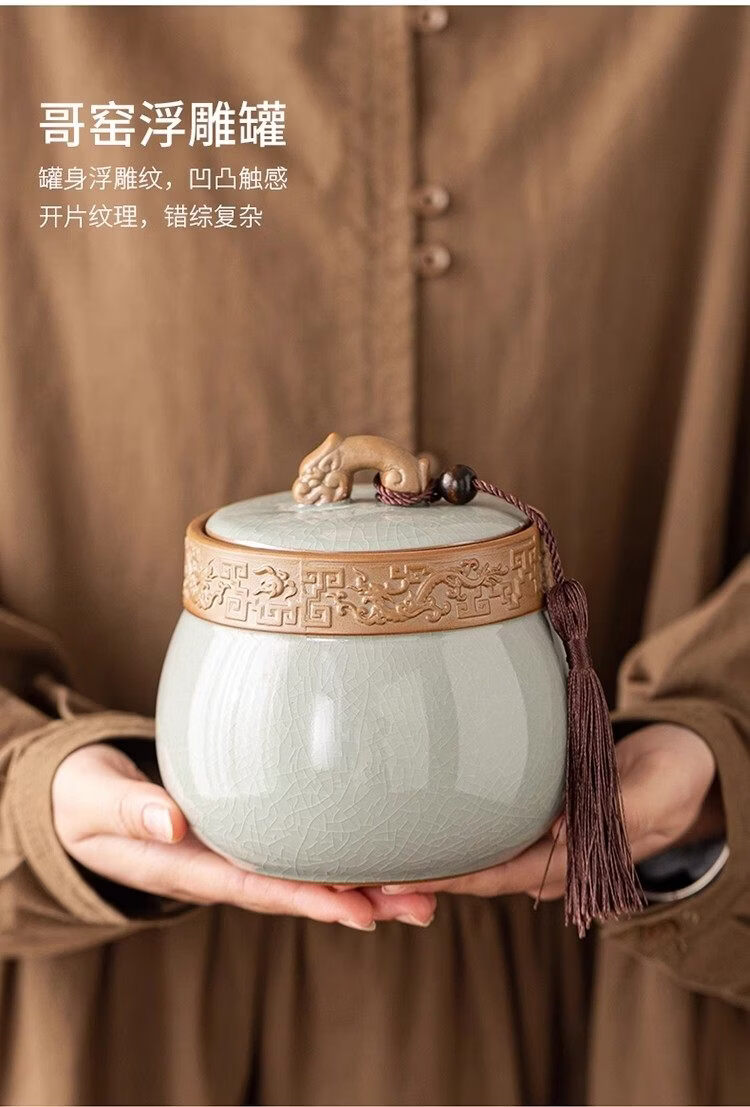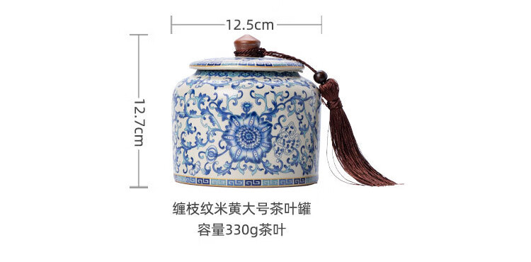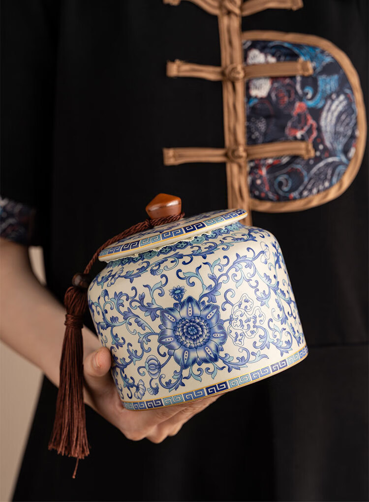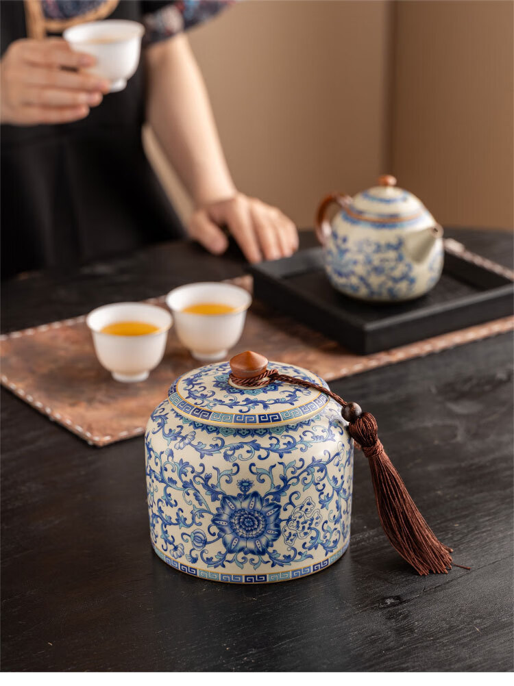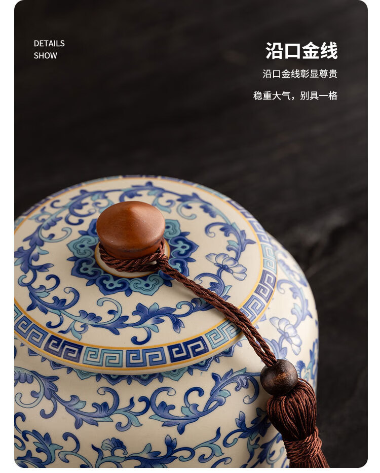 Jinpan blue and white Ru kiln tea jar large high-end sealed jar household ceramic moisture-proof tea jar Chinese tea storage tea jar Panzhilian blue and white Ru kiln-large tea jar