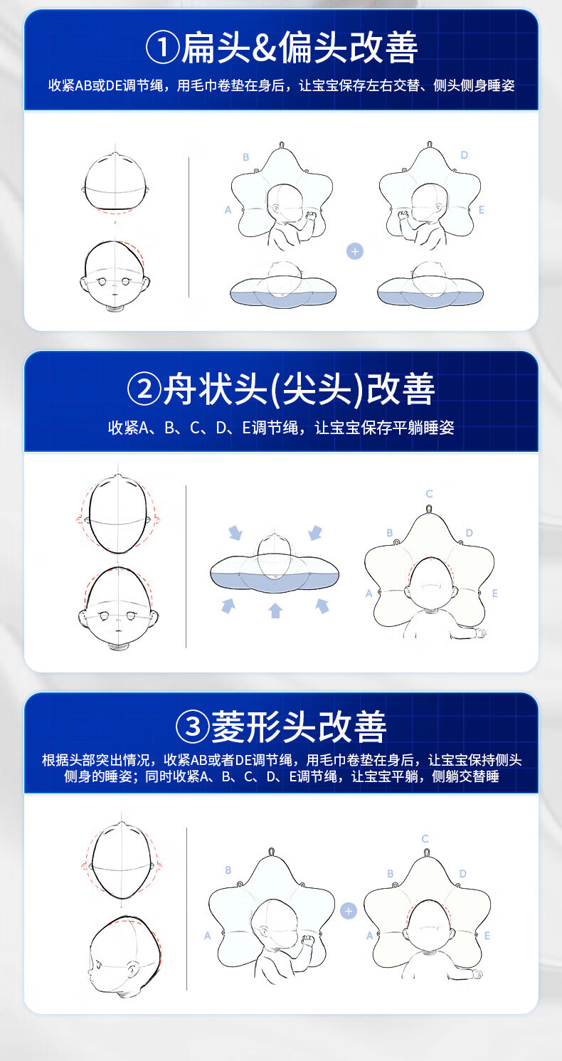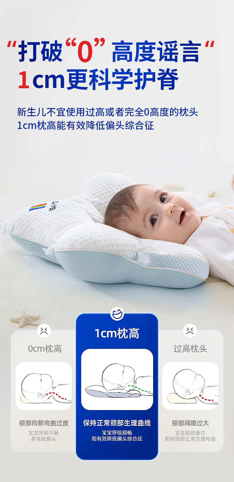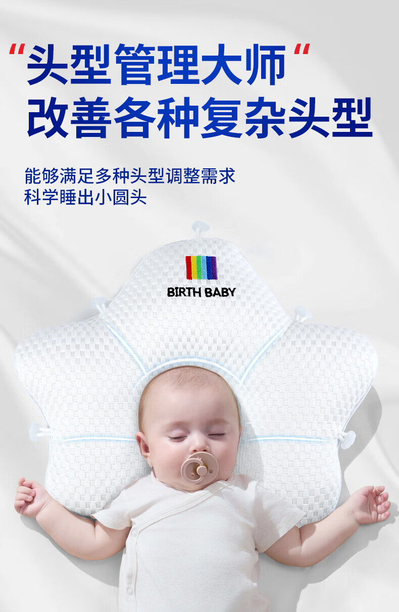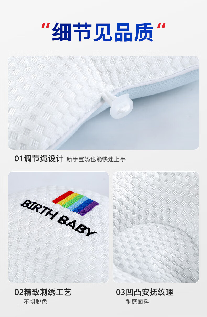 Bei Chuzhong shaped pillow for babies 0-6 months sleeping with round heads 0-1 years old baby pillow to correct lopsided head shape newborn child pillow white and blue 0-6 months 10A antibacterial maternal and infant grade 0-2-3 years old baby head shape correction adjustable drawstring summer machine washable medical