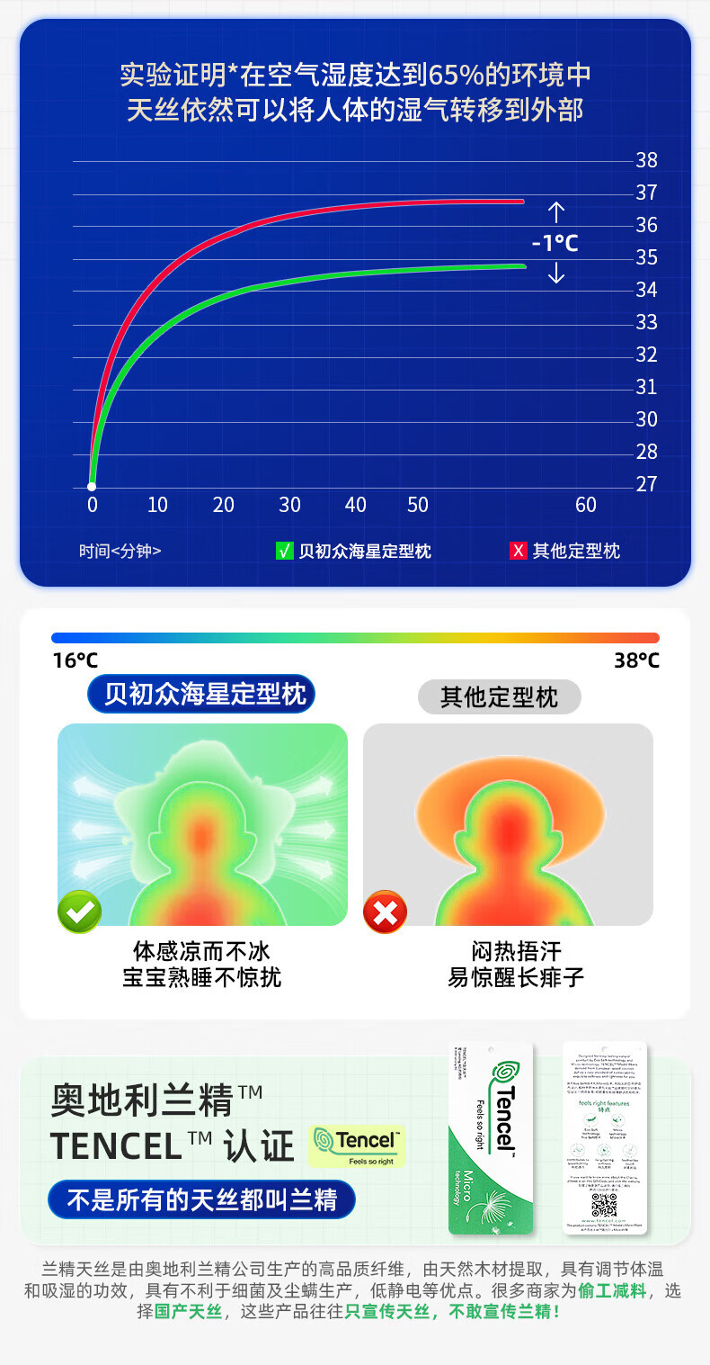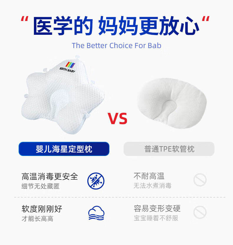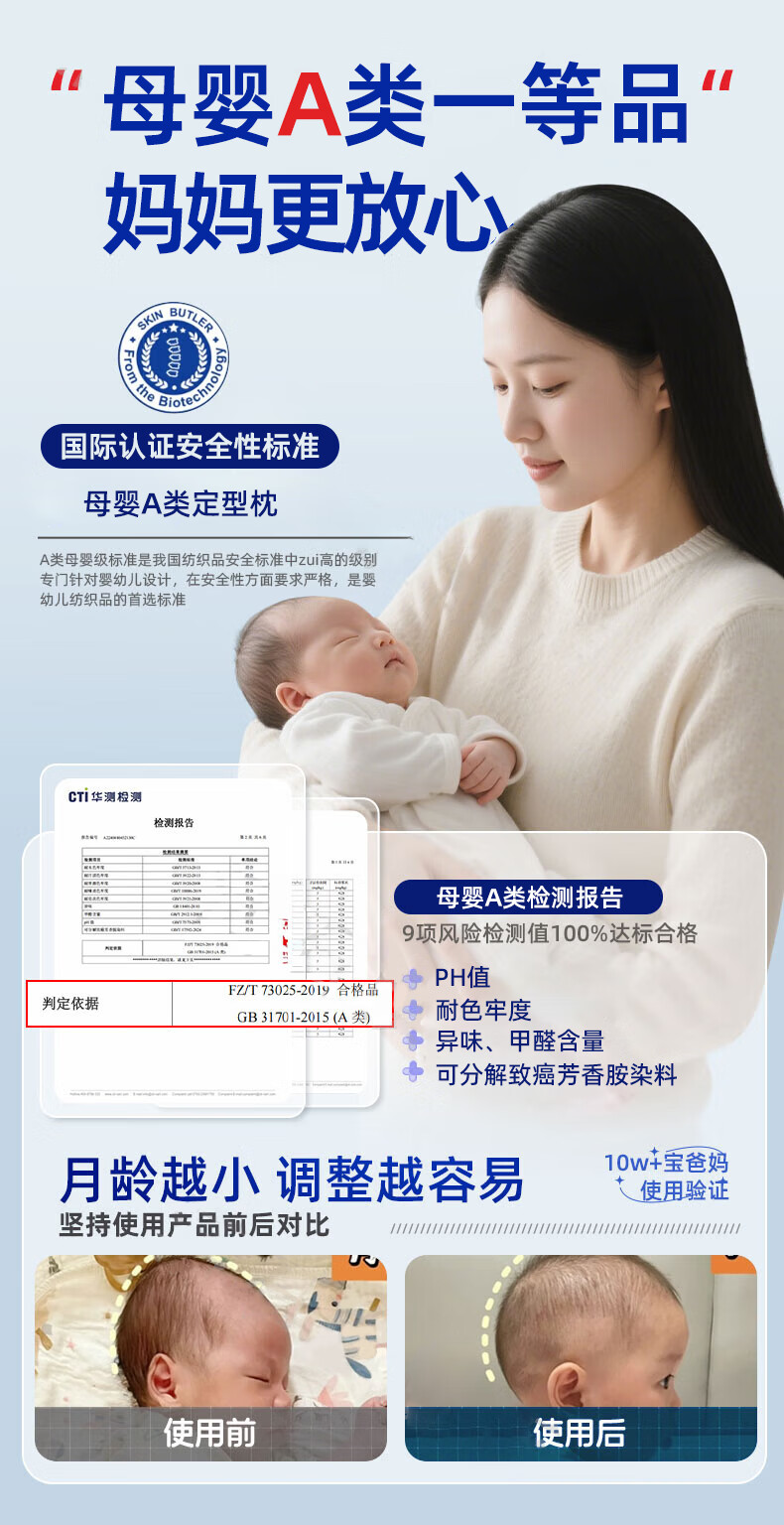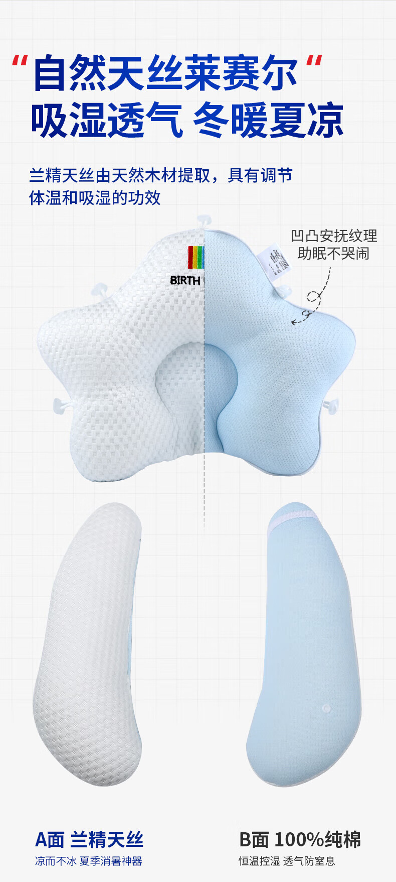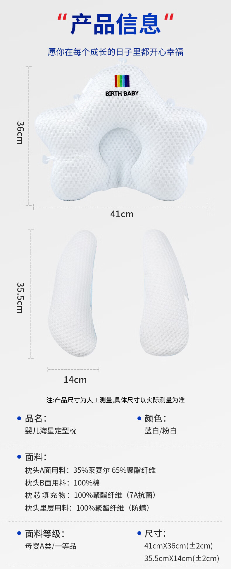 Bei Chuzhong shaped pillow for babies 0-6 months sleeping with round heads 0-1 years old baby pillow to correct lopsided head shape newborn child pillow white and blue 0-6 months 10A antibacterial maternal and infant grade 0-2-3 years old baby head shape correction adjustable drawstring summer machine washable medical