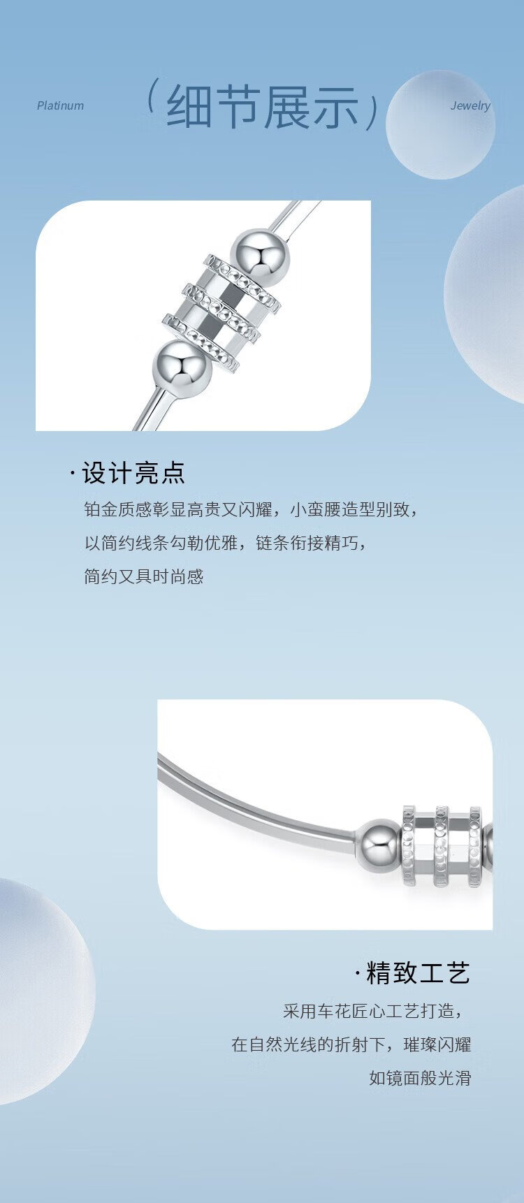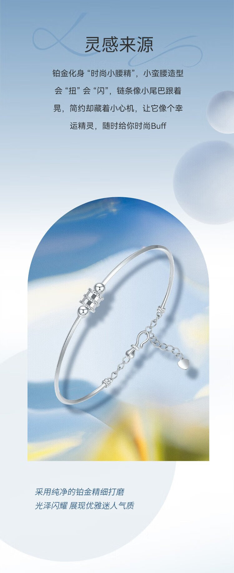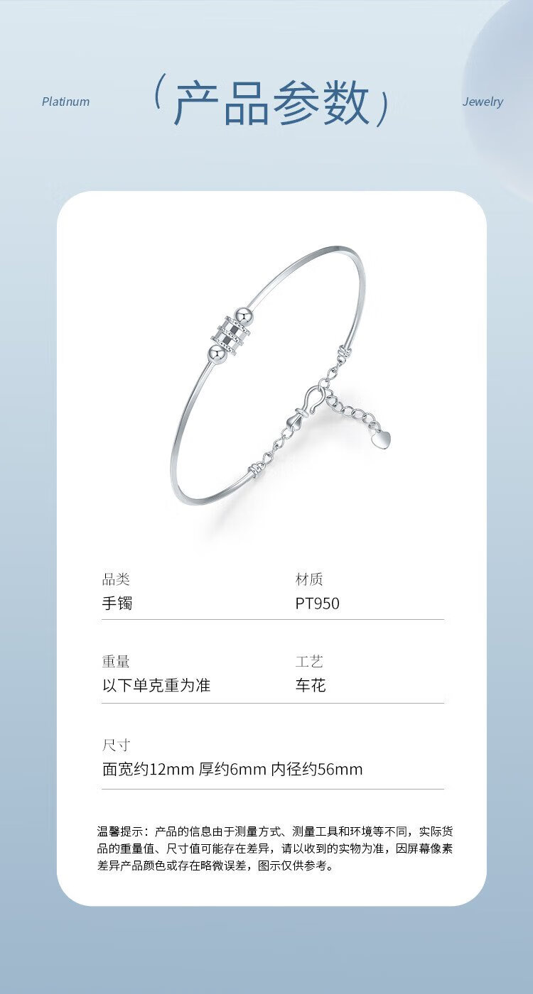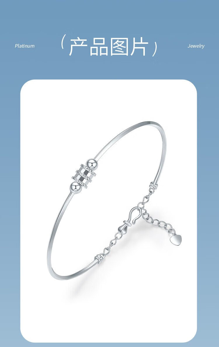 Liuguifu Jewelry Platinum Bracelet for Women PT950 Platinum Small Waist Cartoon Simple Bracelet for Girlfriend’s Birthday Gift About 5.55g