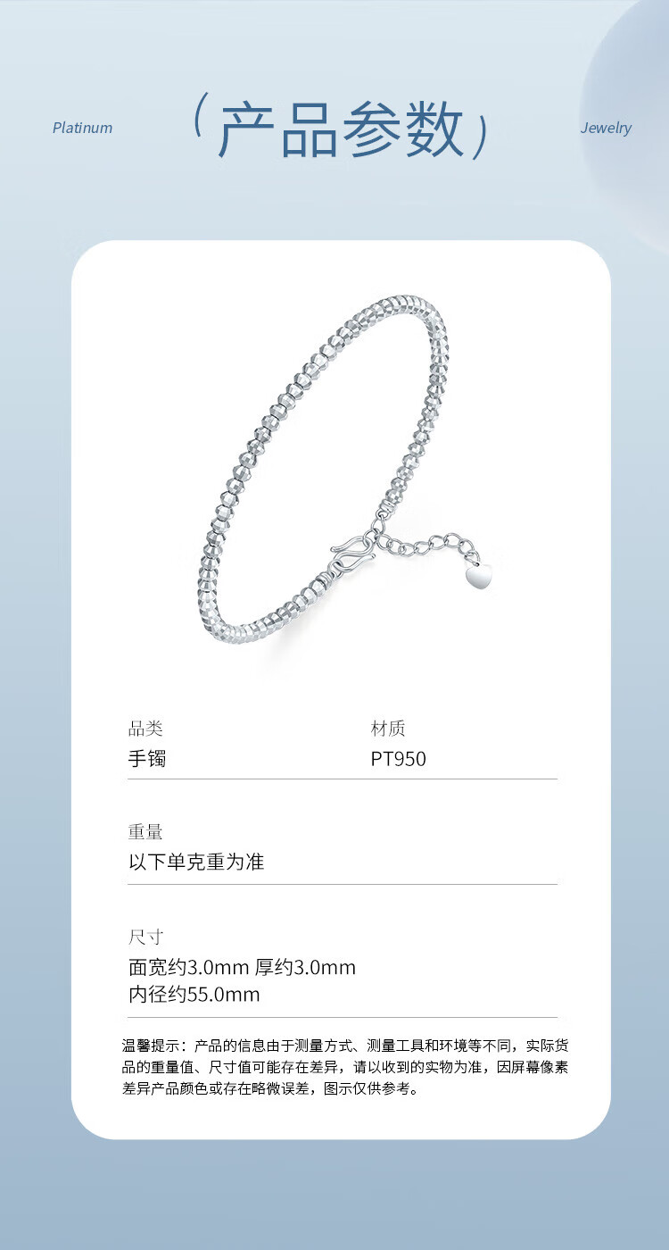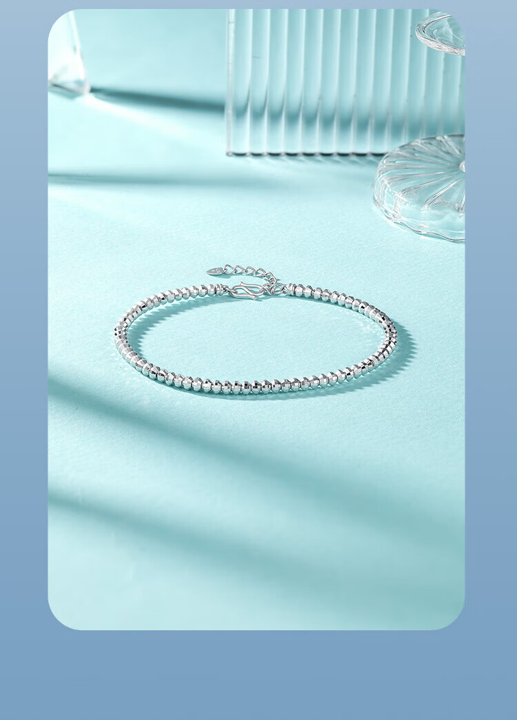 Liuguifu Jewelry Platinum Bracelet Women's PT950 Platinum Disco Beads Bracelet for Girlfriend's Birthday Gift, About 7.85g