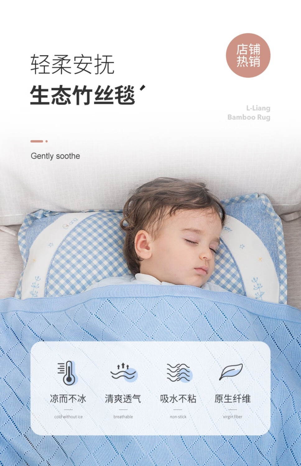 Liangliang Bamboo Fiber Blanket Baby Summer Ice Silk Blanket Newborn Baby Blanket Children's Kindergarten Nap Blanket Blue Large Diamond