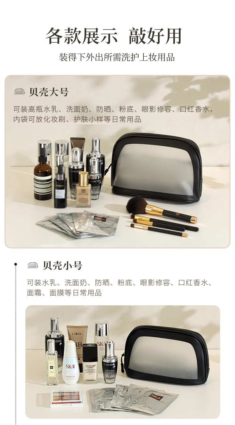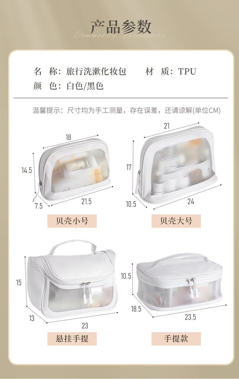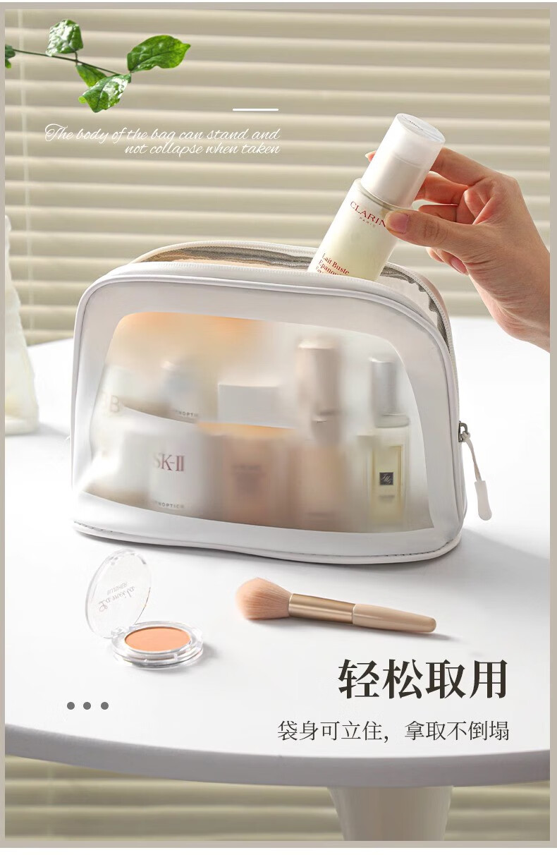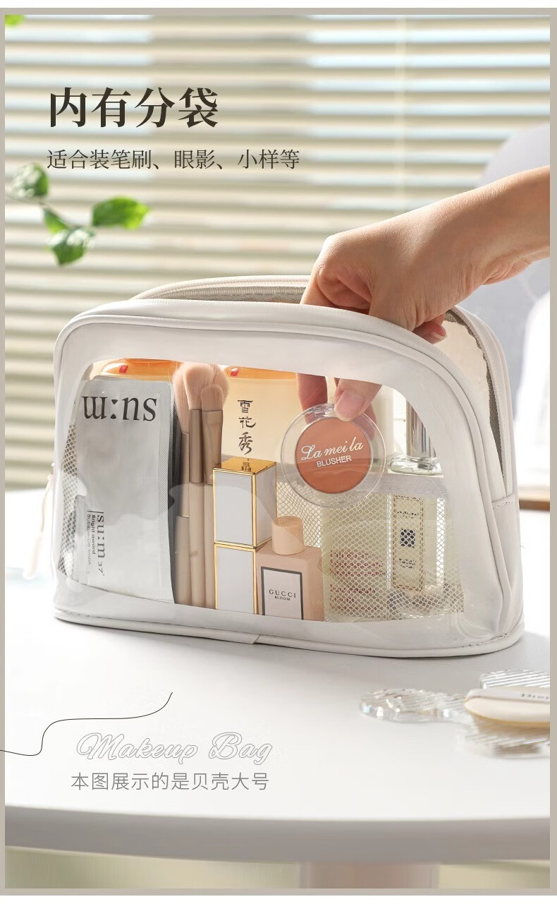 Portable waterproof cosmetic bag for travel and large-capacity toiletry bag 2024 new PU skin care product shell storage A shell bag - small (no separation) white