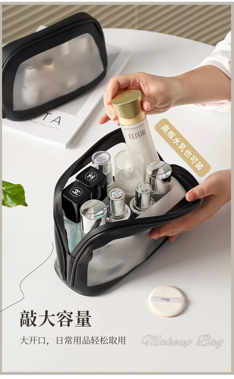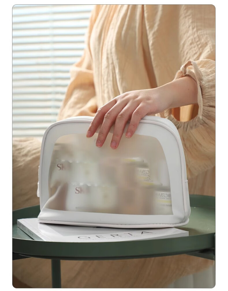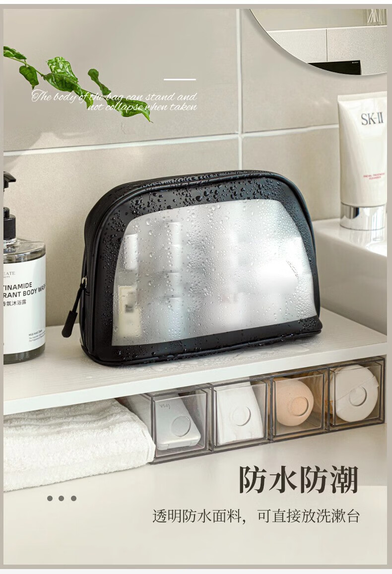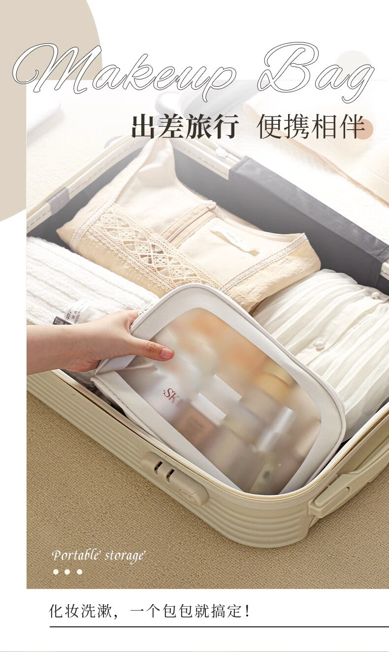 Portable waterproof cosmetic bag for travel and large-capacity toiletry bag 2024 new PU skin care product shell storage A shell bag - small (no separation) white
