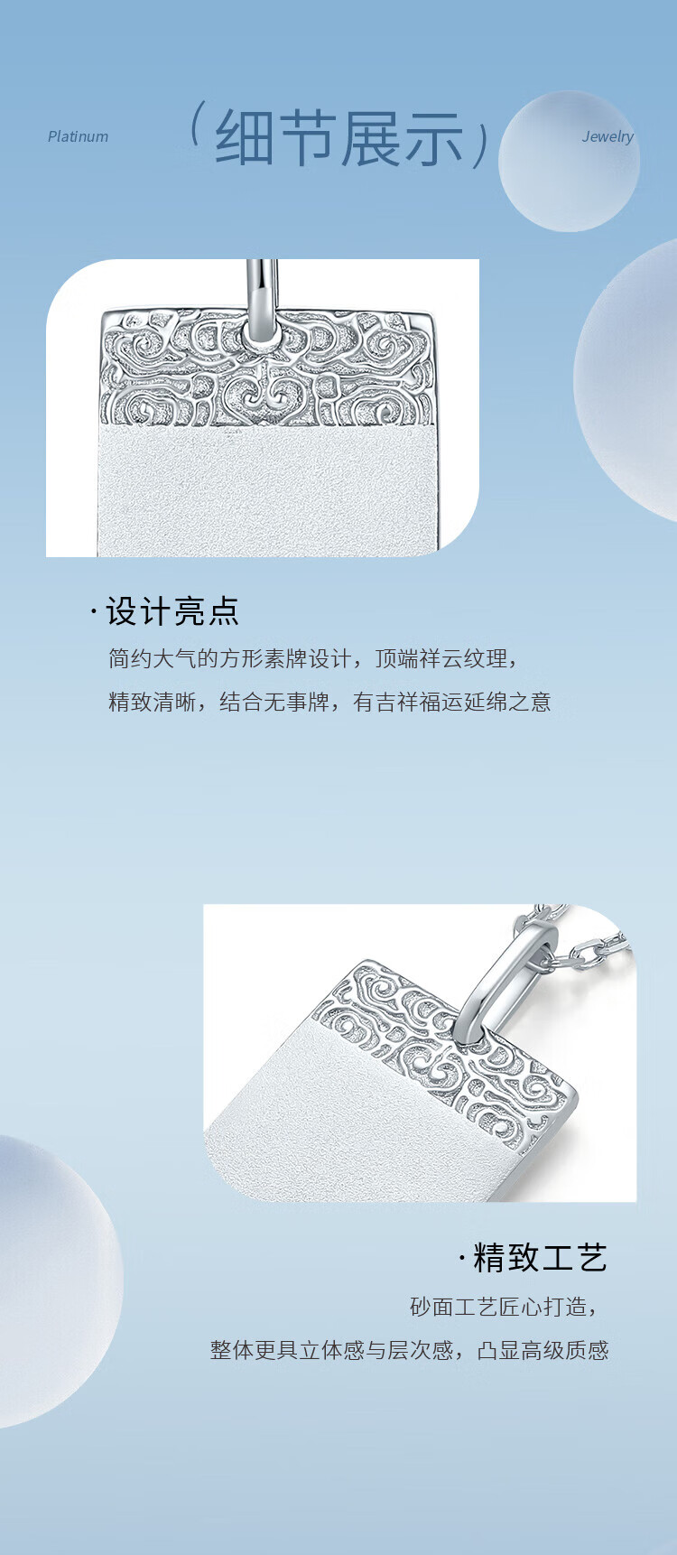 Liuguifu jewelry platinum pendant for men and women pt950 white gold pendant birthday gift necklace about 2.95g