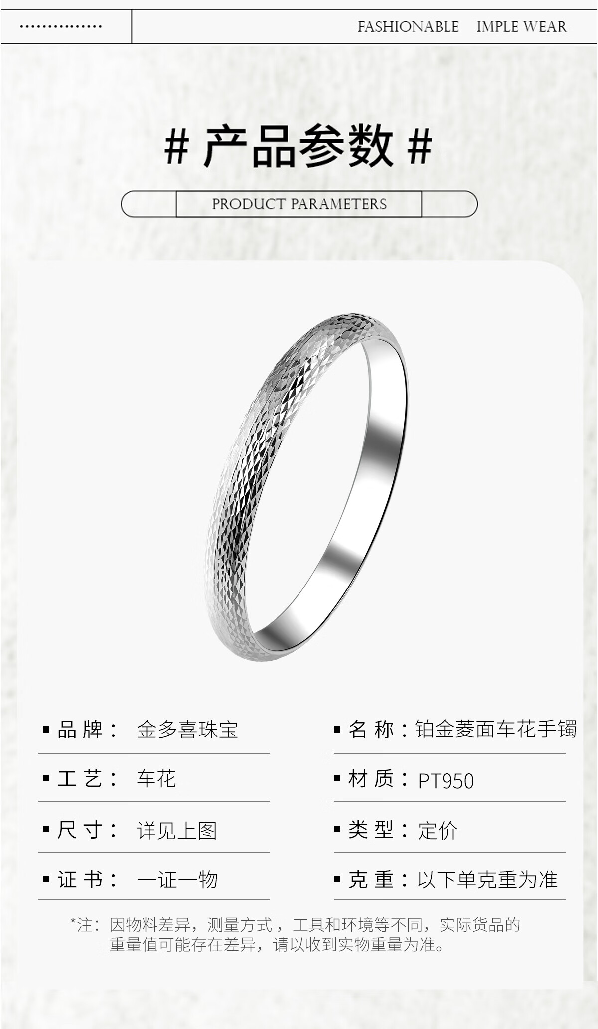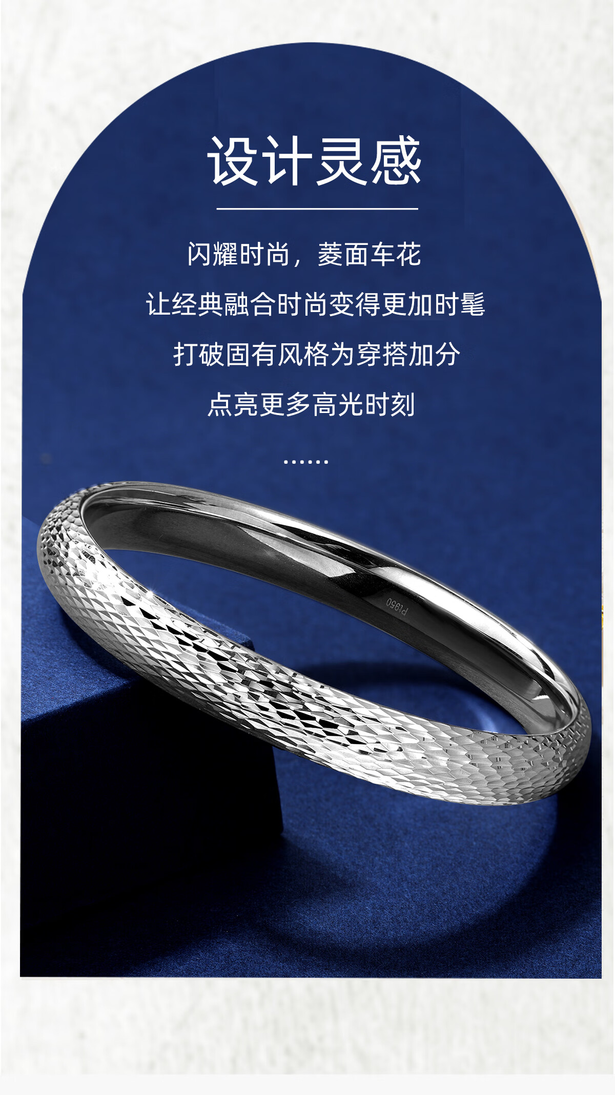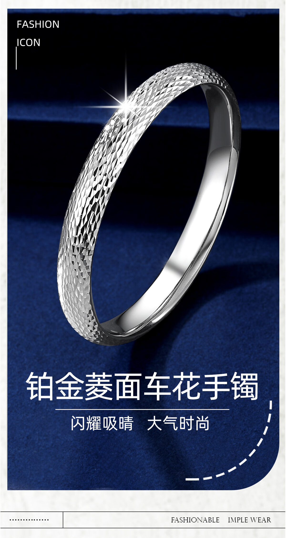 Jinduoxi platinum Pt950 baby's breath bracelet with loach back, rhombus pattern, round solid mouth, bright face bracelet for women, Chinese Valentine's Day gift, about 8mm wide, 55 ring mouth, weighing about 25.39 grams