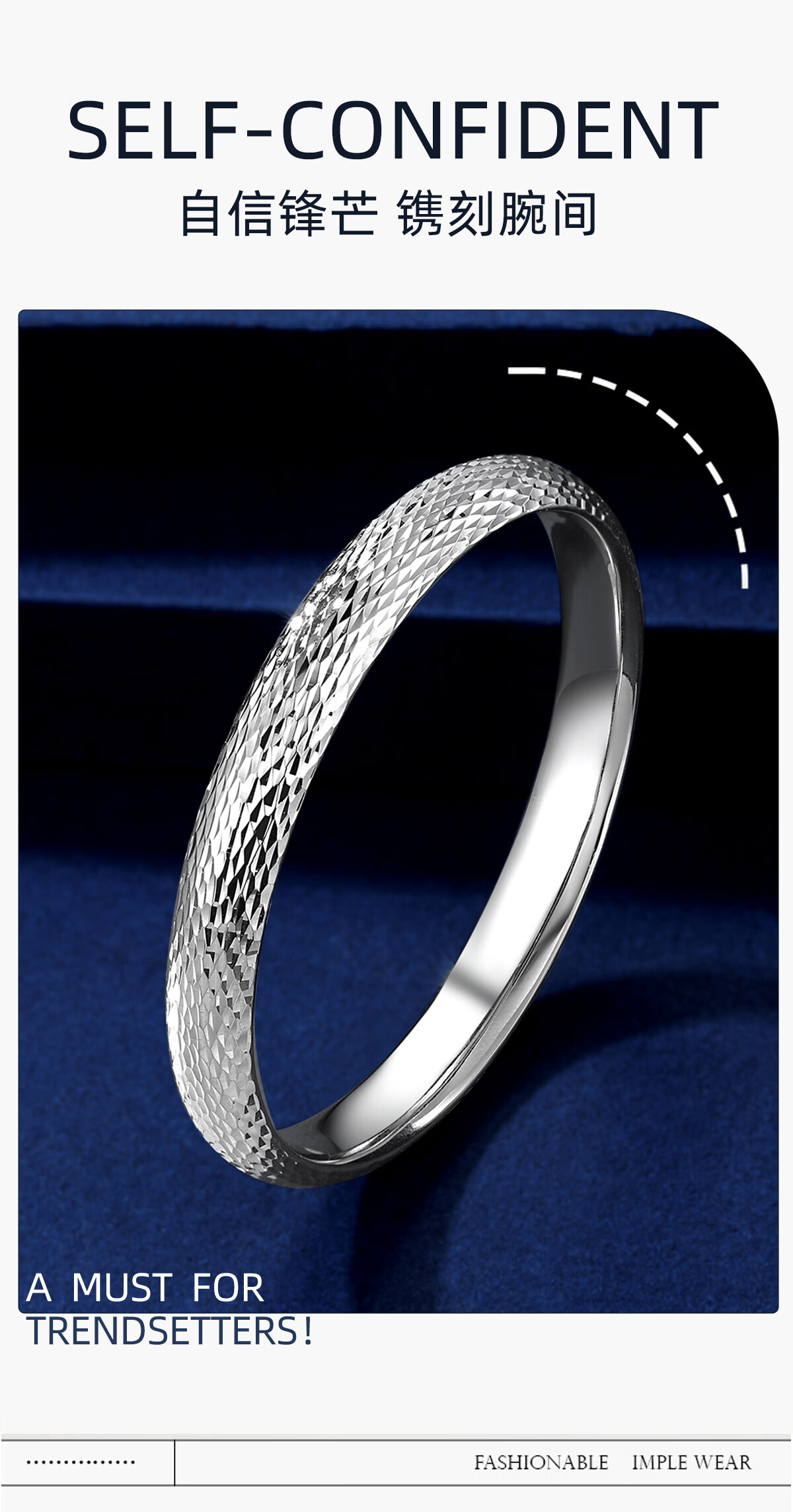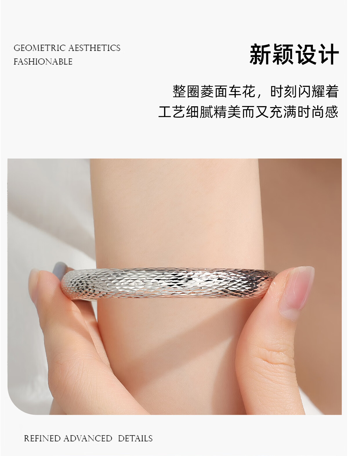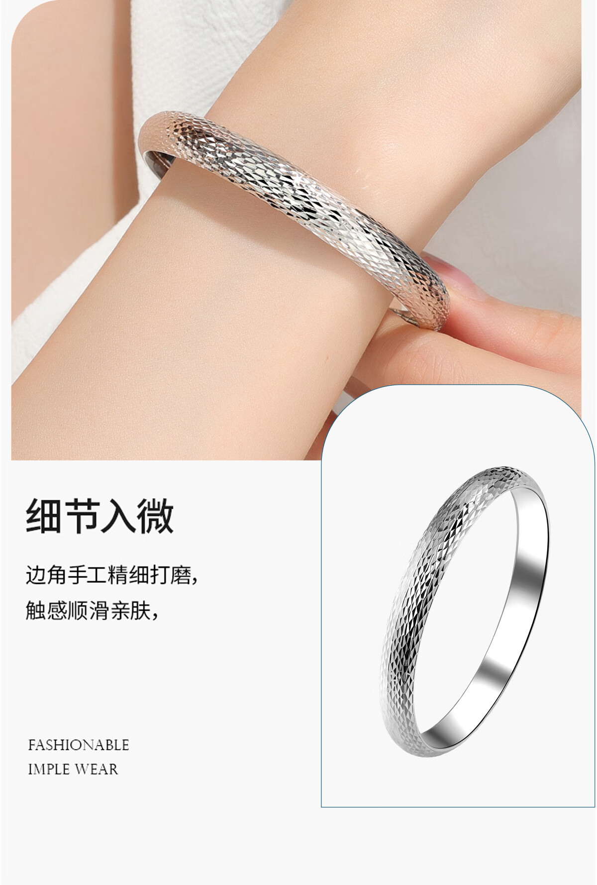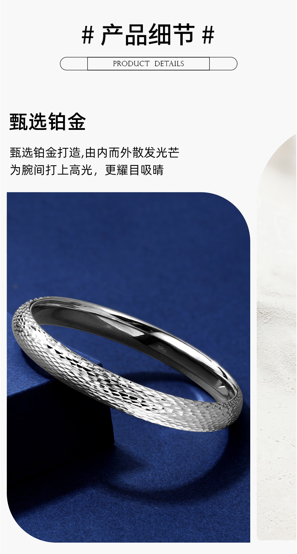 Jinduoxi platinum Pt950 baby's breath bracelet with loach back, rhombus pattern, round solid mouth, bright face bracelet for women, Chinese Valentine's Day gift, about 8mm wide, 55 ring mouth, weighing about 25.39 grams