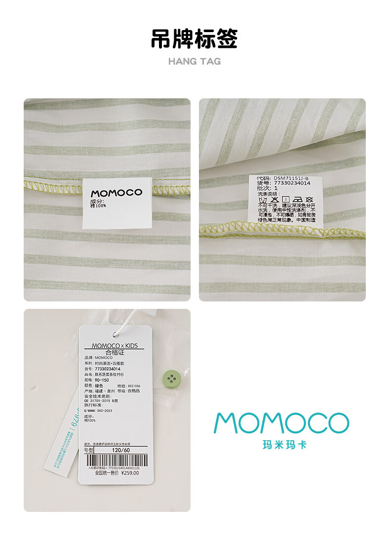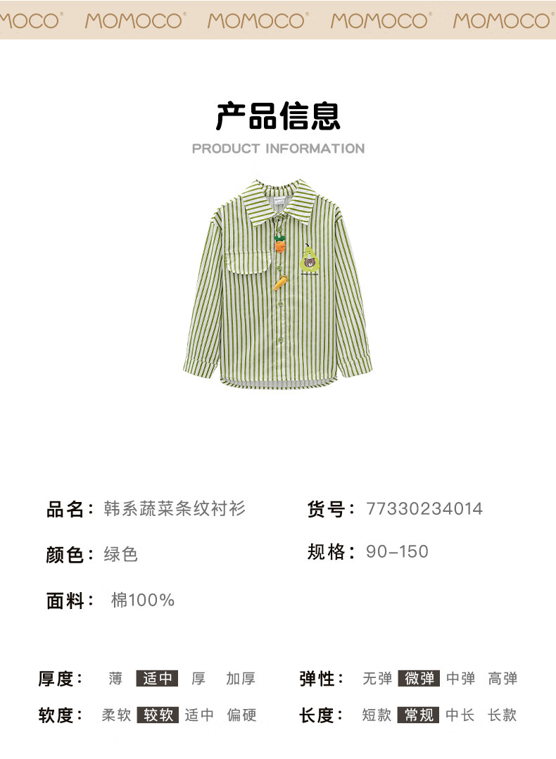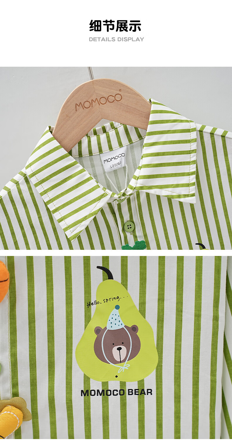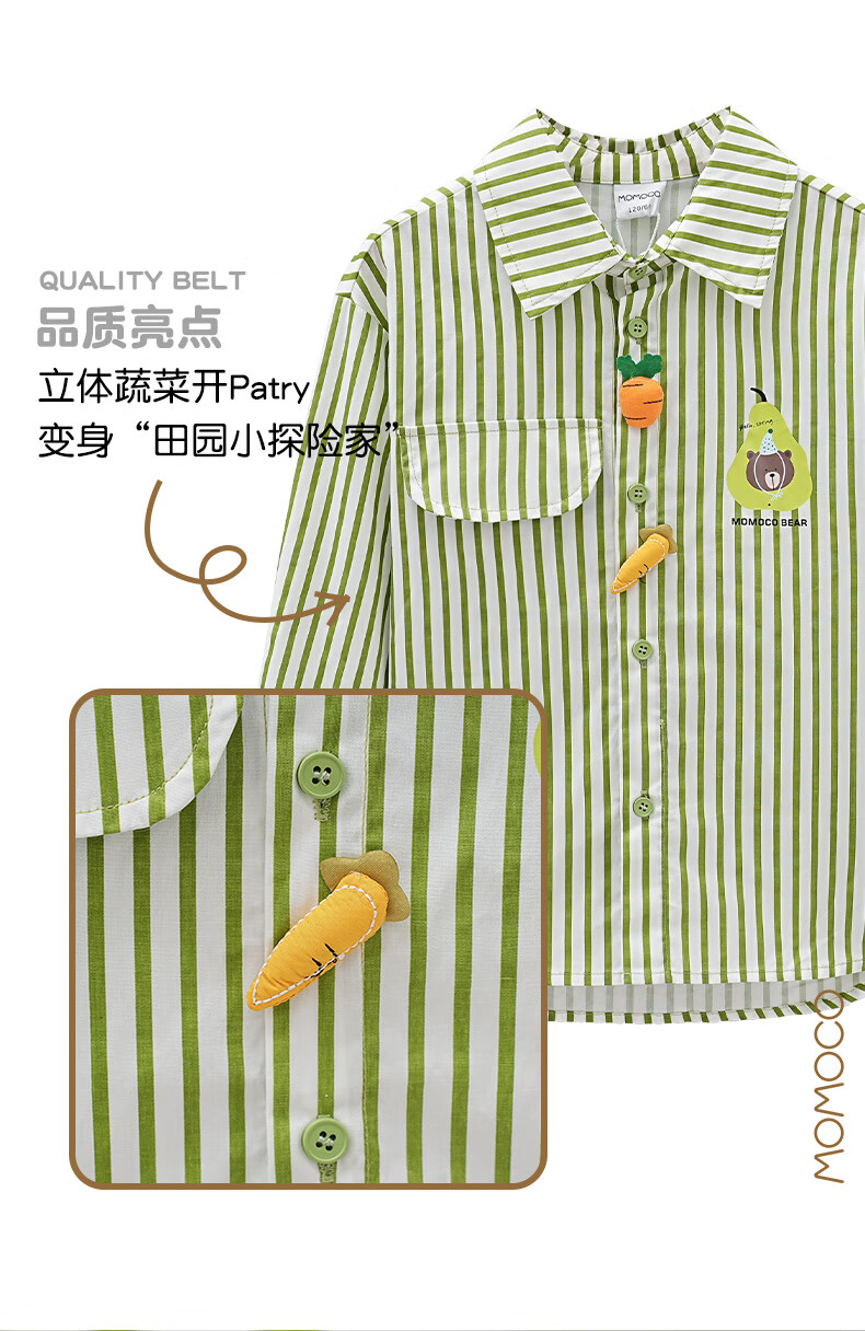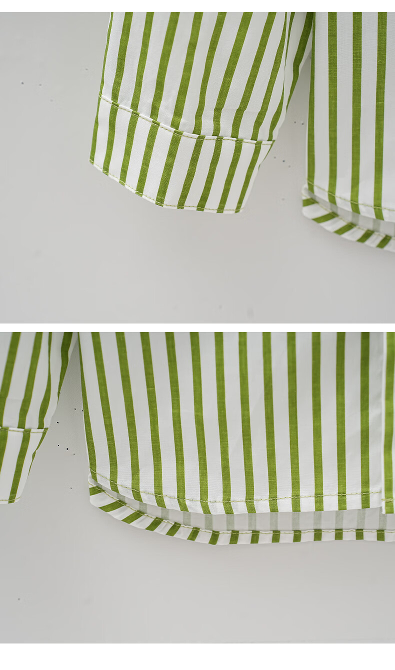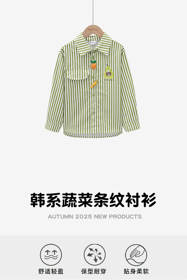 Mami Maka (MOMOCO) Children's Clothing Boys' Shirts 2025 Autumn Style Medium and Large Children's Pure Cotton Korean Vegetable Striped Shirt 014 Green 120