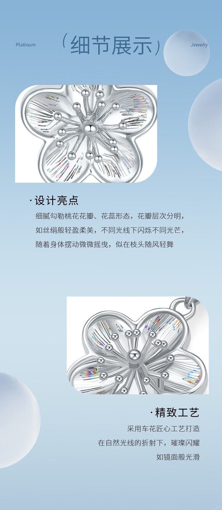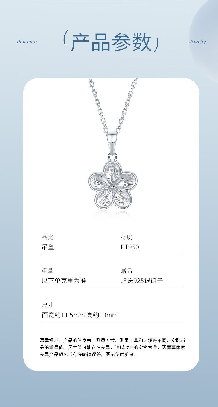 Liuguifu Jewelry Platinum Pendant Women's Peach Blossom PT950 Platinum Pendant Birthday Gift Necklace About 2.05g
