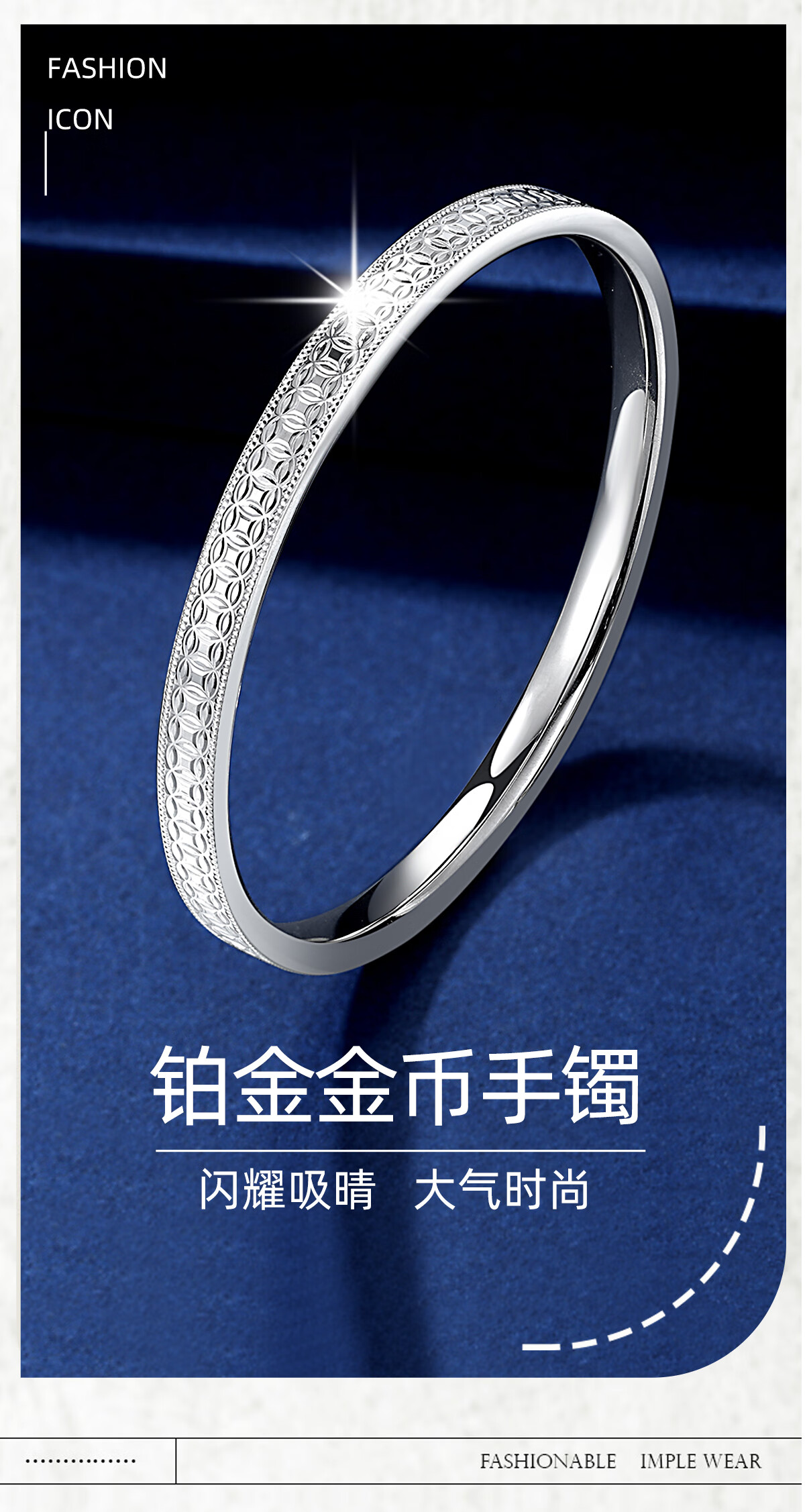Jinduoxi genuine pt950 platinum copper coin bracelet for women platinum lucky round bracelet wide face semi-solid Chinese Valentine's Day gift perfect round 55 width about 5.2mm weight about 21.41 grams