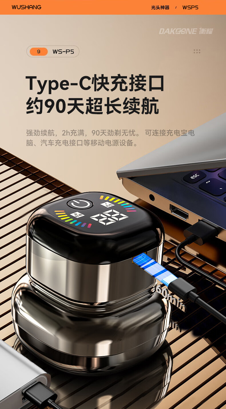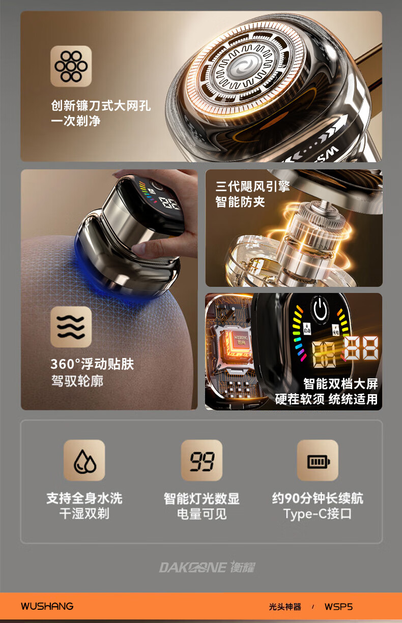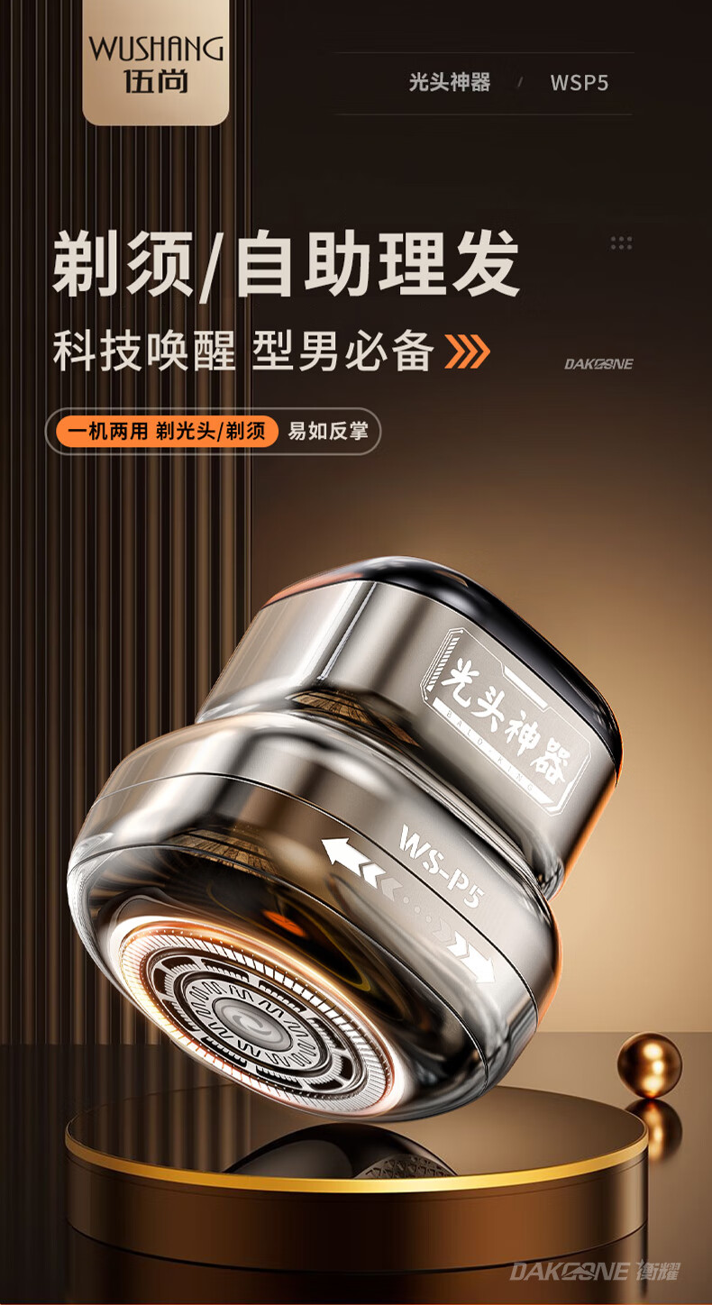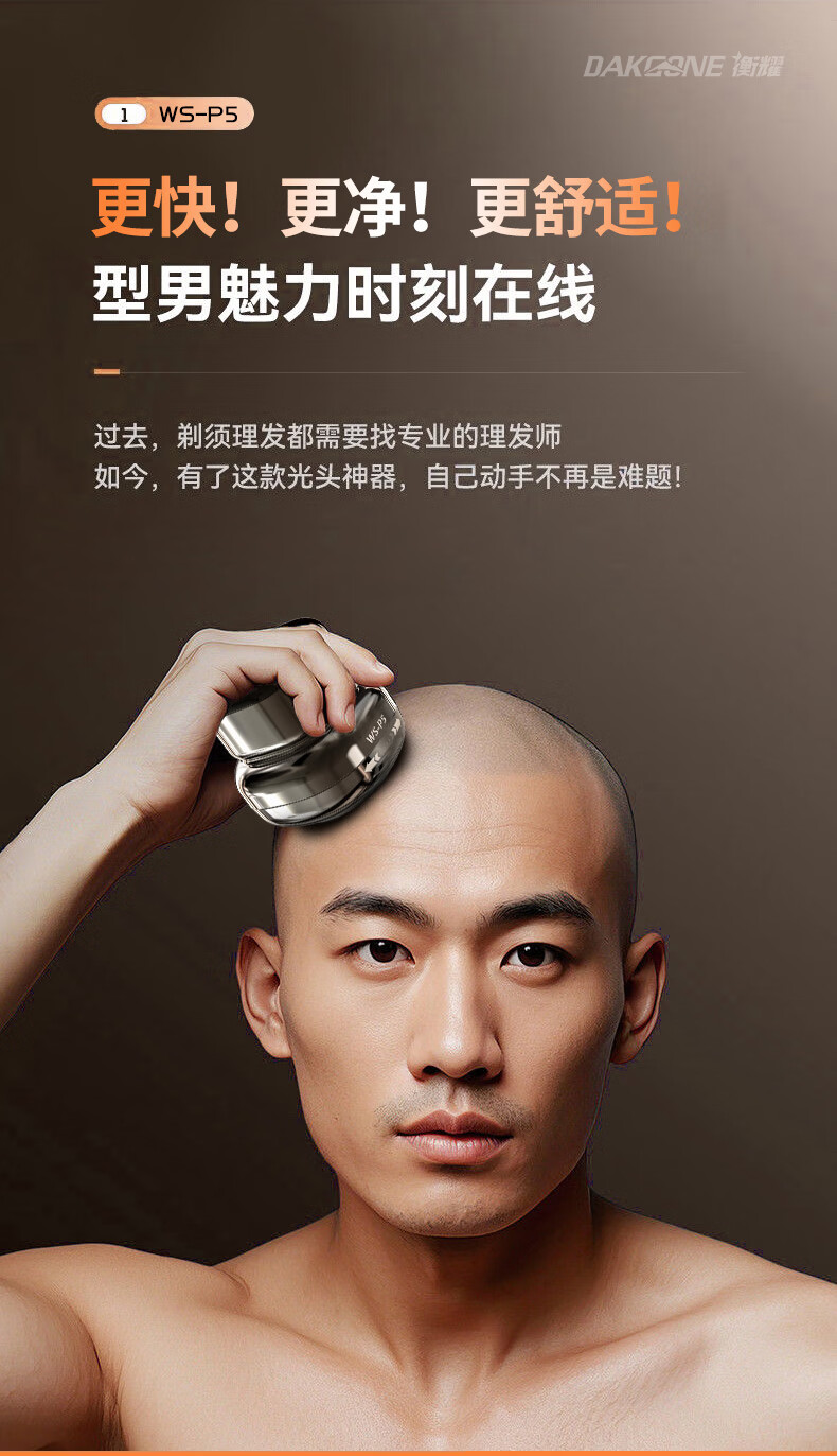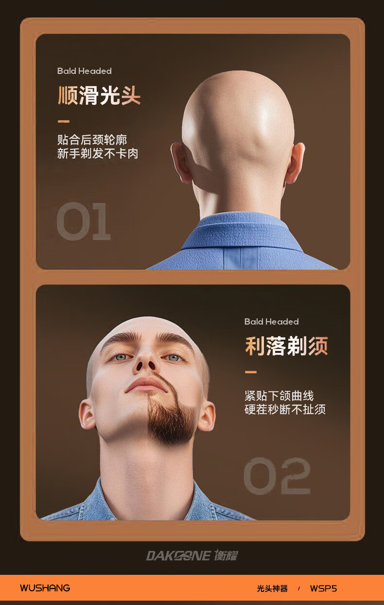 Wushang Hair Clipper 2025 New Bald Head Artifact High Power Men's Self-Service Hair Clipper Shaver for Shaving Bald Head