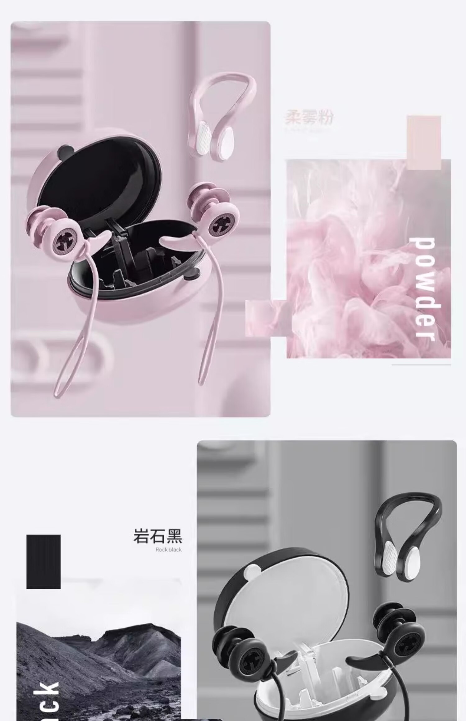 German swimming earplugs are waterproof and non-soundproof for bathing children. Anti-water intrusion artifact to prevent otitis media. Swimming coach piano black nose clip earplug set.