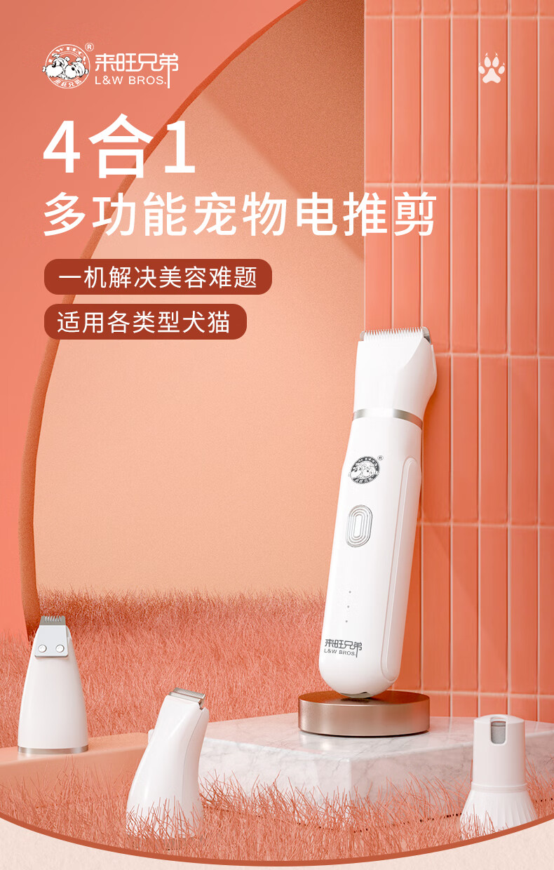 Laiwang Brothers pet four-in-one multi-functional shaver for dogs and cats, shaving feet, nail polishing, electric clippers, trimming and shearing, two-in-one electric clippers white (rechargeable)