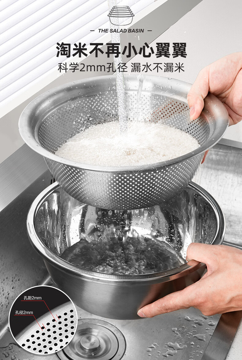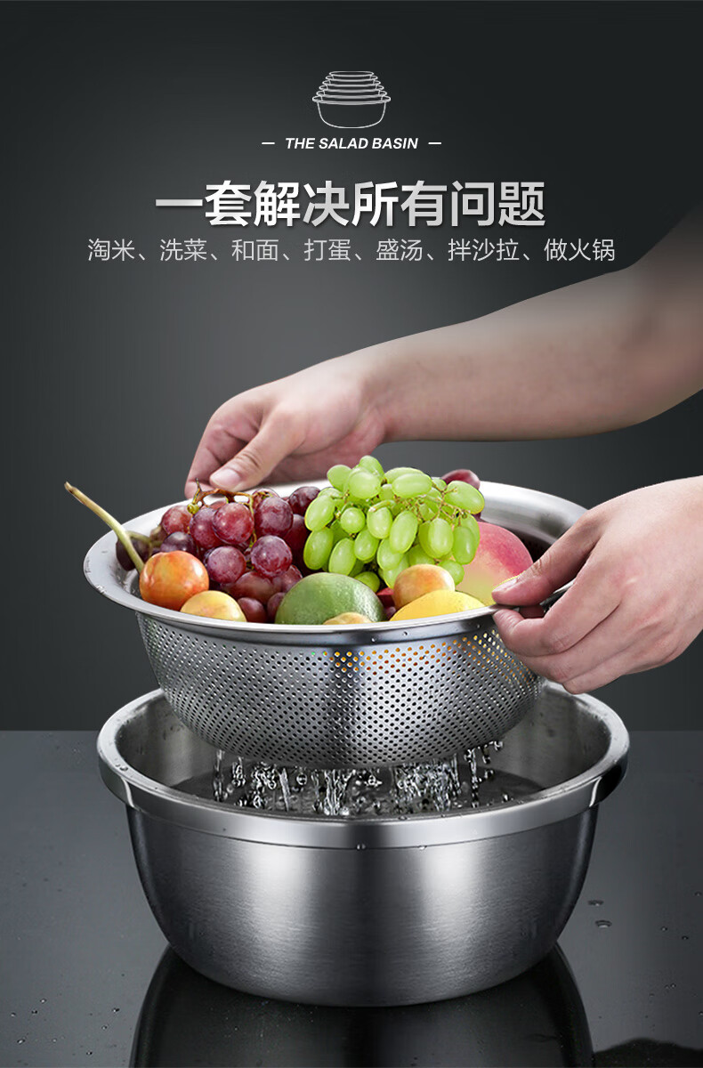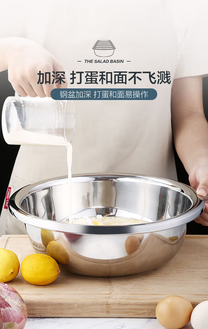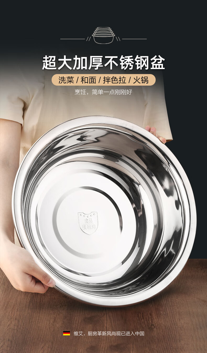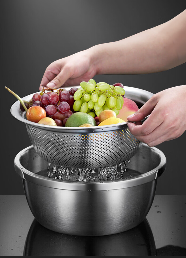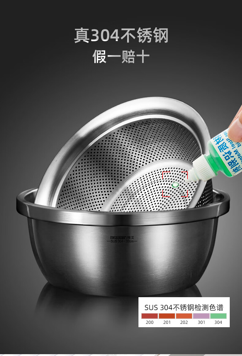 Newair Food Grade 304 Stainless Steel Basin Thickened Home Kitchen Egg Beating and Noodle Draining Basket Washing Basin Set Special Offer 304 Stainless Steel Basin 24cm