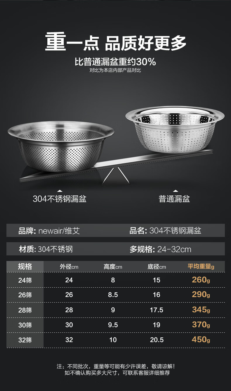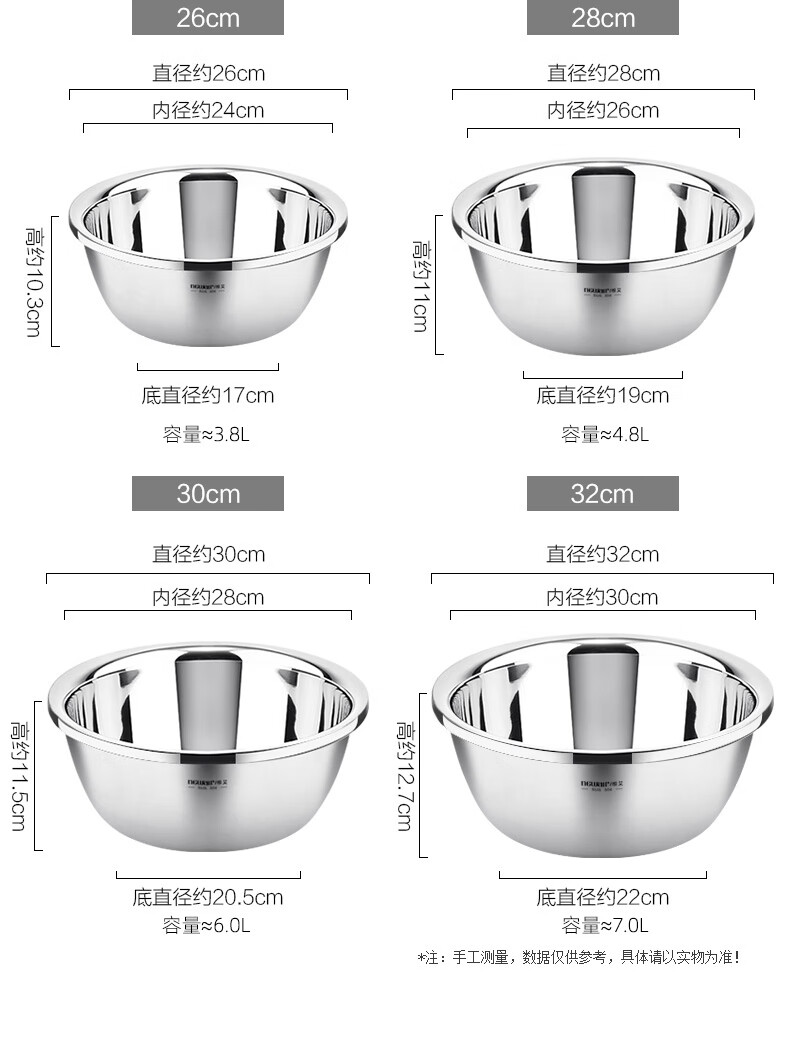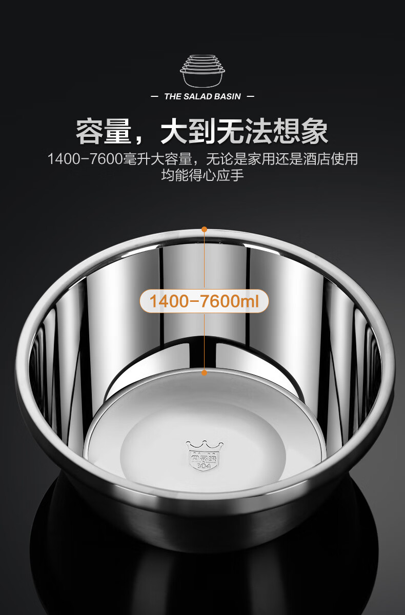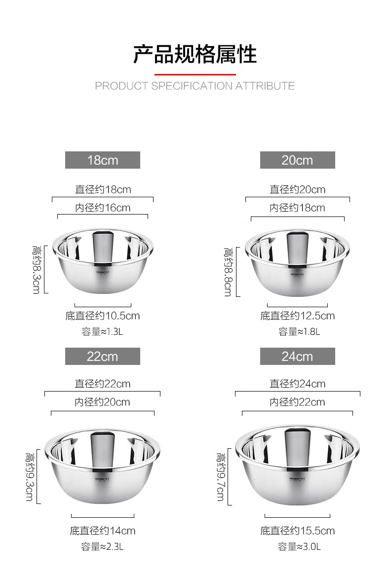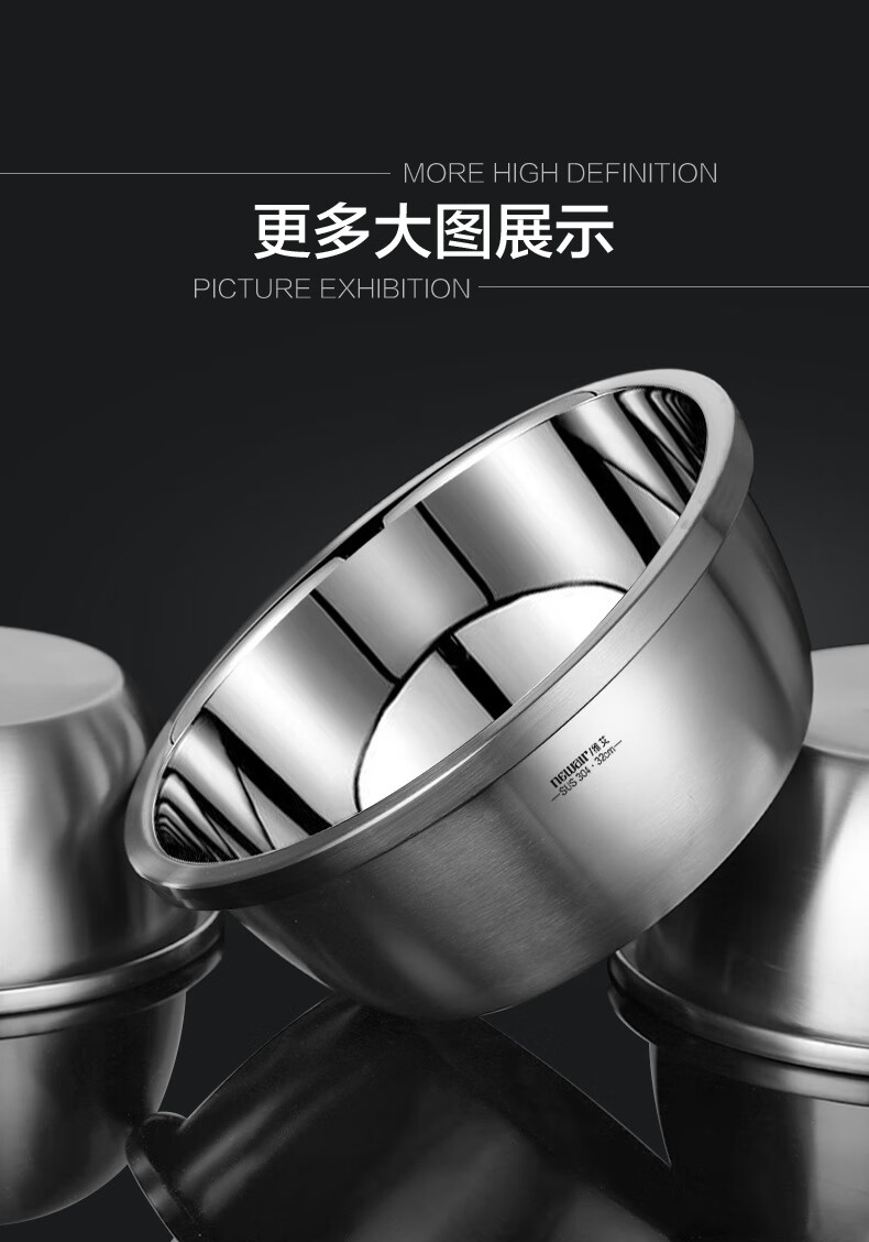 Newair Food Grade 304 Stainless Steel Basin Thickened Home Kitchen Egg Beating and Noodle Draining Basket Washing Basin Set Special Offer 304 Stainless Steel Basin 24cm