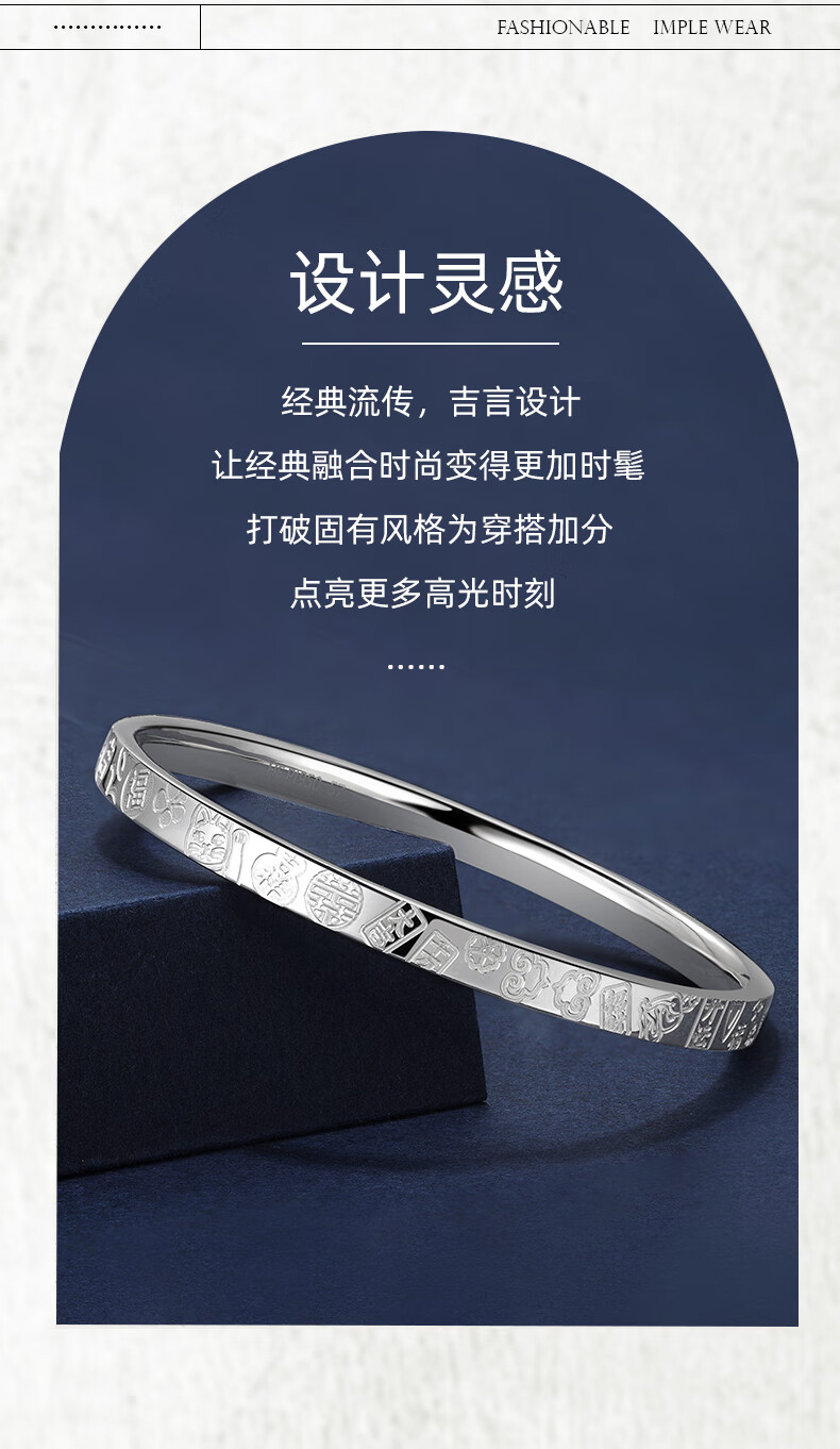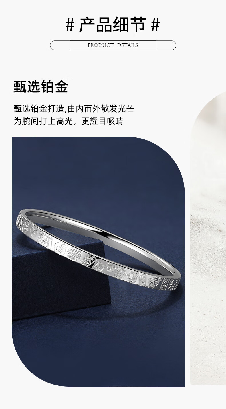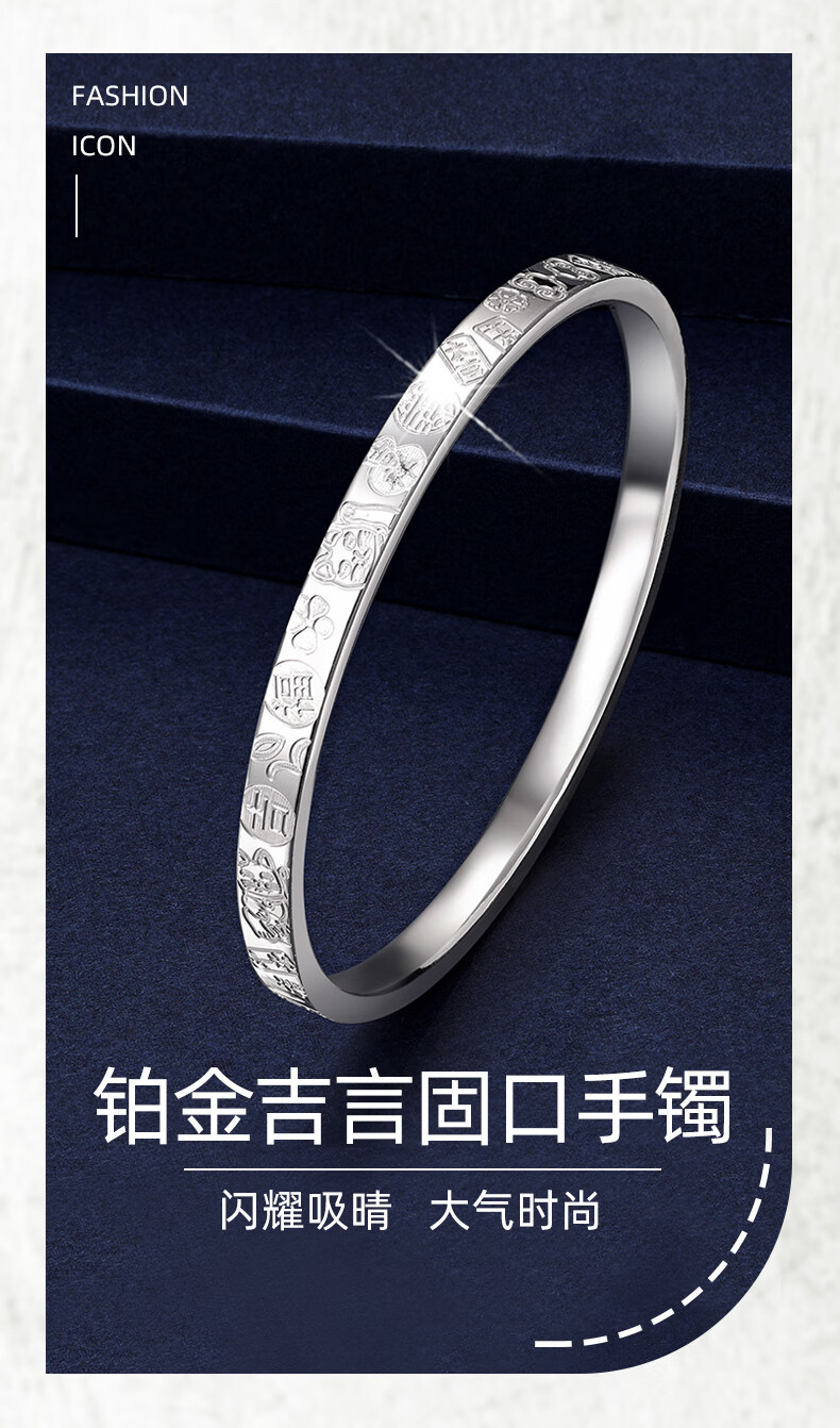 Jin Duoxi's new platinum bracelet for women pt950 bracelet with a round solid mouth, platinum bracelet, auspicious bracelet for women, gift for women, round mouth 52, width 5.1MM, weight 13.89 grams