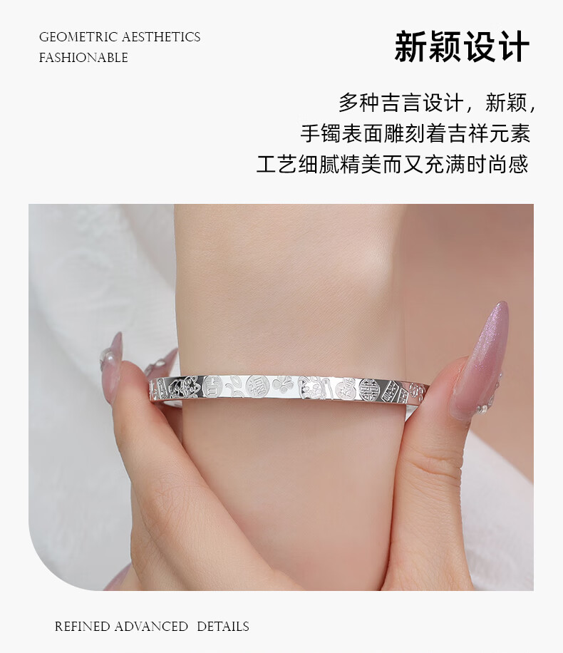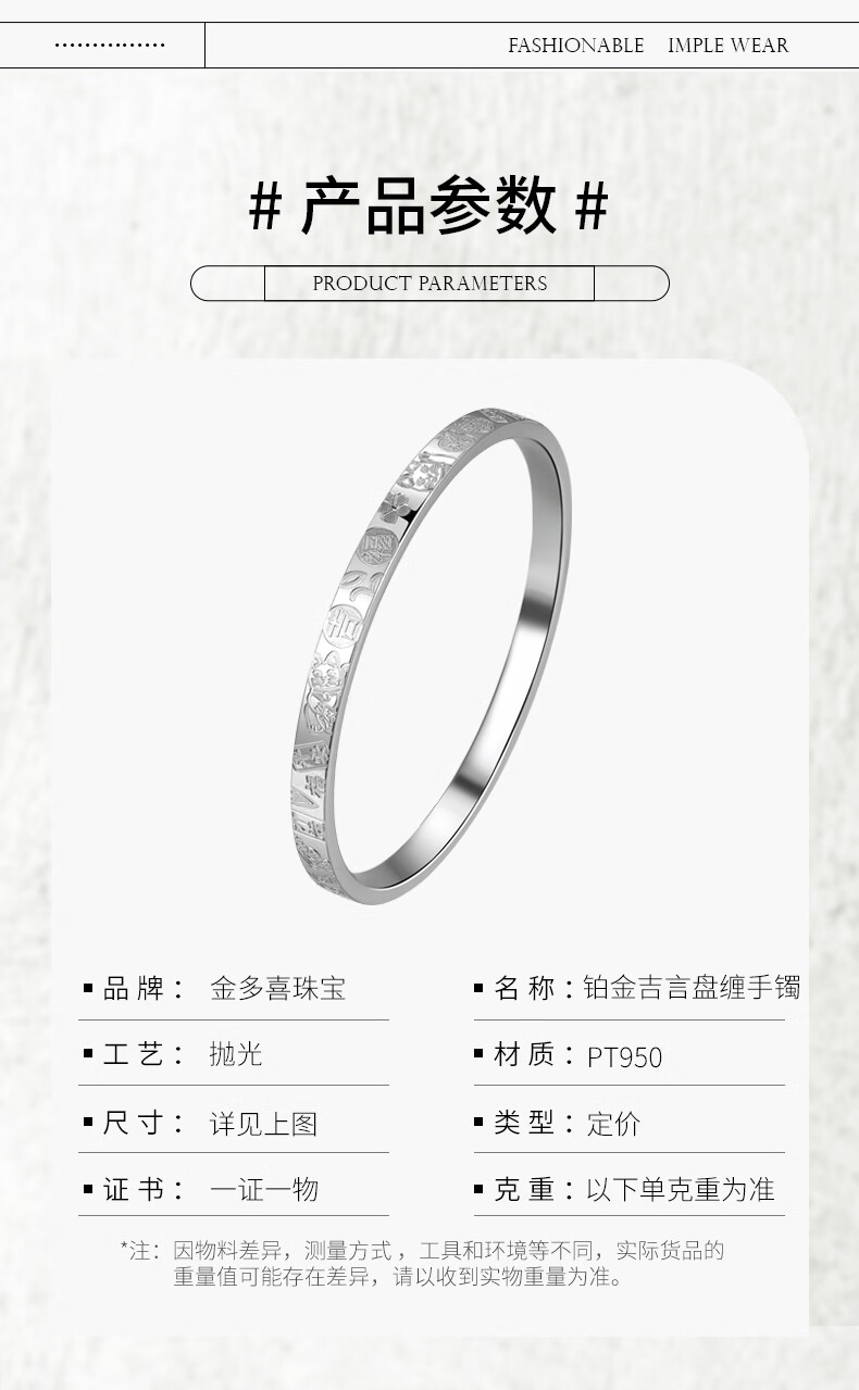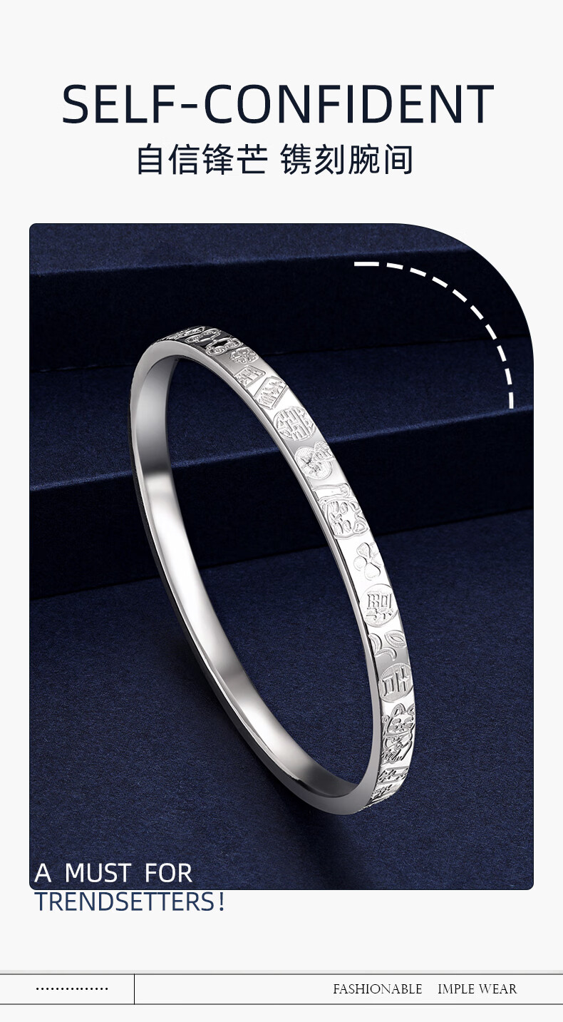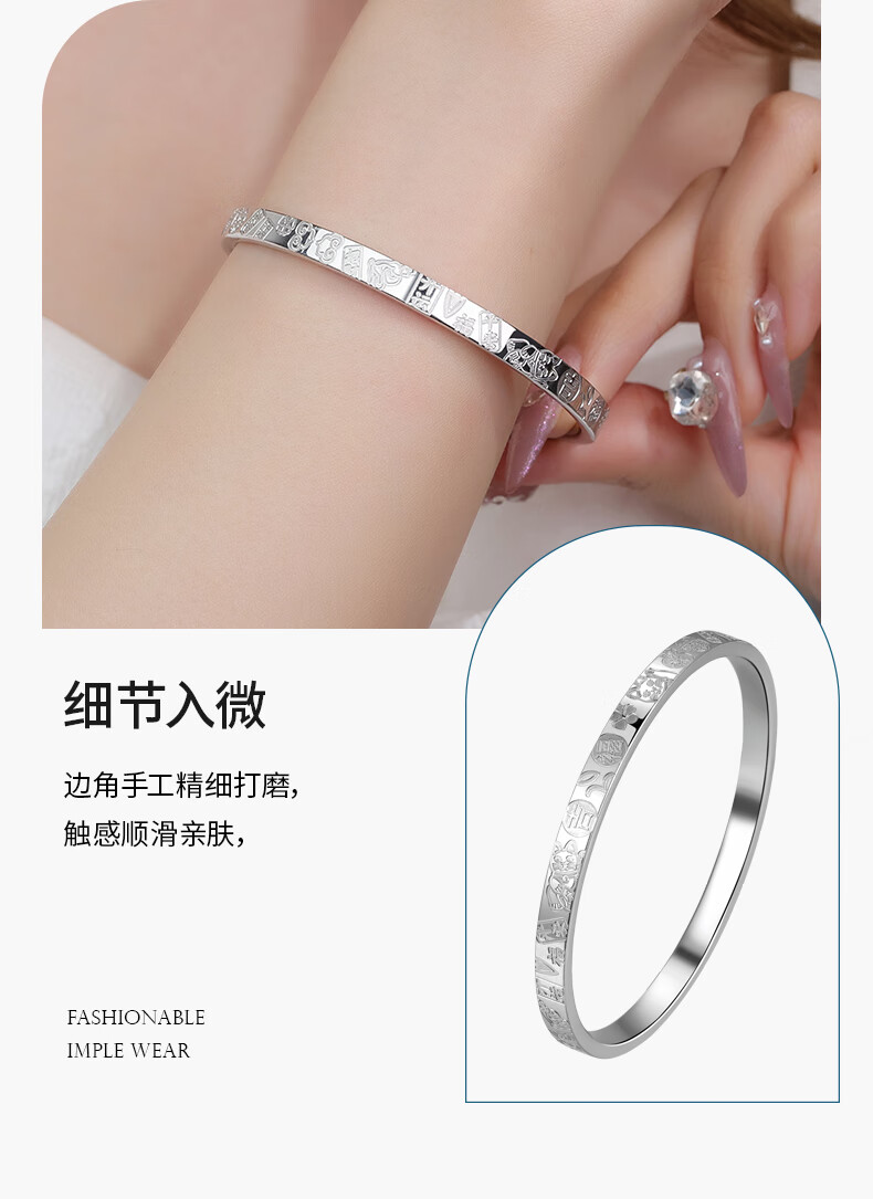 Jin Duoxi's new platinum bracelet for women pt950 bracelet with a round solid mouth, platinum bracelet, auspicious bracelet for women, gift for women, round mouth 52, width 5.1MM, weight 13.89 grams