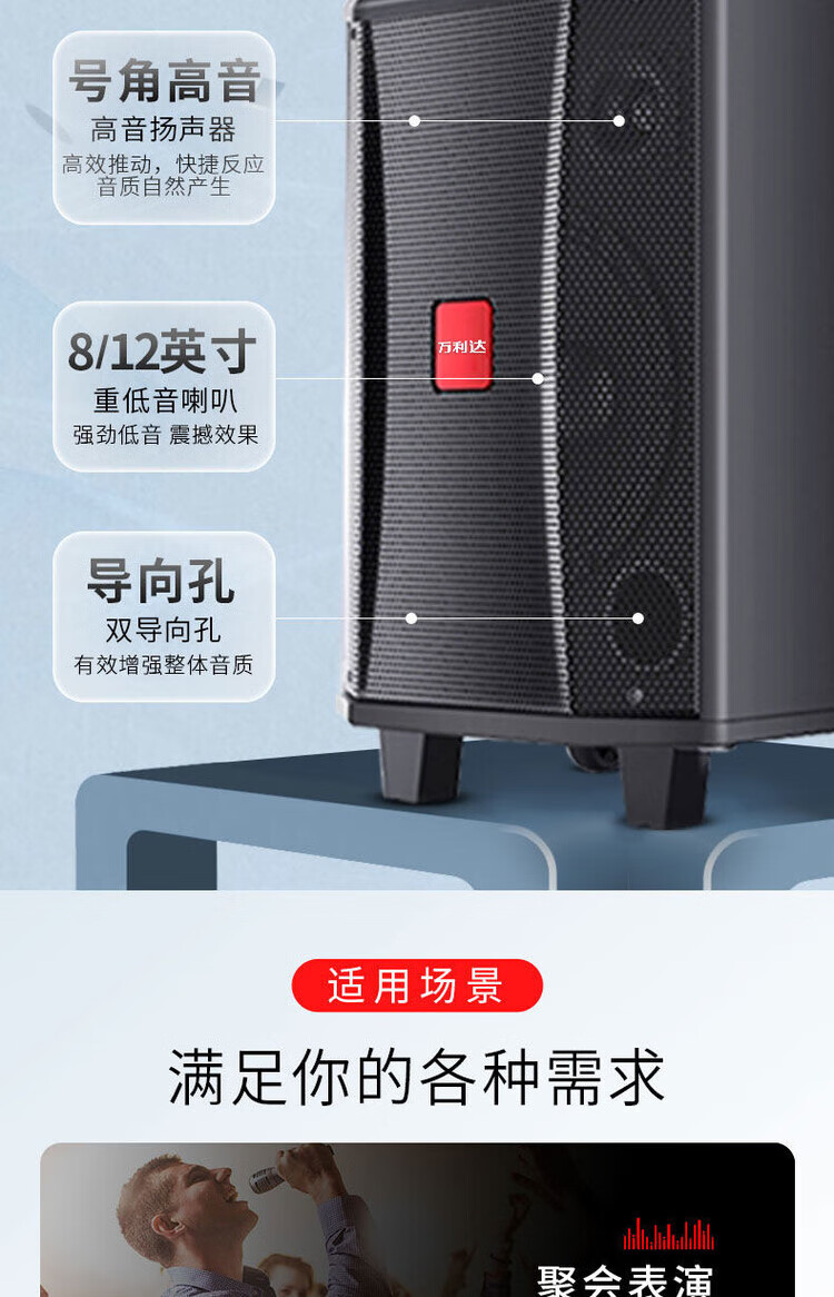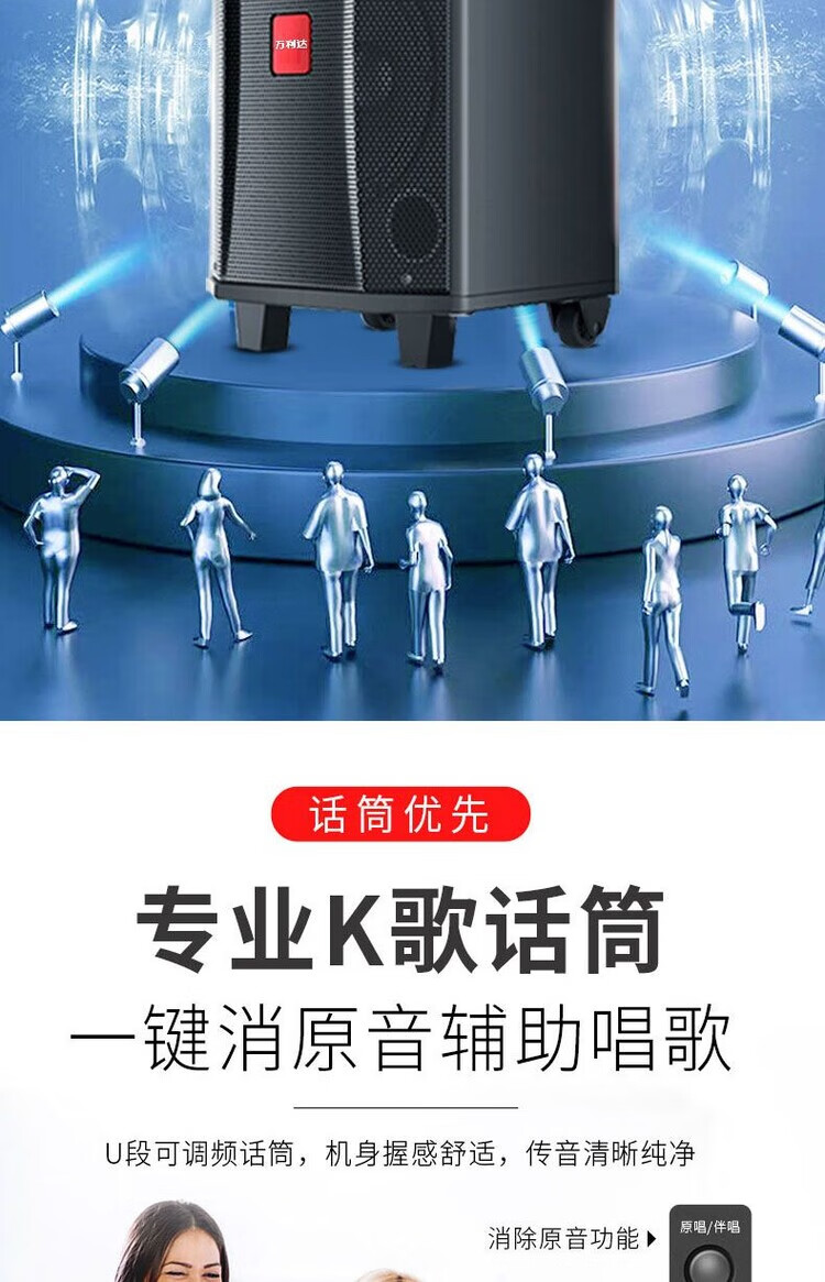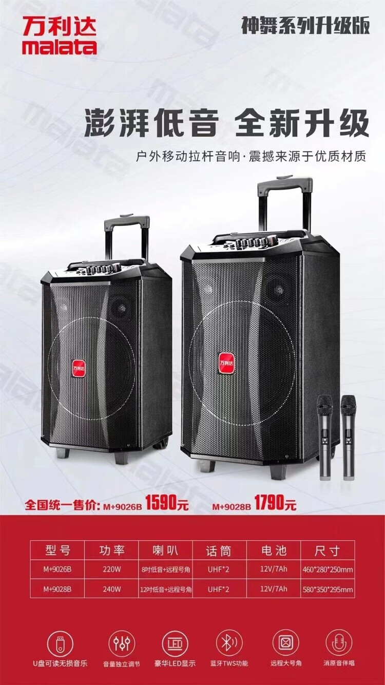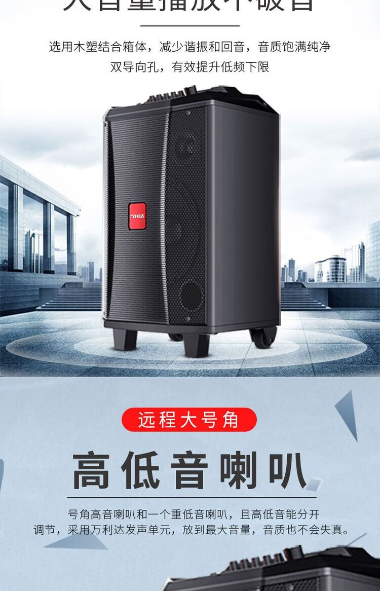 Wanlida audio outdoor home singing square dance bluetooth high power outdoor karaoke dancing high volume speaker home 9028B wireless U segment microphone pull rod audio Shenwu ll generation 12 inch-original U segment microphone 2