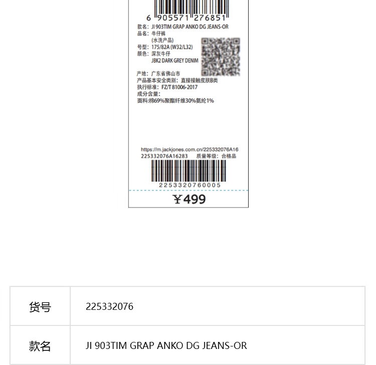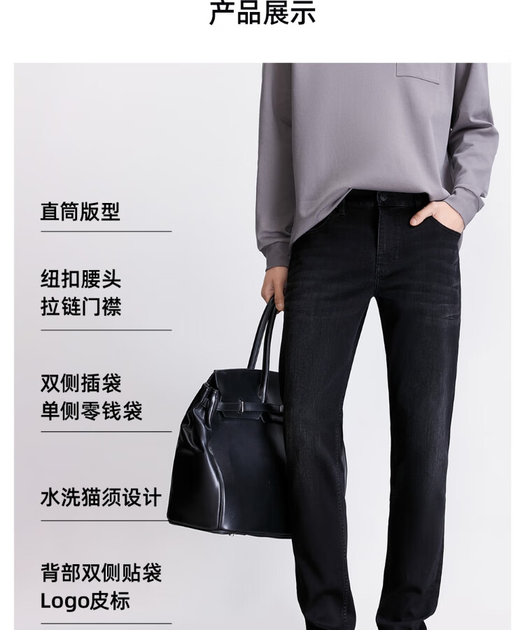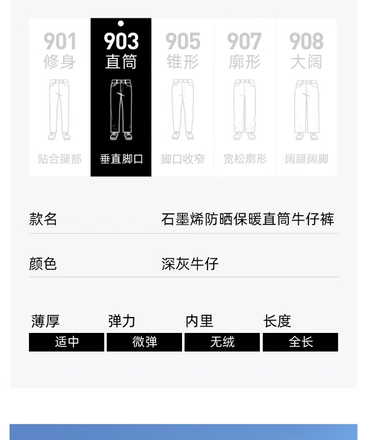 JACK&JONES 25-year men's autumn and winter jeans men's 903 straight graphene warm pants black micro-elastic denim men's pants A16 dark gray denim 31 175 W31/L30