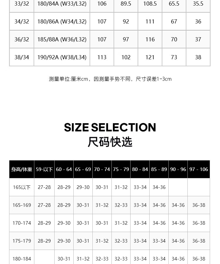 China (cm) 160-165/84-86 165-170 / 88-90 167-172 / 92-96 168-173 / 98-102 170-176 / 106-110