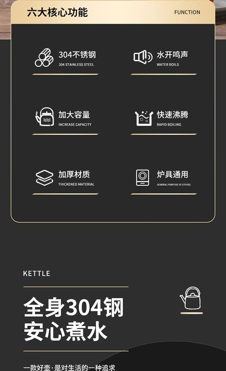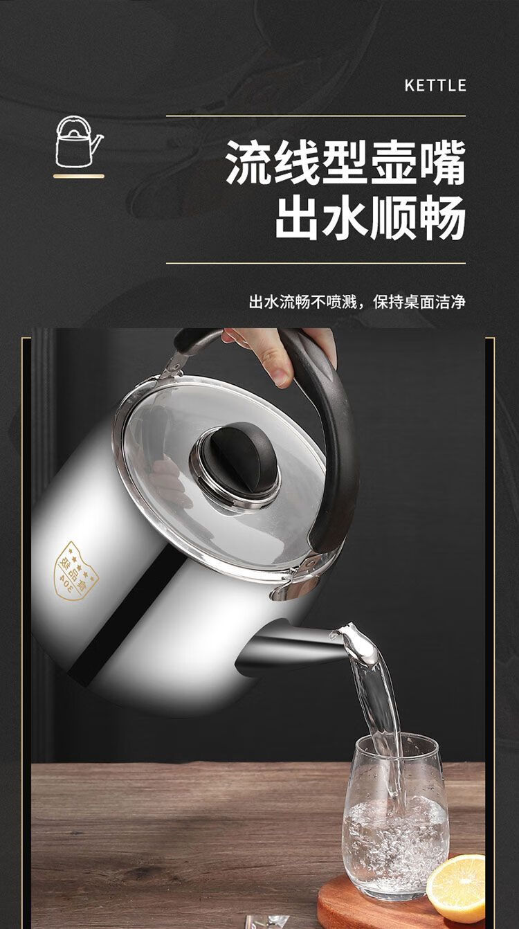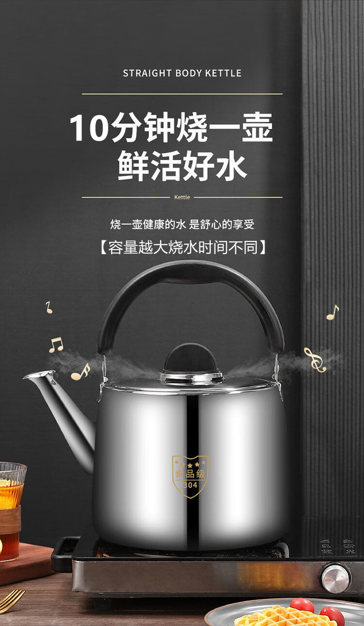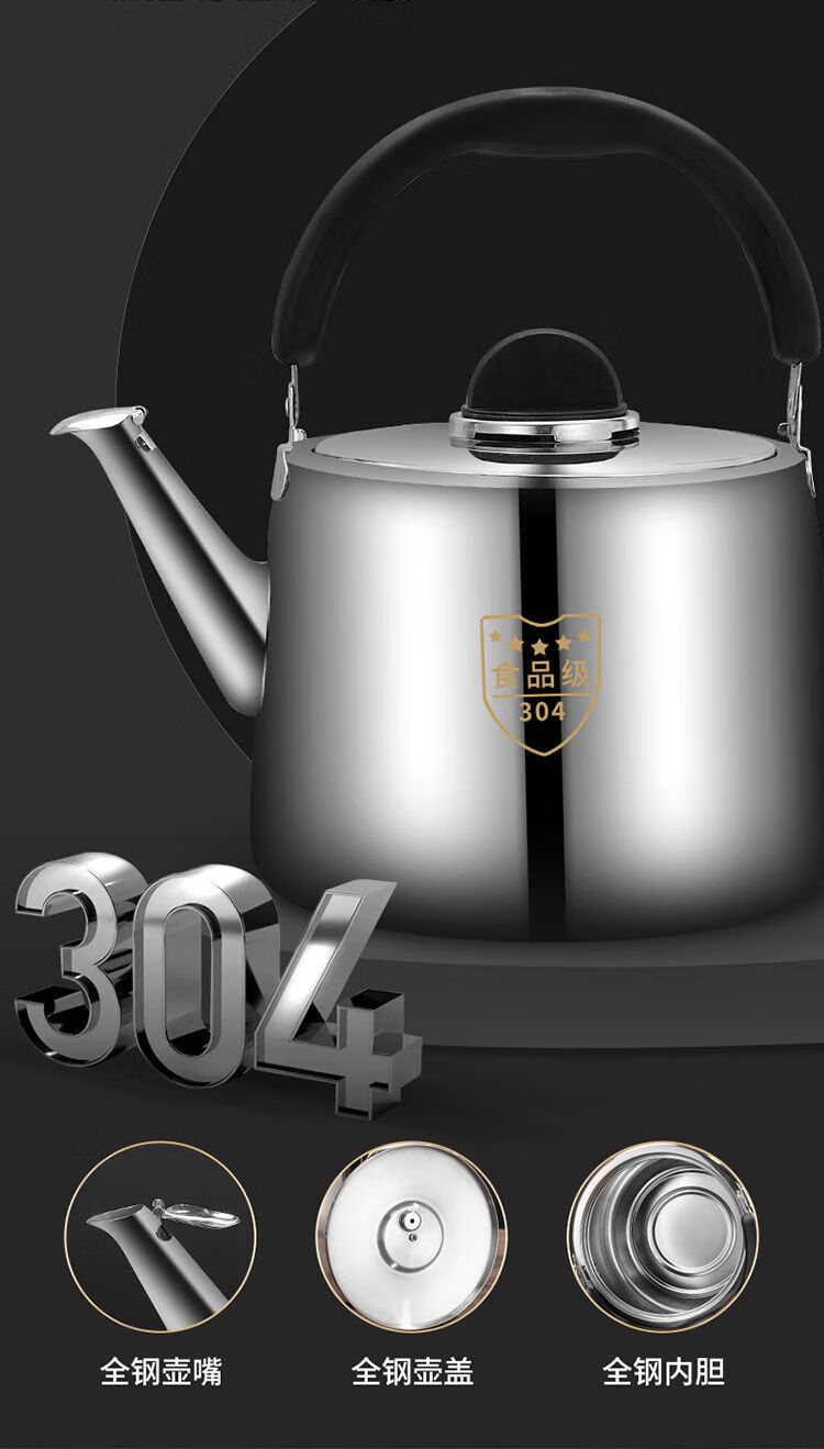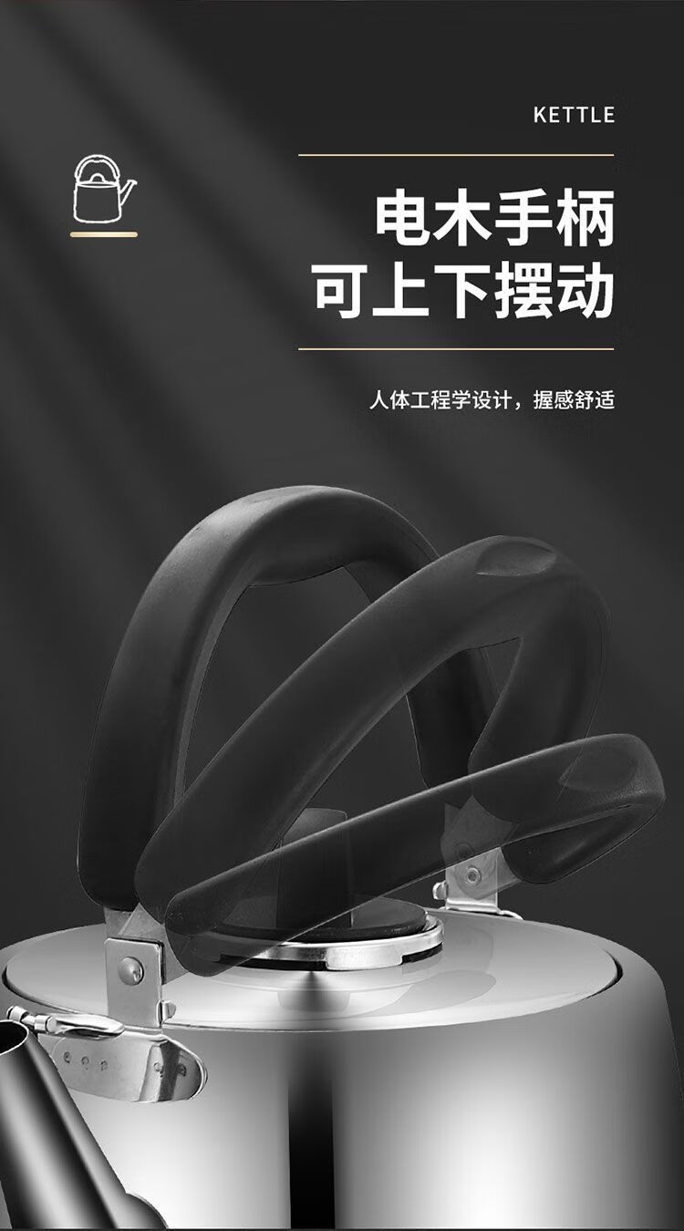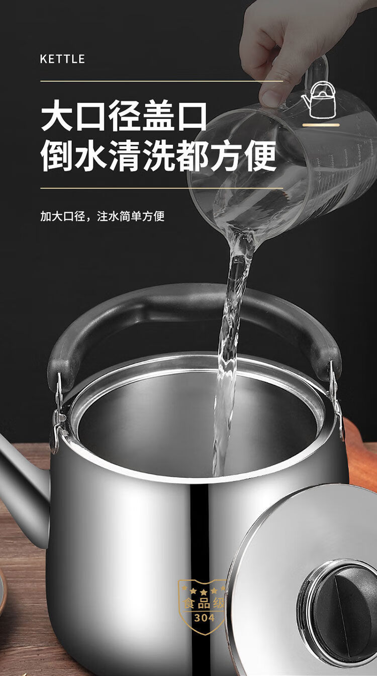 MOZHOU German quality kettle 304 stainless steel new gas kettle large capacity household whistle gas stove electric huge thick European style very small 3L not plugged in