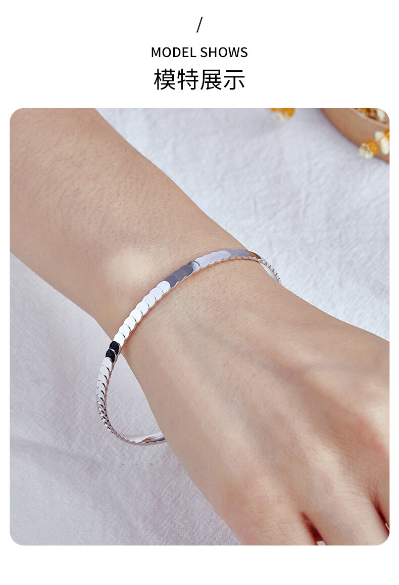 Chinese jewelry pt950 platinum bracelet for women platinum dragon scale plain circle round bracelet birthday anniversary gift for girlfriend and wife platinum fish scale bracelet + brand gift box 55# ring mouth gold weight about 14.4g
