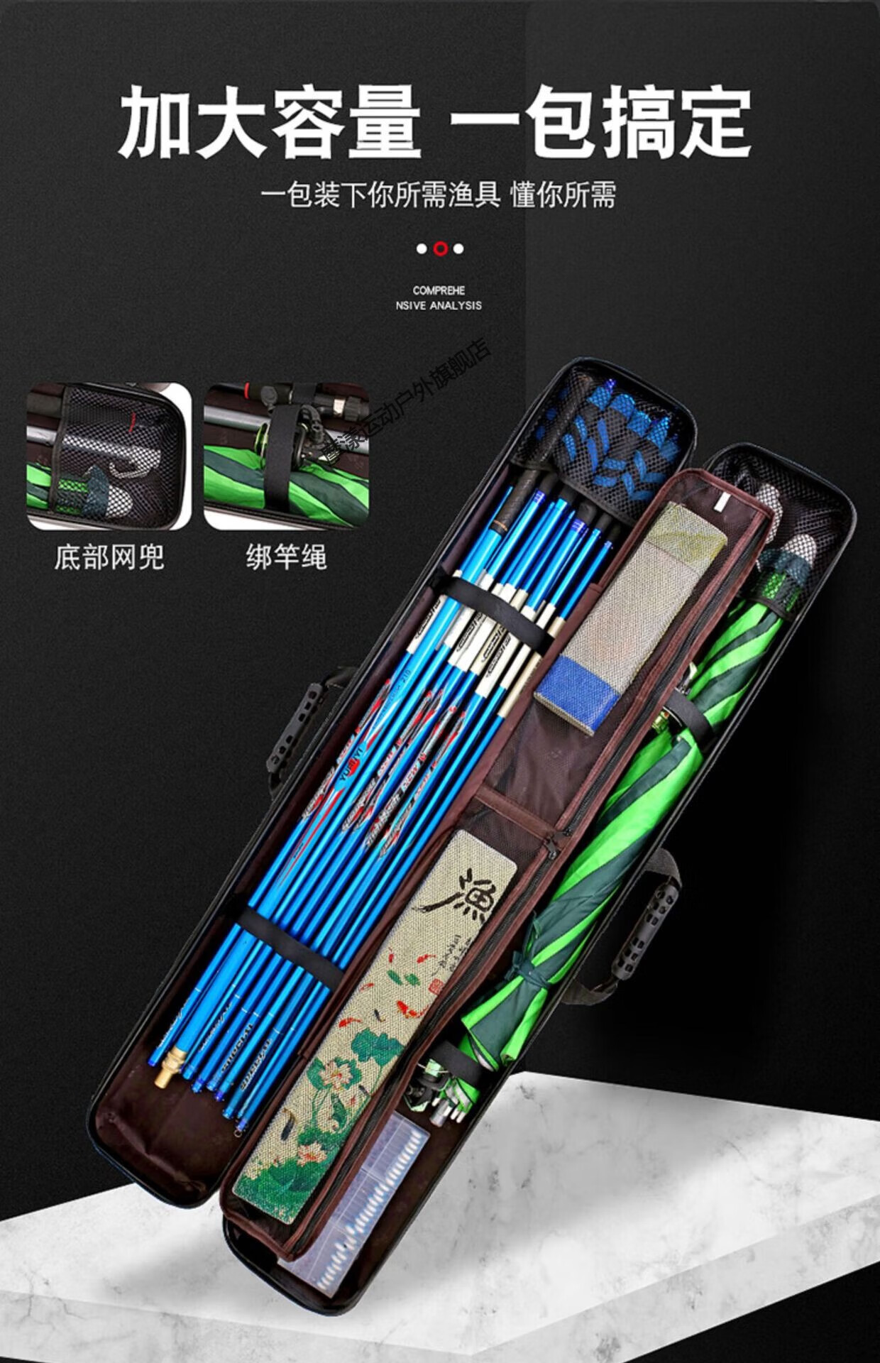 Kaooseen Fishing Bag Fishing Rod Bag Hard Shell Lightweight Fishing Gear Bag Large Capacity Widened Three-Layer Storage Fishing Rod Bag Black 70*20*13cm