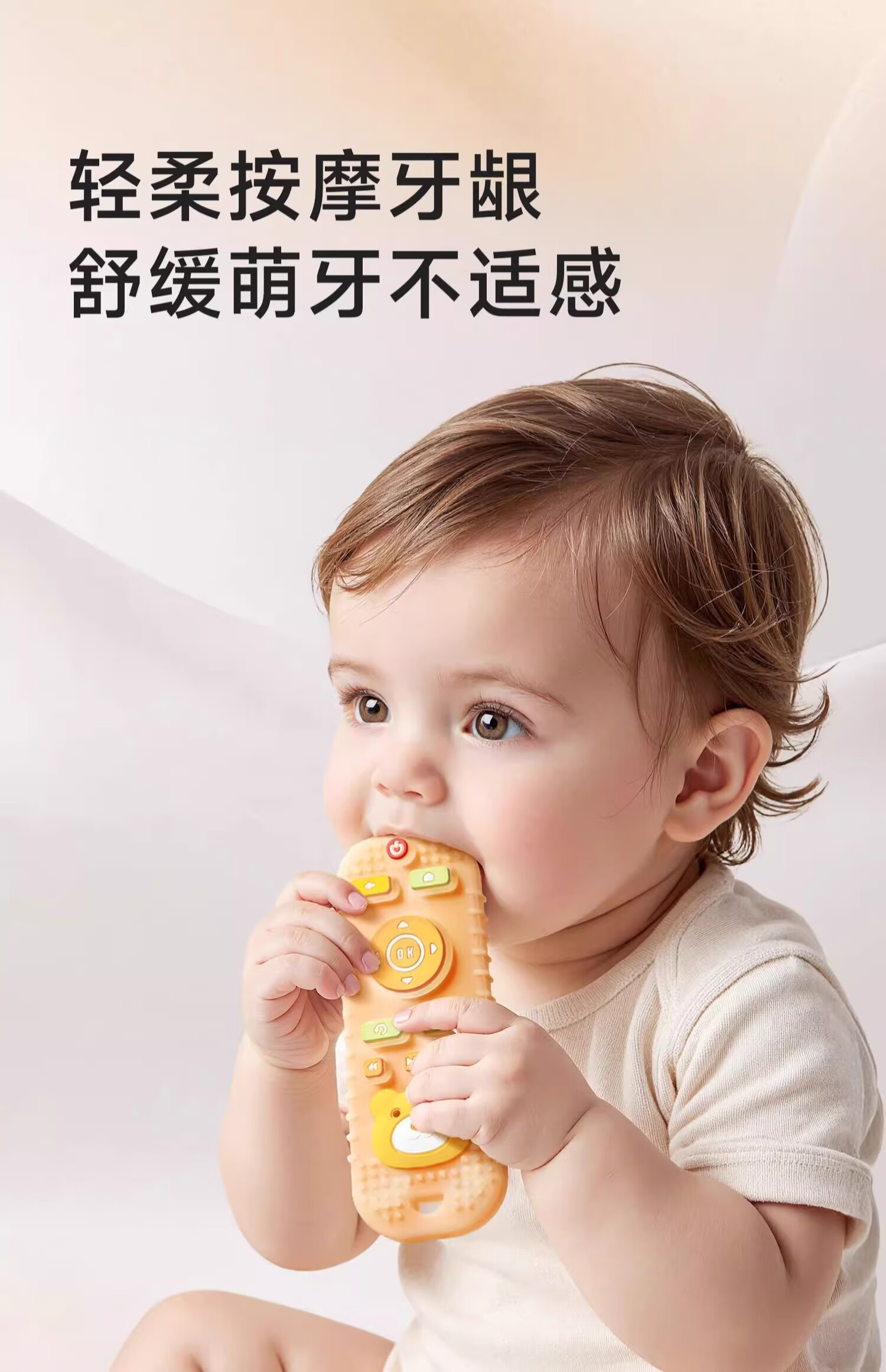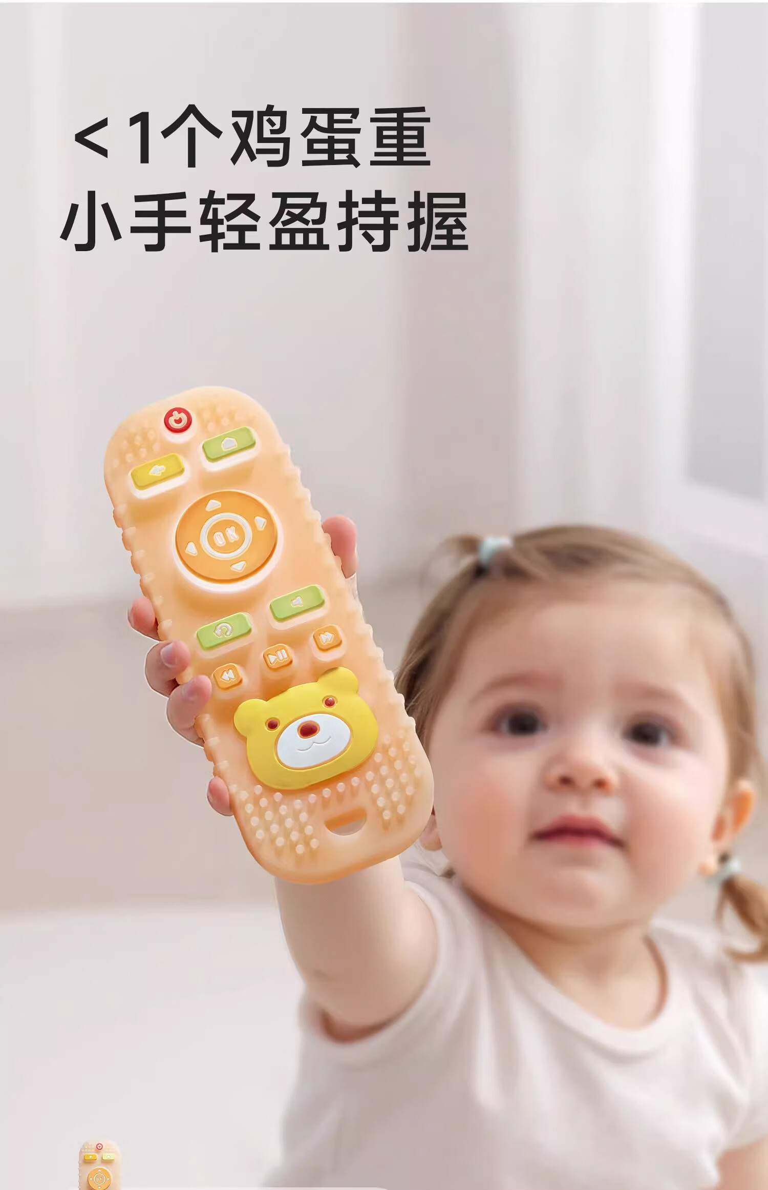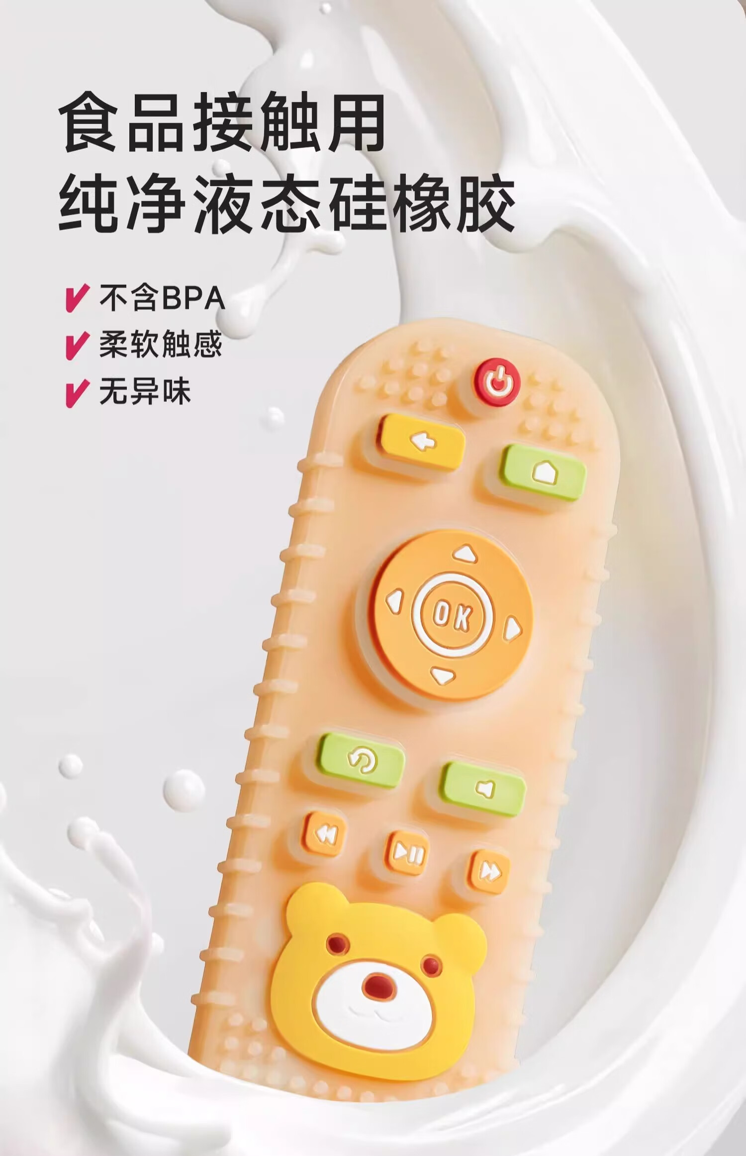 Aibedila remote control teether, baby teething stick, oral chewing gum, small month old chewing gum, 4-month-old baby silicone chewable toy, yellow bear + molar stick-send box, silicone chewable