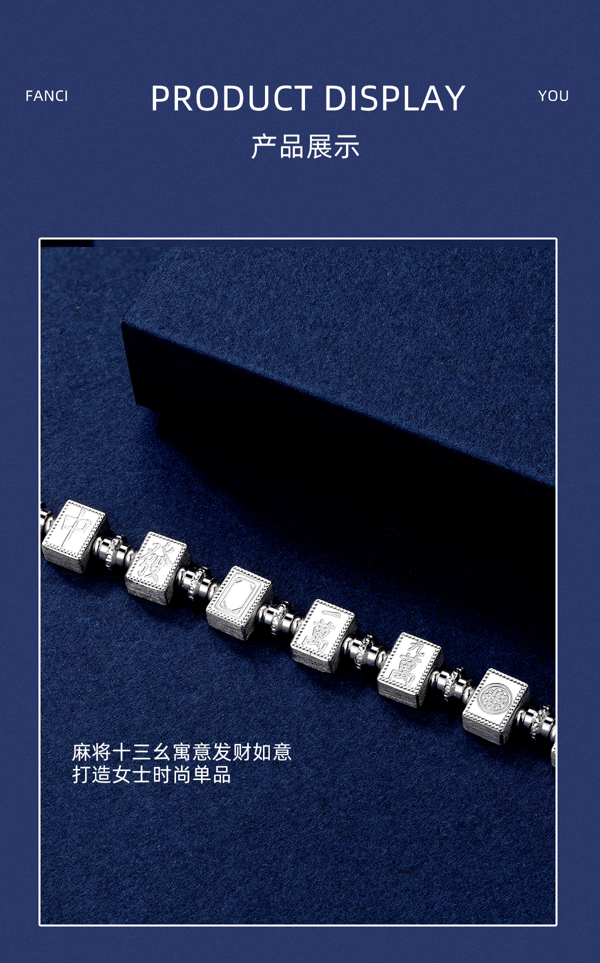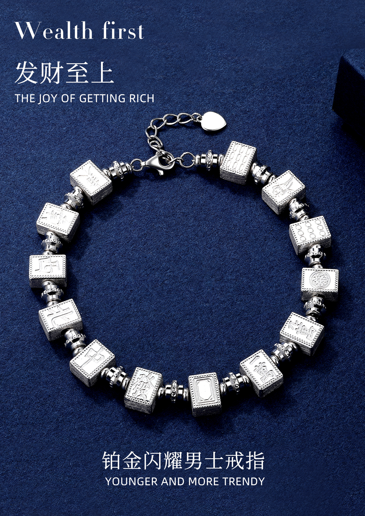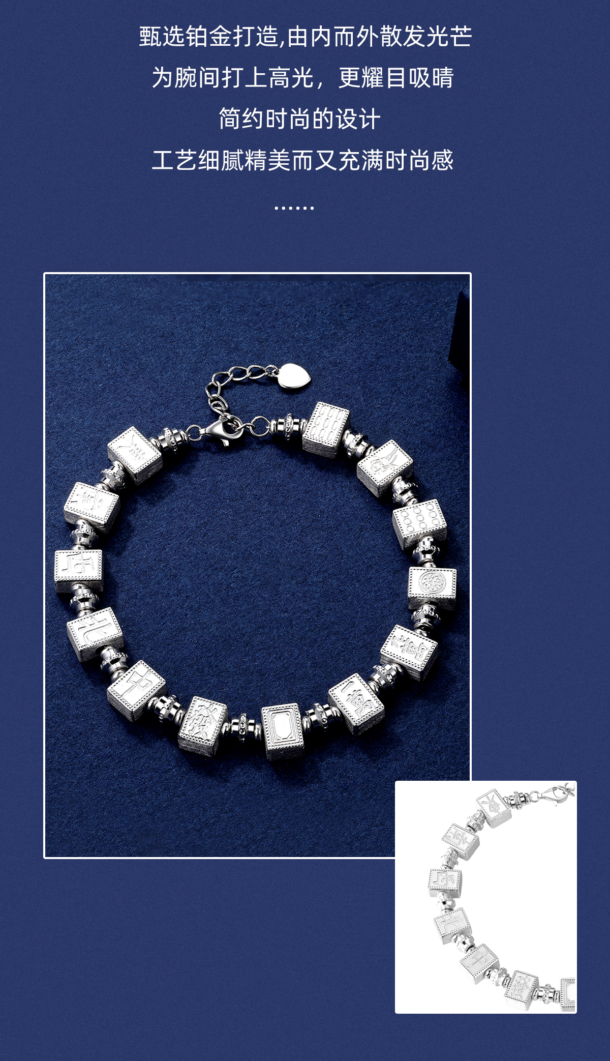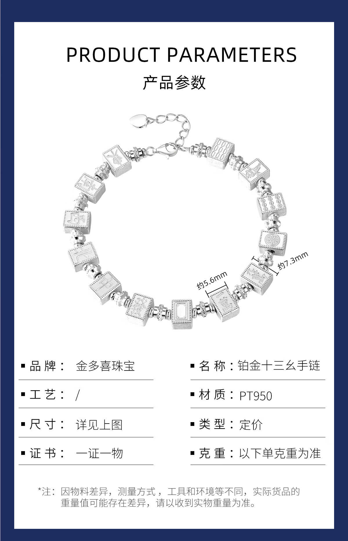 Jin Duoxi's new platinum Pt950 thirteen-unit platinum bracelet for men and women, mahjong transfer bead handle bracelet for women, about 16.5+2.5cm, weighing about 21.44 grams