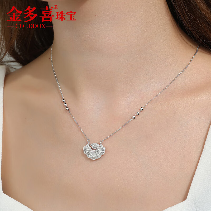 Jin Duoxi platinum necklace women's pt950 platinum necklace women's platinum new sweater chain set chain safety buckle lock bag chain gift about 42+2.5+2.5cm weighs about 7.9-8.1 grams