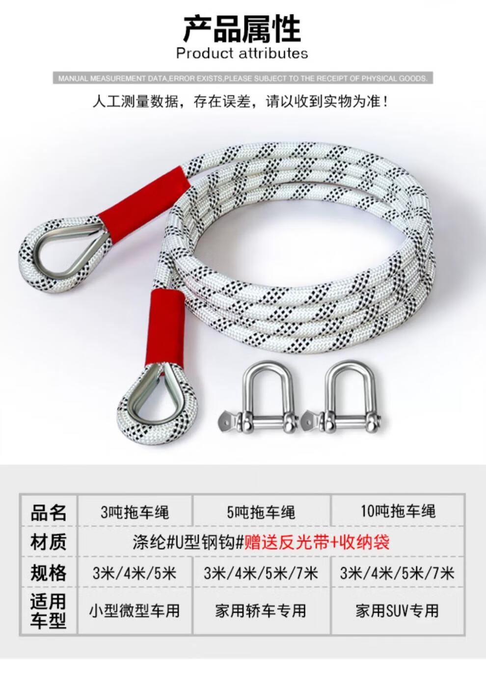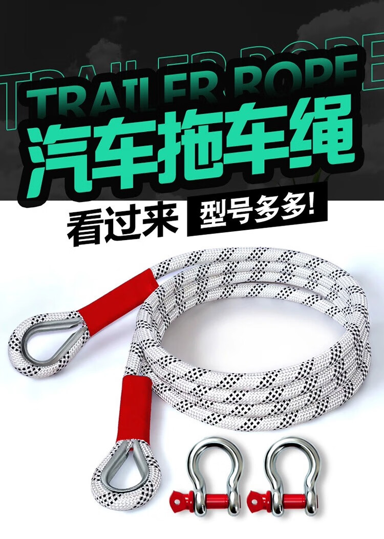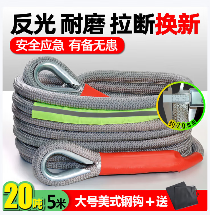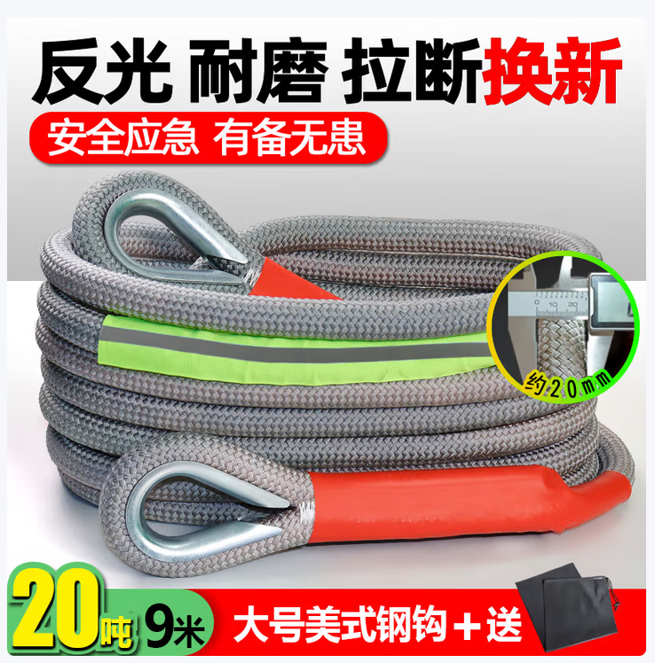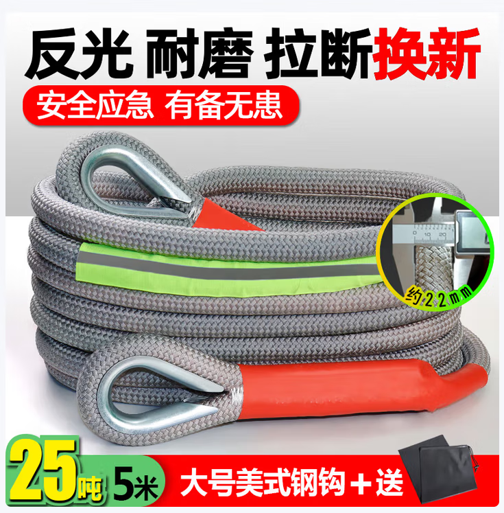 Black Python car tow rope, off-road vehicle special thickened pull rope rope, truck tow rope, rescue rope for medium and large size, 25 tons 7 meters