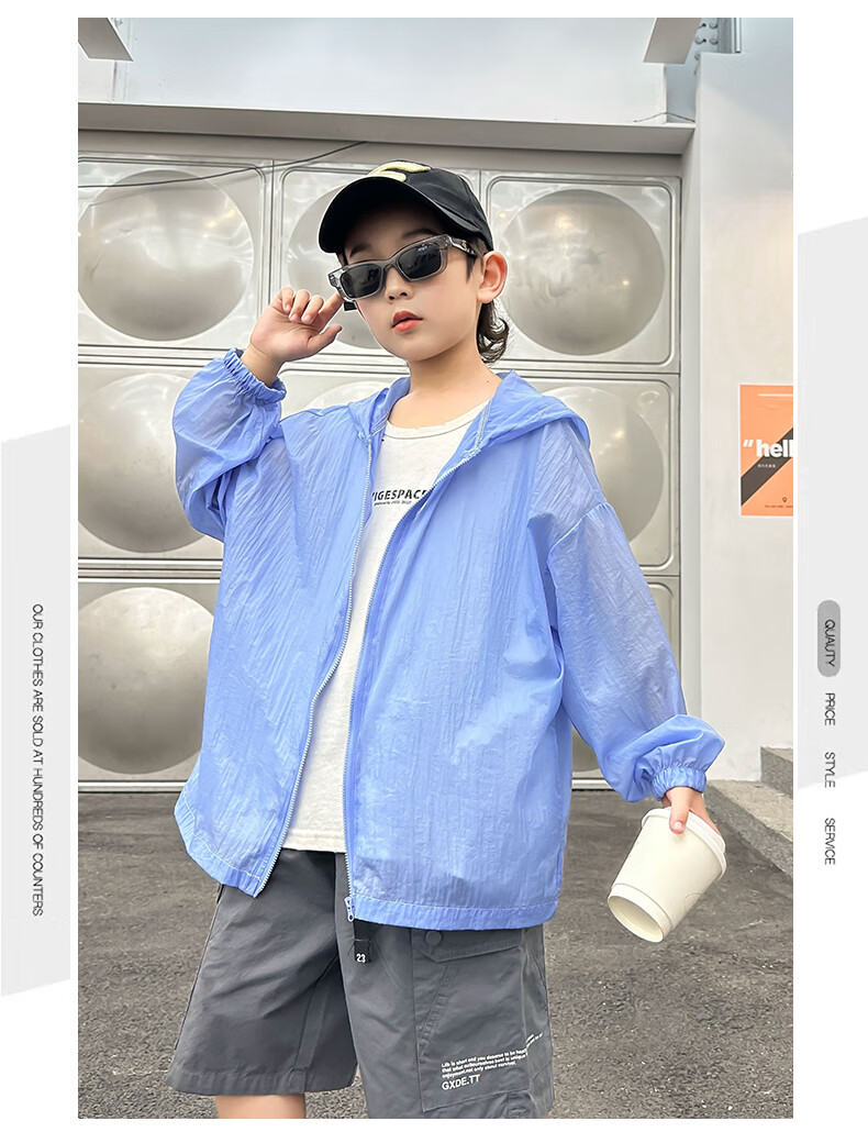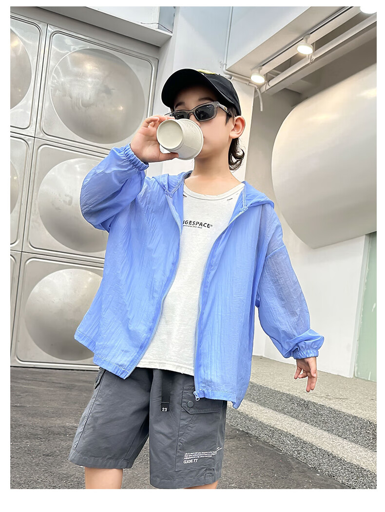 G.DUCKKIDS2025 New Boys Ice Silk Cooling Sun Protection Clothing Medium and Large Children Summer Air Conditioning Shirt White Sun Protection Clothing Children's Day Gift 160 cm