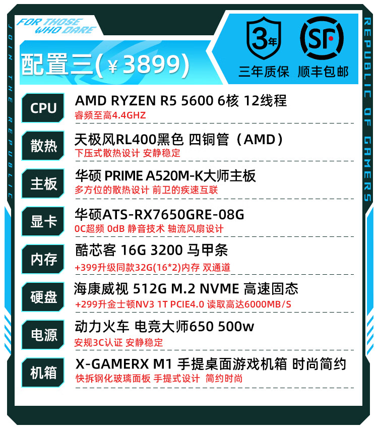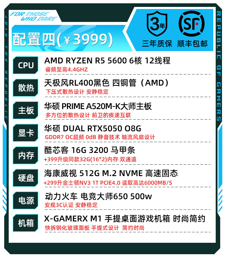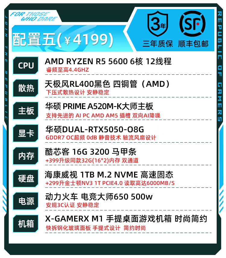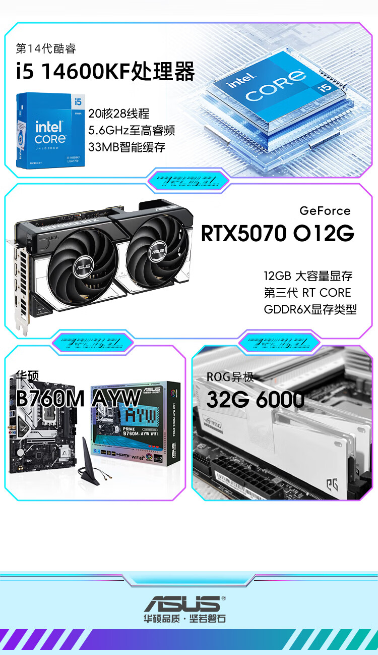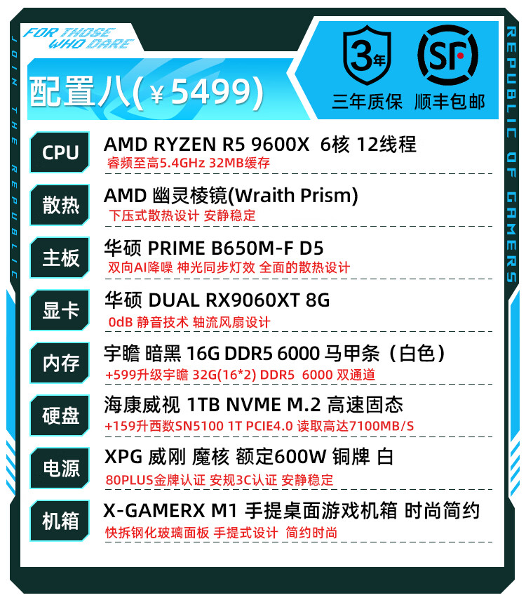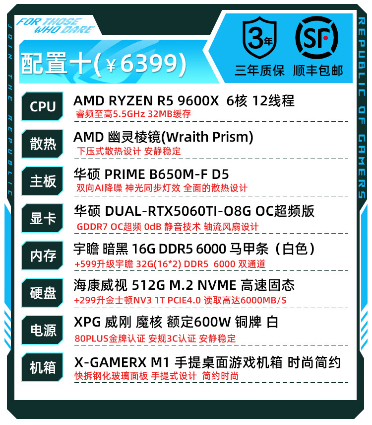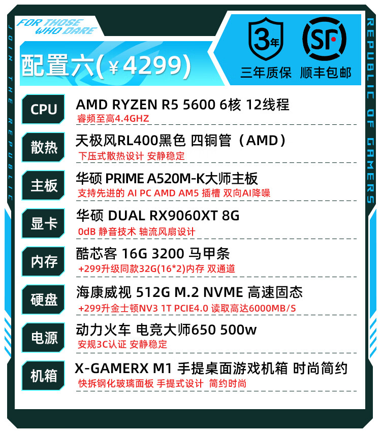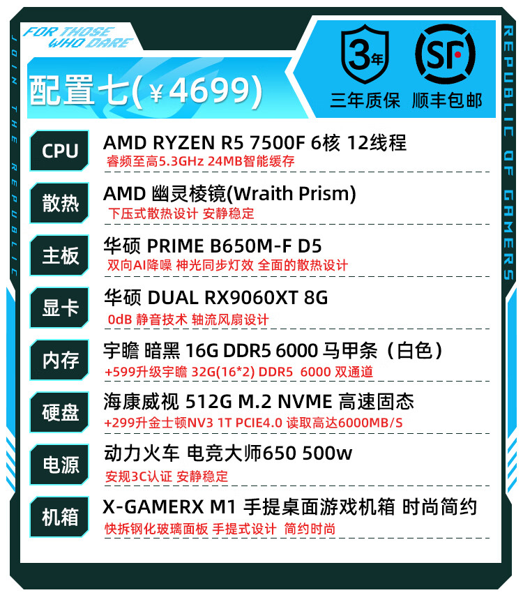 ASUS R7 9700X ASUS RTX5060TI host 9060XT desktop computer high-end MIIN portable ITX game live broadcast design assembly machine Ai rendering video editing machine configuration 1 R5 5600+R5 230