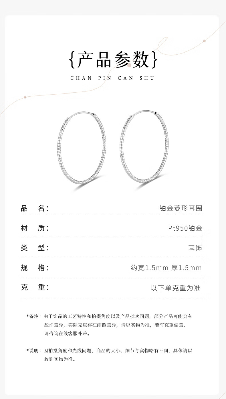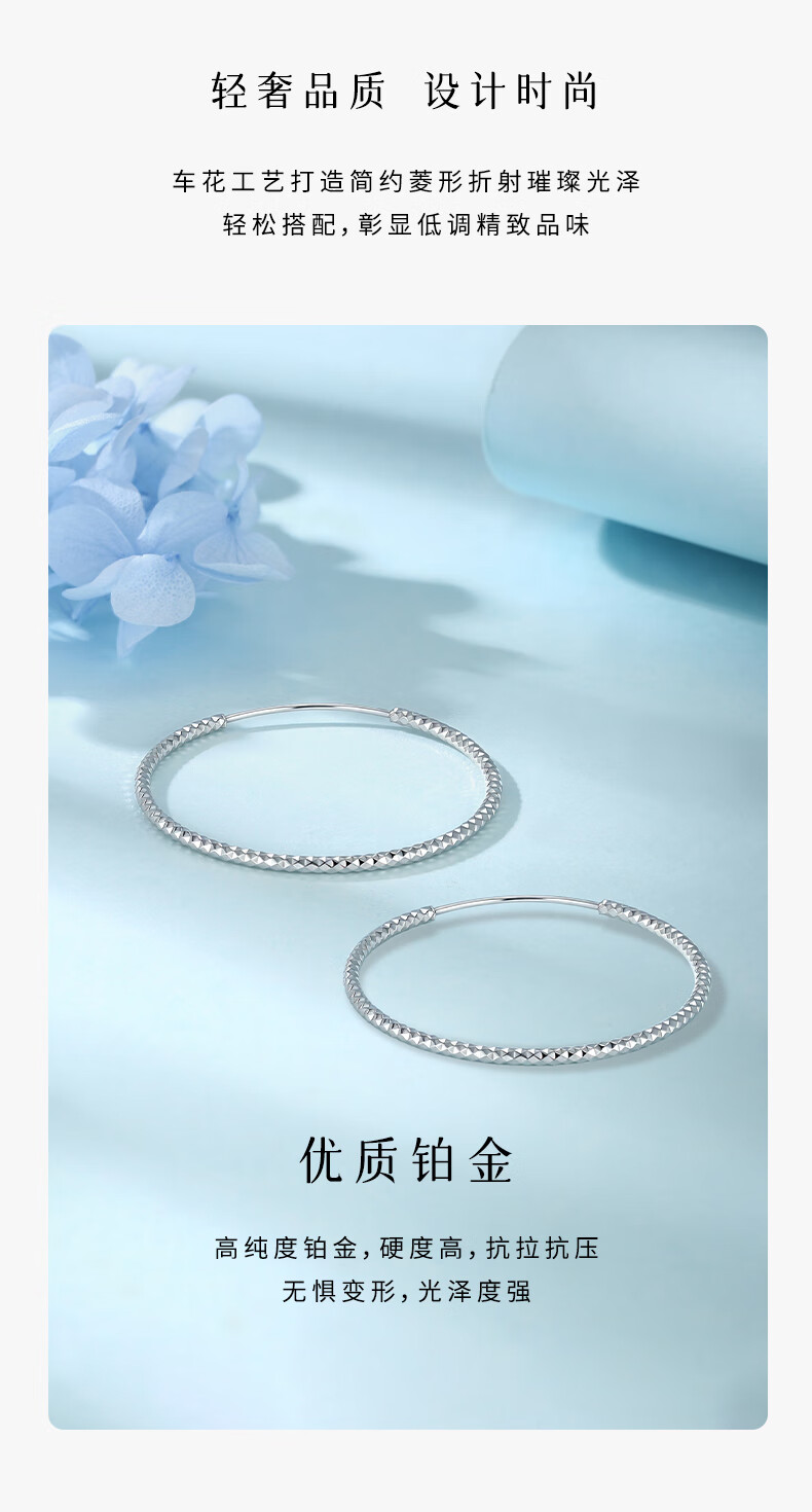 Cuihua pt950 sparkling platinum earrings, simple and versatile earrings for women, a birthday gift for your girlfriend and wife, a pair of platinum earrings, about 2.2g