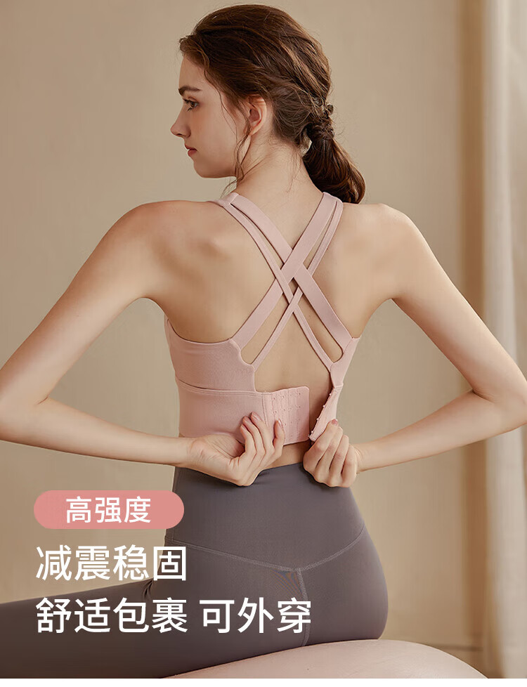 LULULOMDDW sports bra, yoga bra, no-wear bra, high-strength shockproof push-up Pilates vest for women, pink L