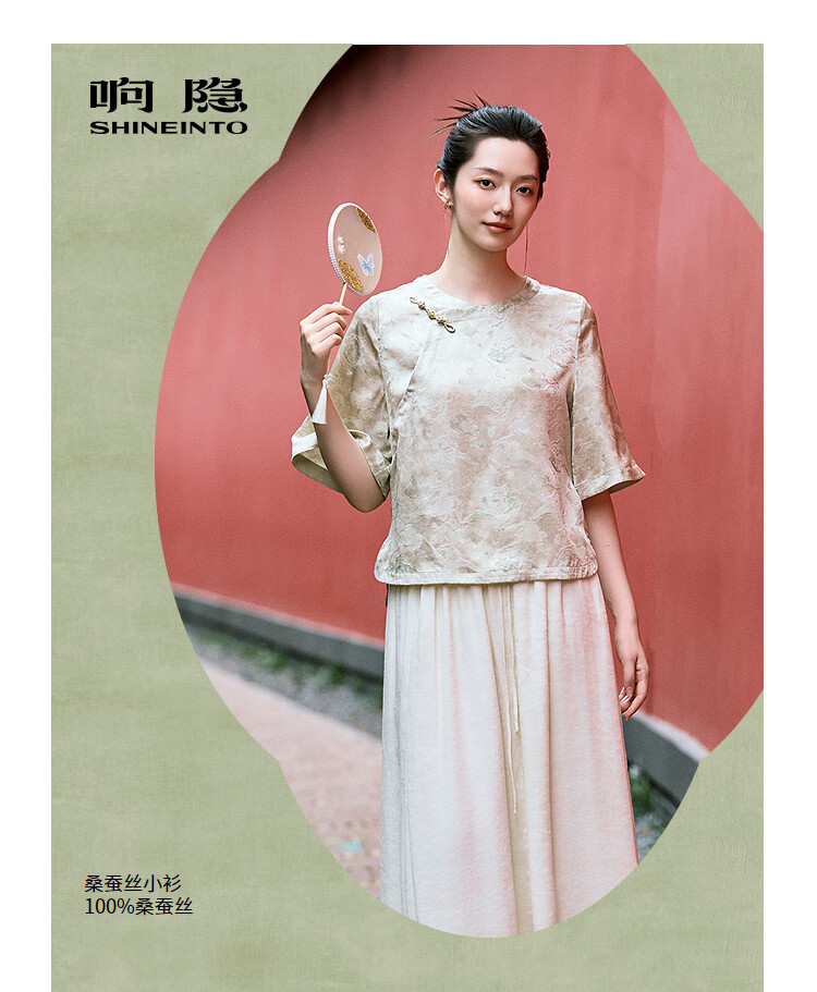 Xiangyin online exclusive autumn mulberry silk shirt for women 6535101008 light green L
