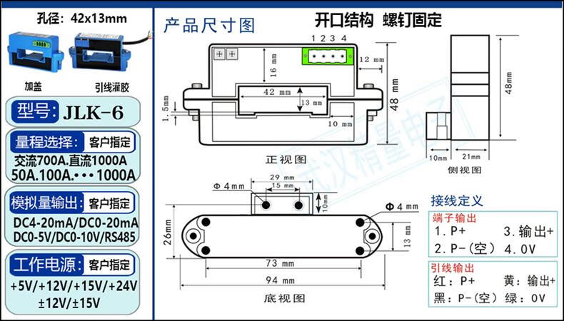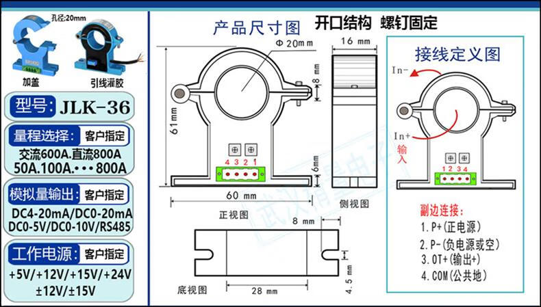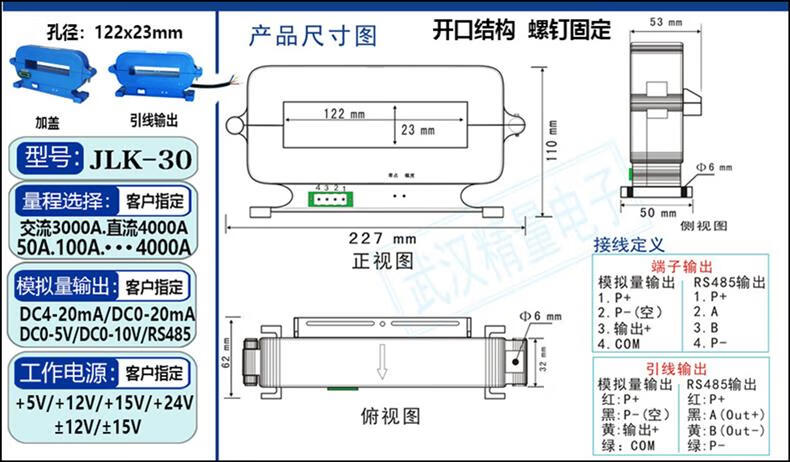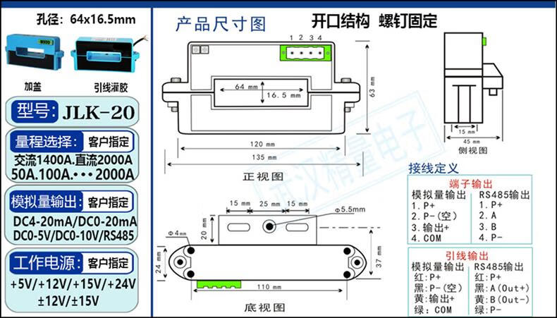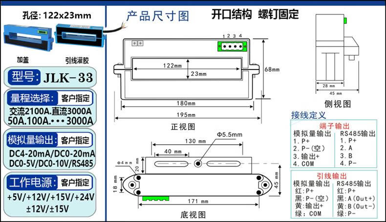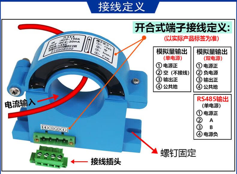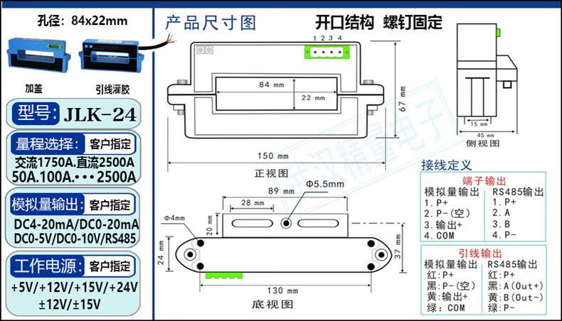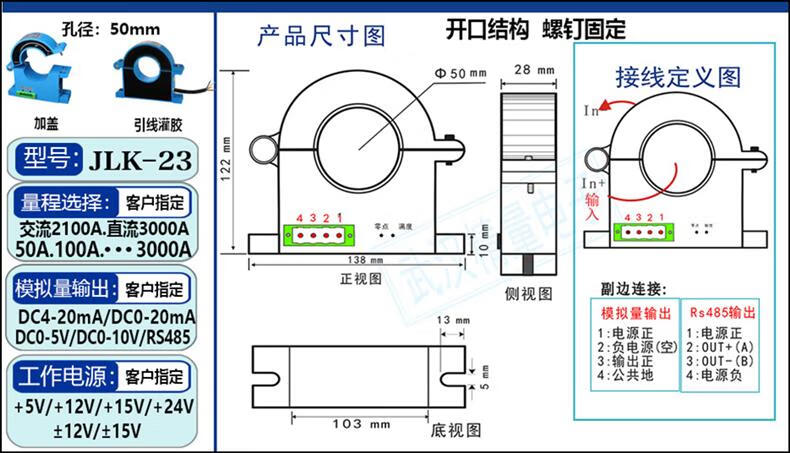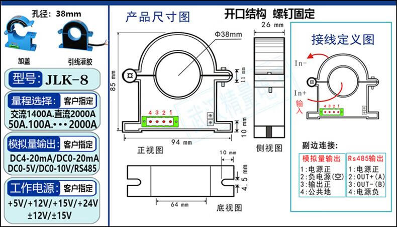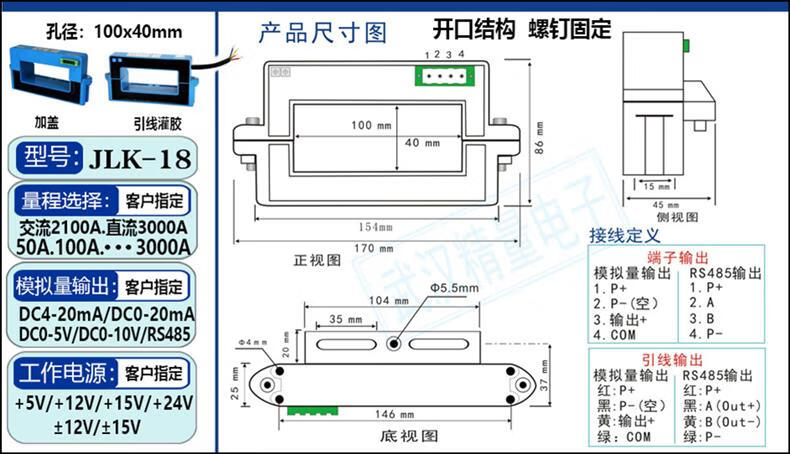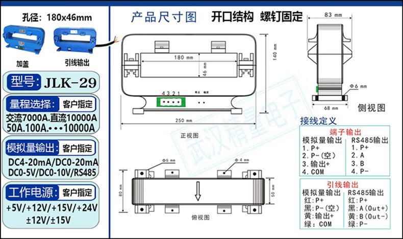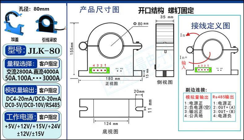 Opening and closing AC/DC current Hall isolation transmitter sensor transformer 4-20mA0-10VRS485 (5). JLK80 opening aperture 80mm user-provided range 4