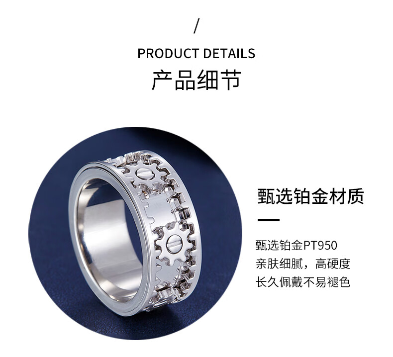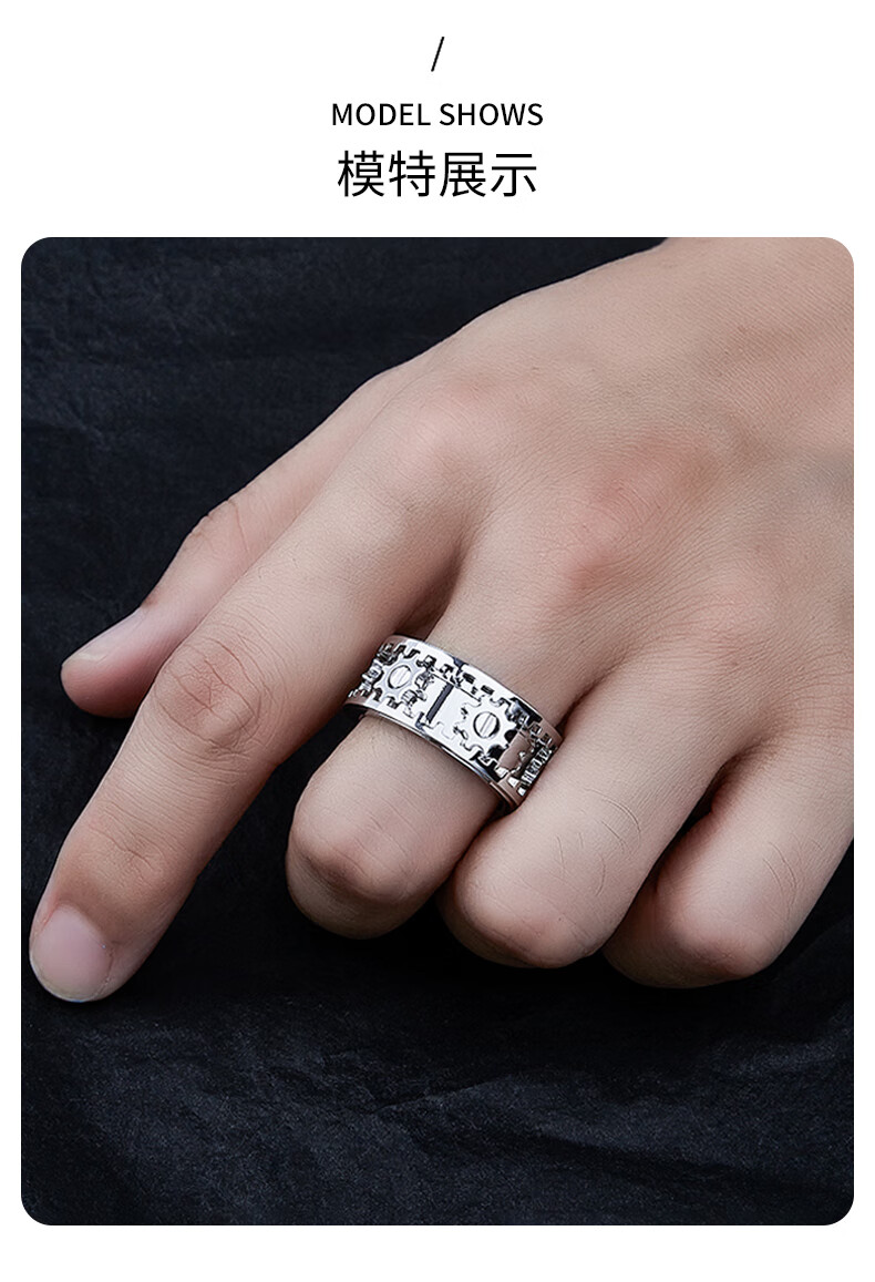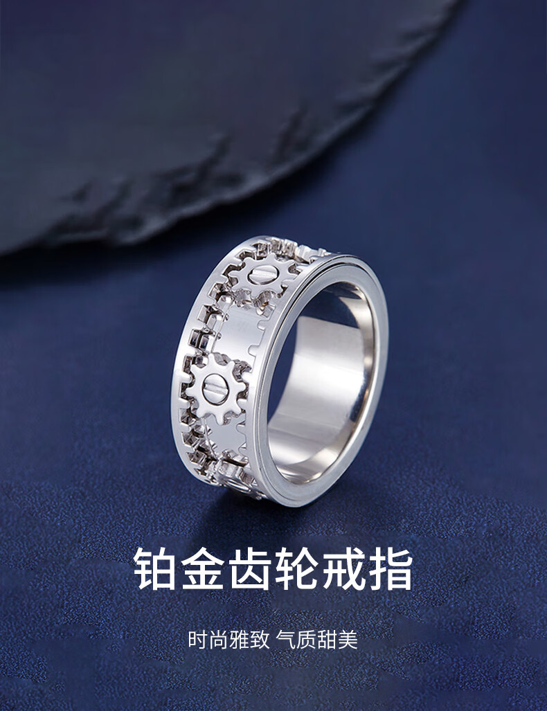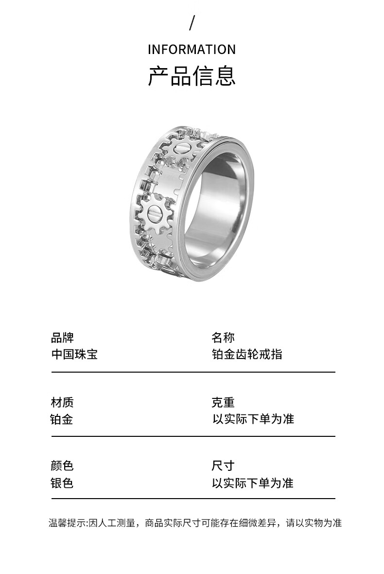 Chinese jewelry platinum pt950 ring men's ring rotating gear fixed mouth platinum birthday anniversary gift for boyfriend and husband platinum gear ring + brand gift box 18# ring mouth gold weight about 24g