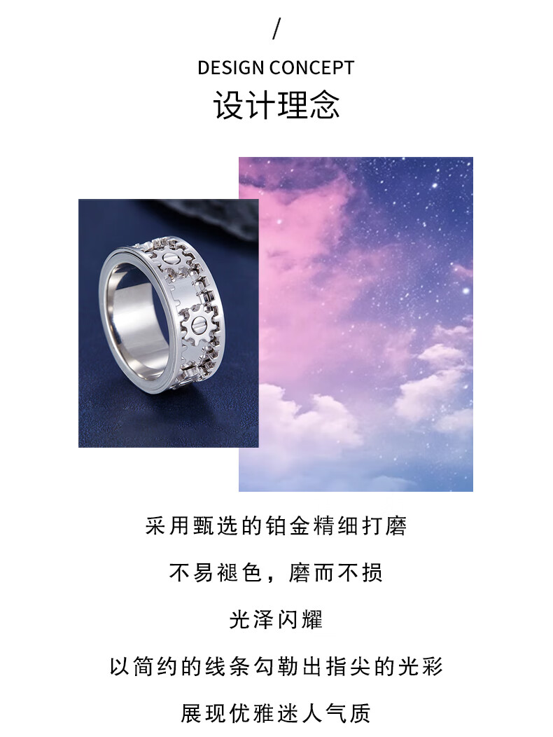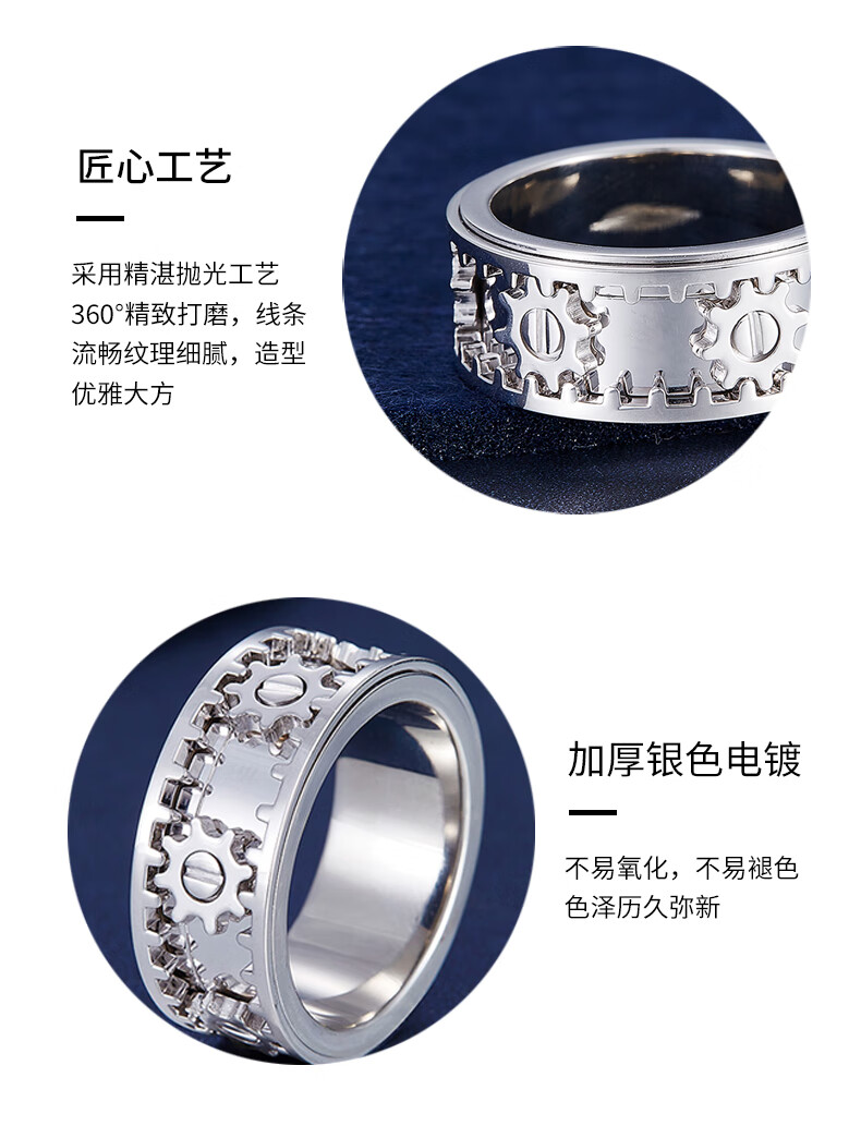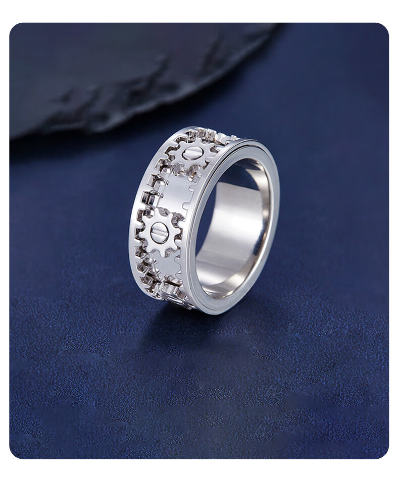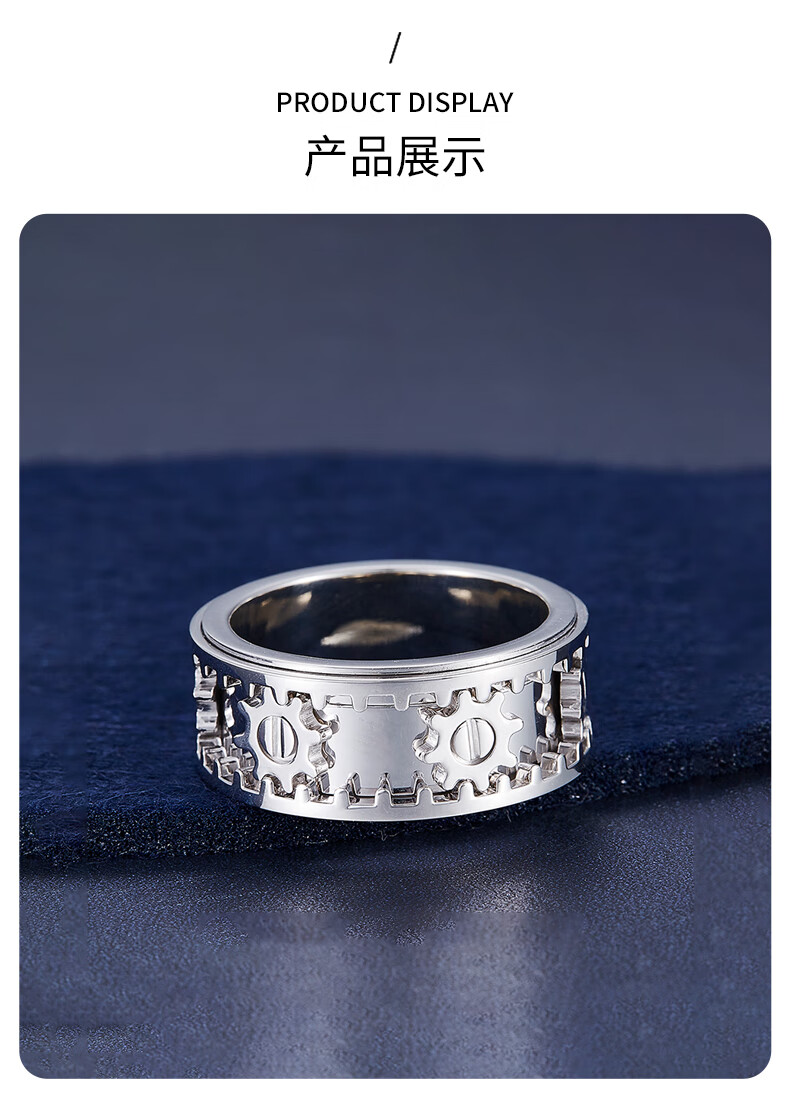 Chinese jewelry platinum pt950 ring men's ring rotating gear fixed mouth platinum birthday anniversary gift for boyfriend and husband platinum gear ring + brand gift box 18# ring mouth gold weight about 24g