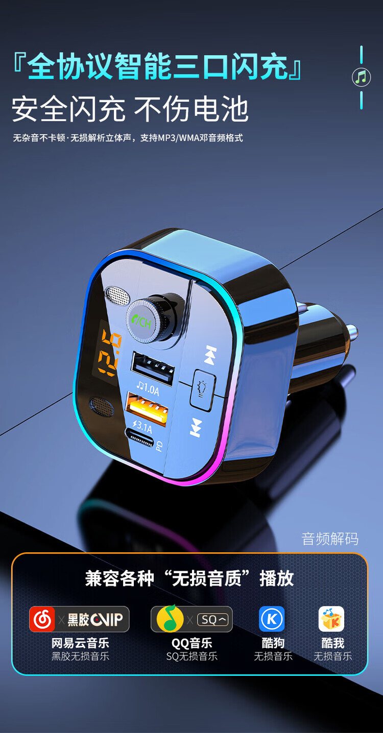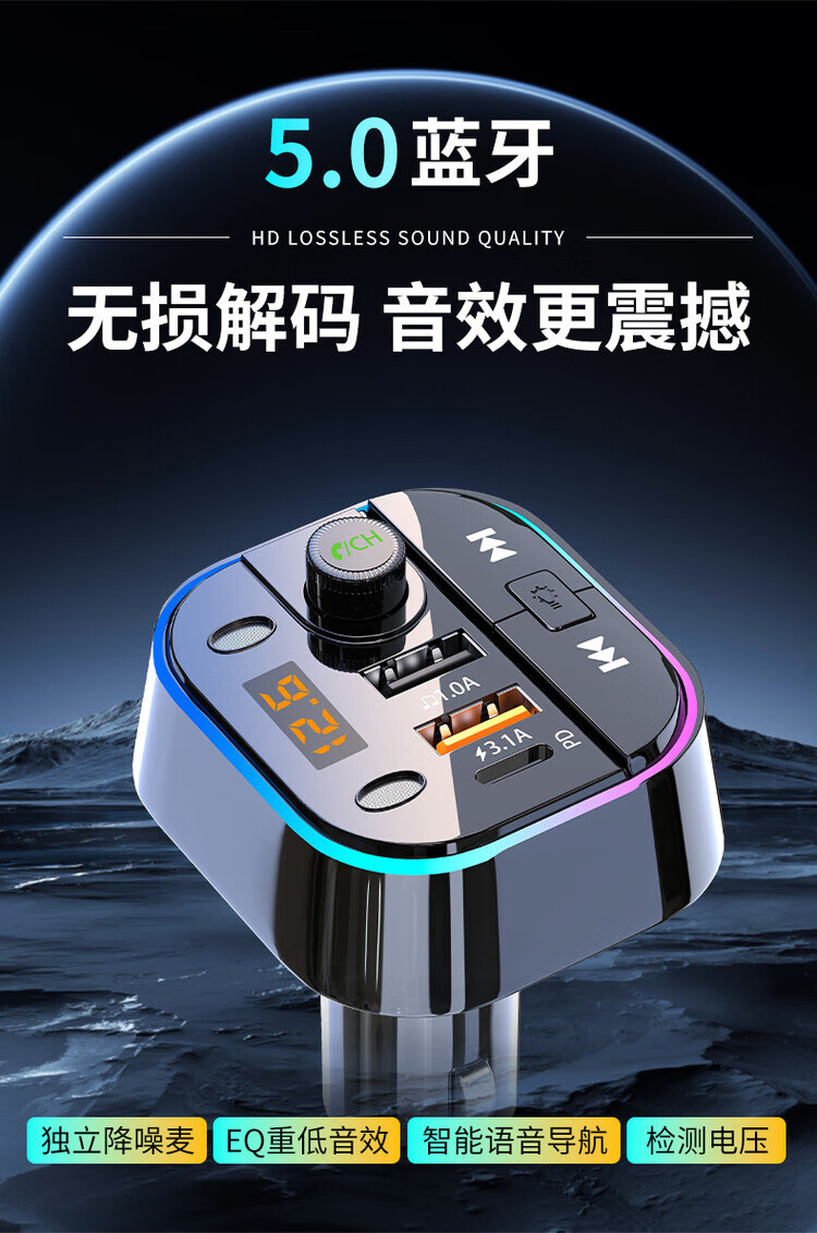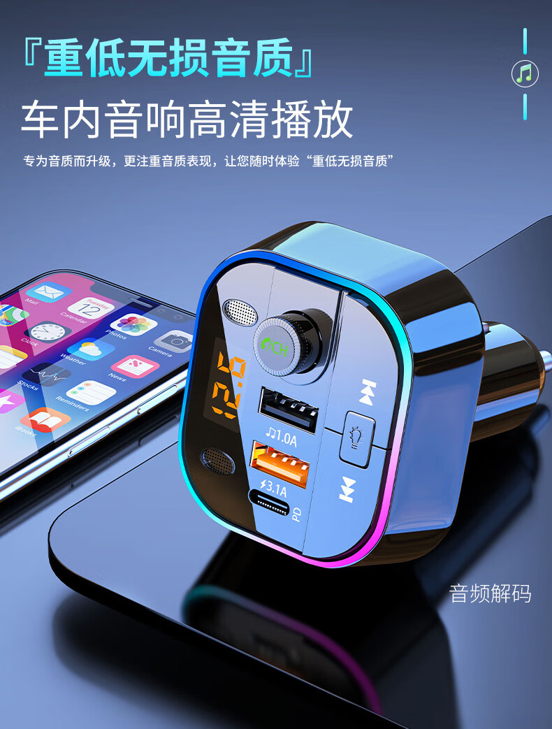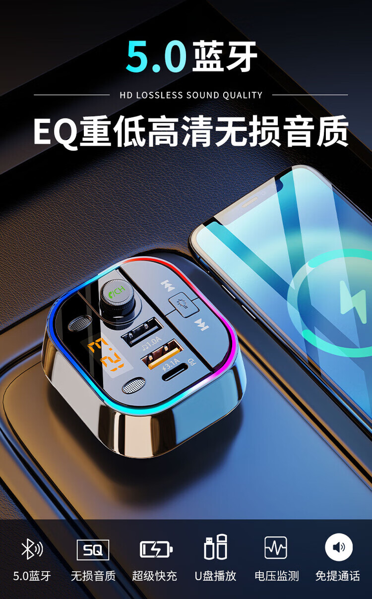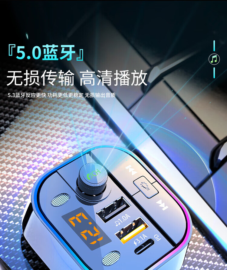 Initial concept of car Bluetooth receiver mp3 player multi-function lossless sound quality cigarette lighter adapter car charger streamer black fast charge + 5.0 lossless Bluetooth