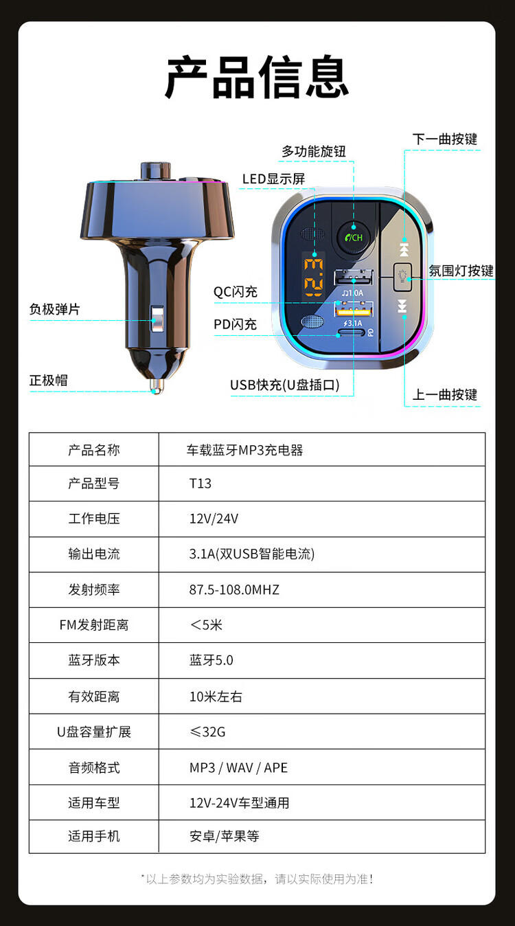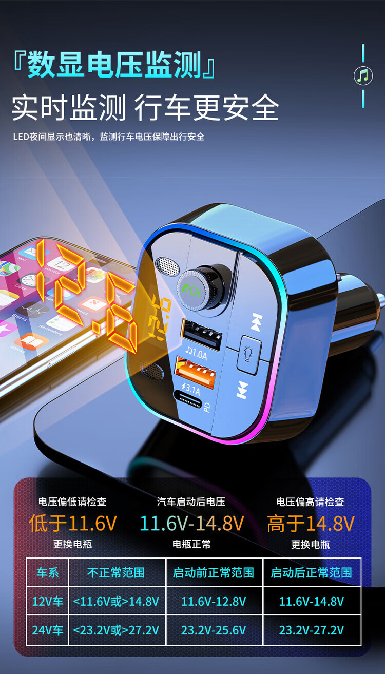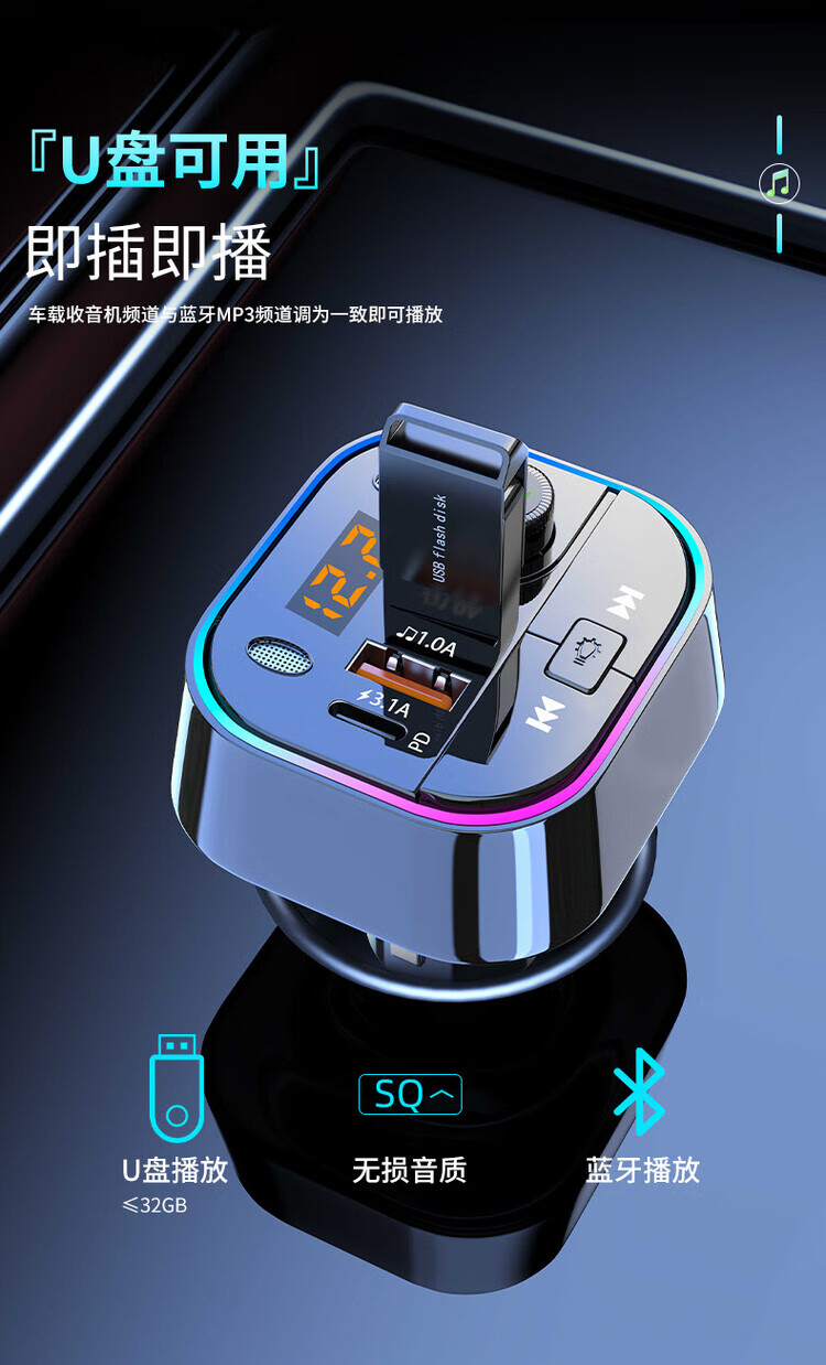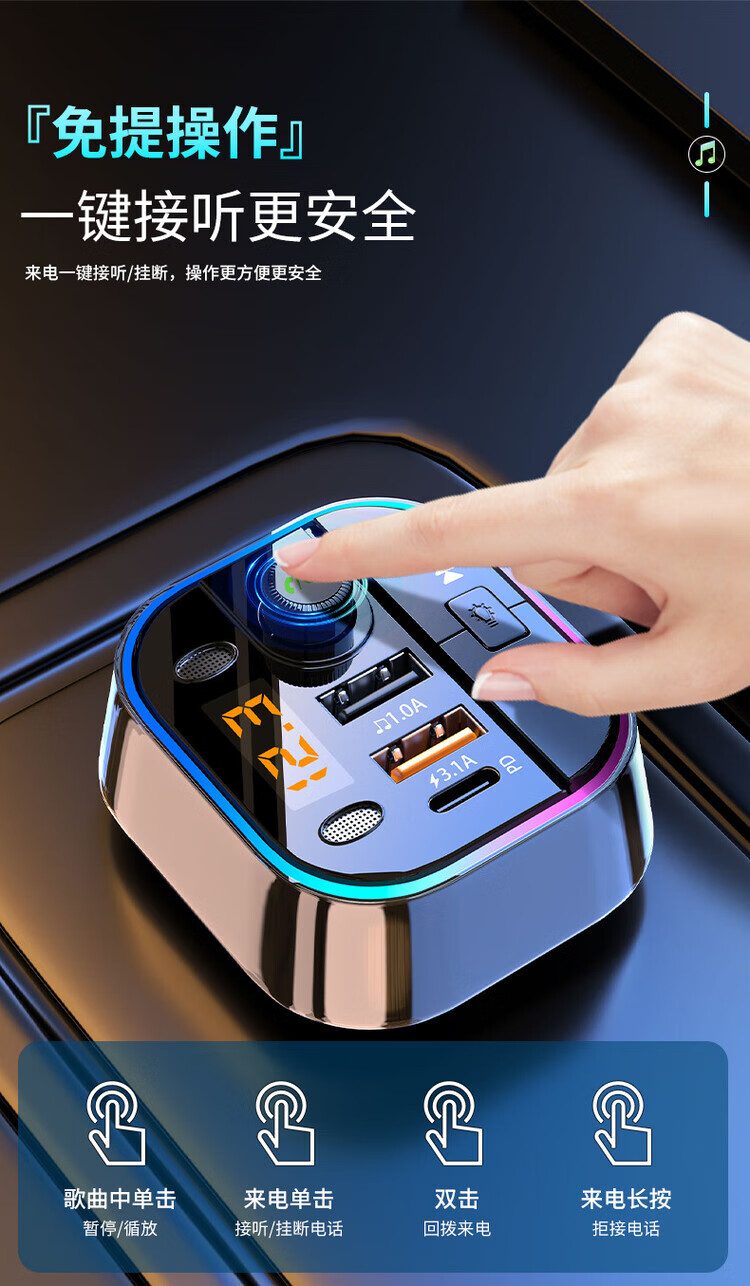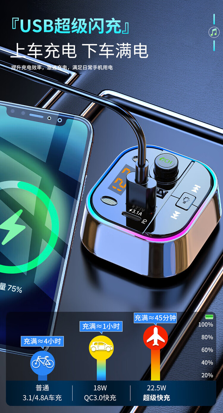 Initial concept of car Bluetooth receiver mp3 player multi-function lossless sound quality cigarette lighter adapter car charger streamer black fast charge + 5.0 lossless Bluetooth