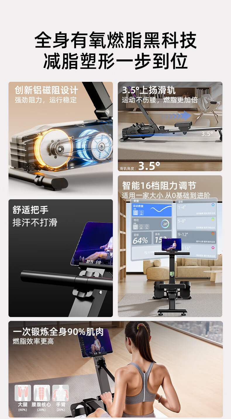 Yingerjian Super Fat Burning Intelligent Rowing Machine Home Gym Trainer Magnetic Control Silent Rowing Machine Aerobic Fitness Exclusive Edition - Intelligent Internet + Personal Training Course