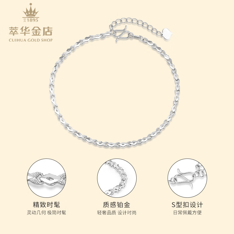 Cuihua pt950 diamond-shaped platinum bracelet, fashionable and versatile women's jewelry, a birthday gift for girlfriend and wife, platinum diamond-shaped bracelet, about 4g