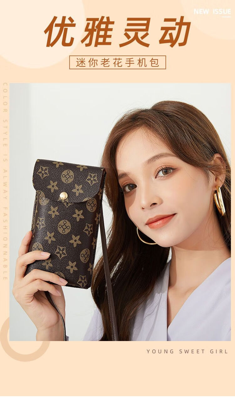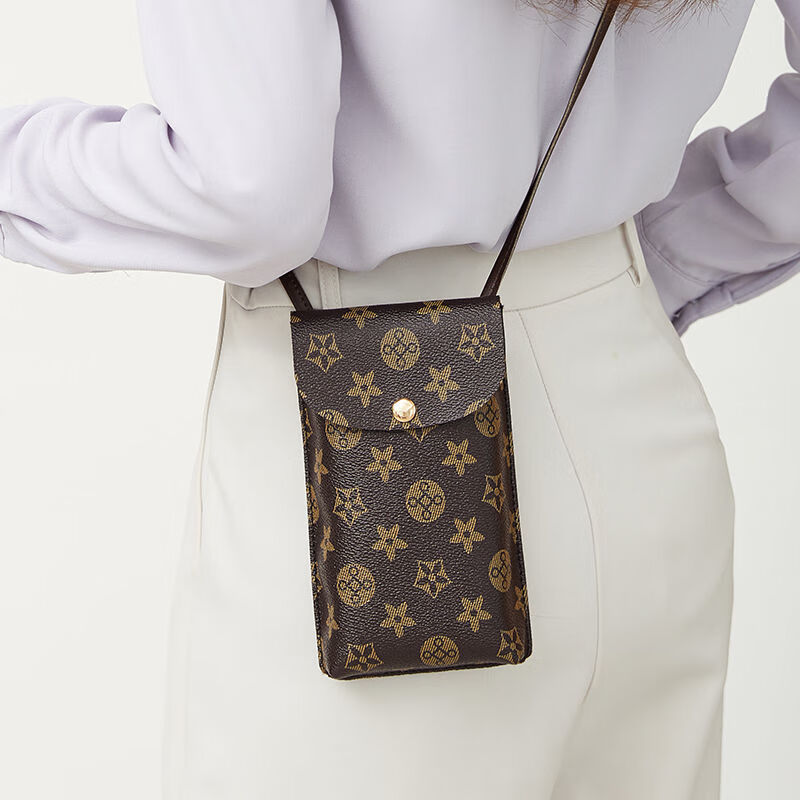 Kangaroo Rubik's Cube Mobile Phone Bag for Women Internet Celebrity Vertical Crossbody Mobile Phone Bag Retro Mini Mobile Phone Small Shoulder Bag Women's Light Mobile Phone Bag Brown Thickened Upgraded Multiple Compartments