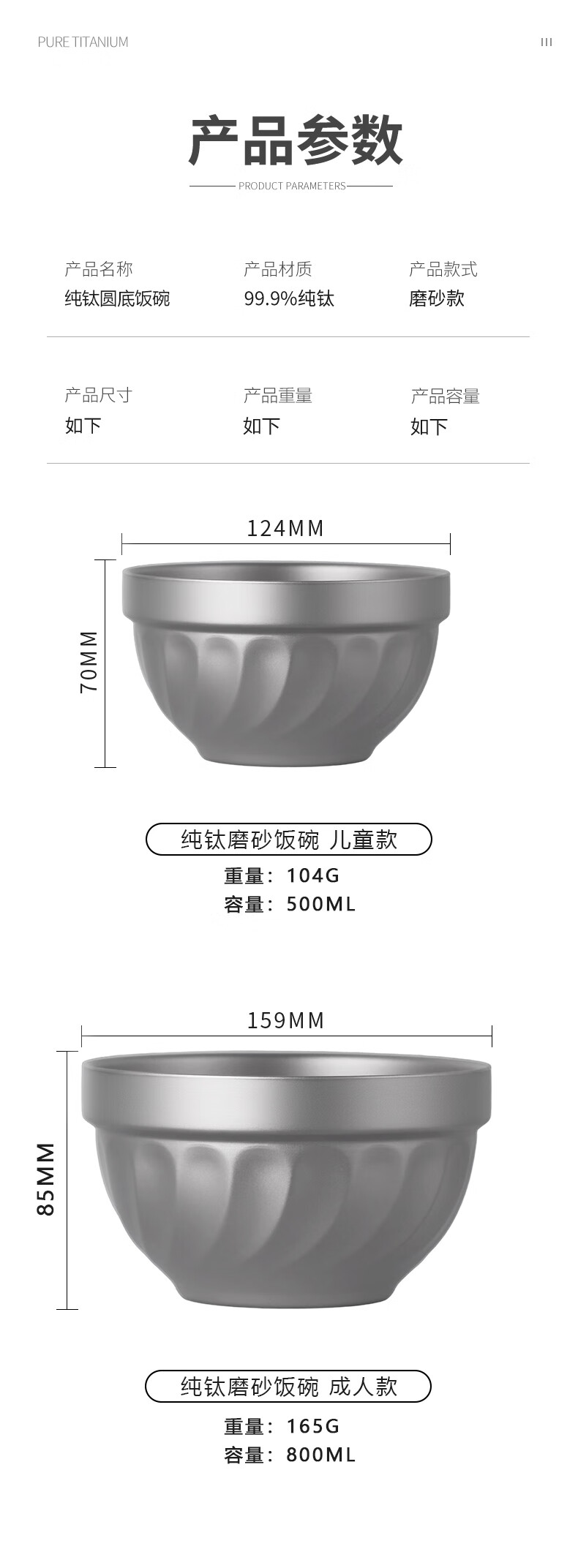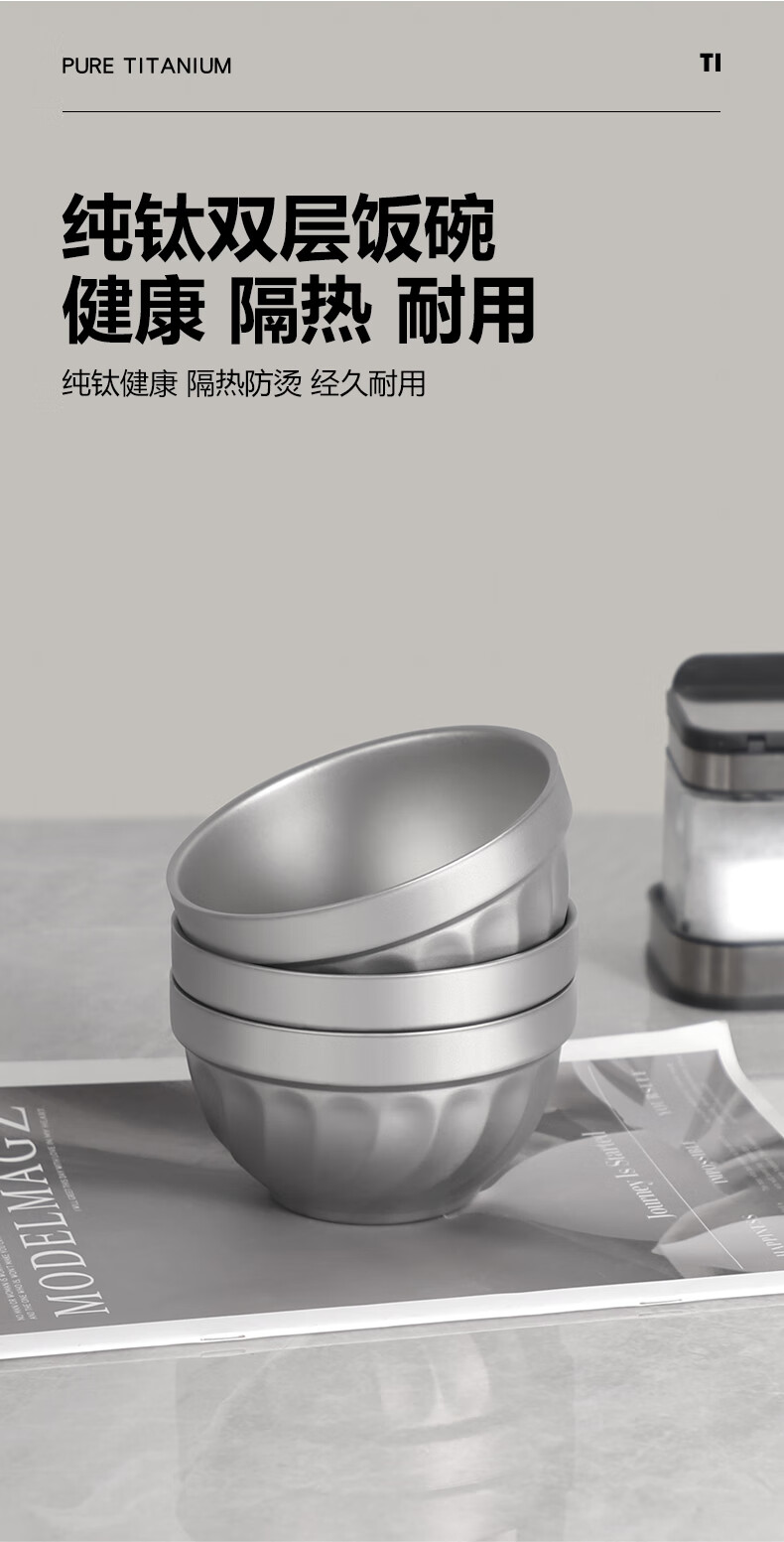 Vibixi pure titanium rice bowl home kindergarten double-layer insulated anti-scalding soup bowl instant noodle bowl for adults and children anti-fall eating titanium bowl pure titanium bowl 500ML 1 piece