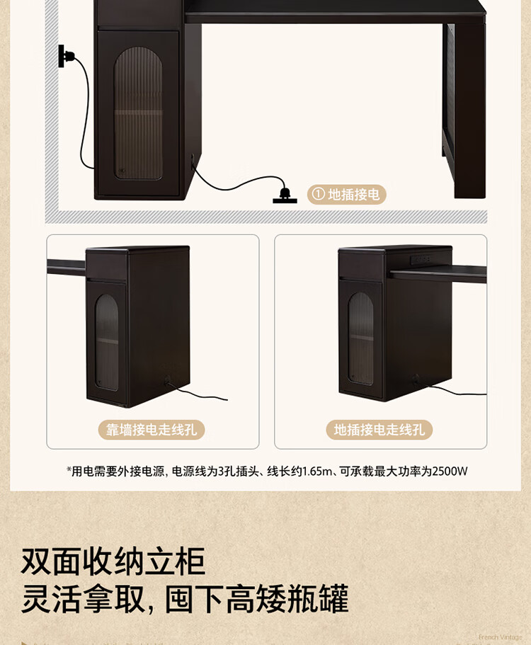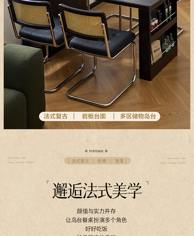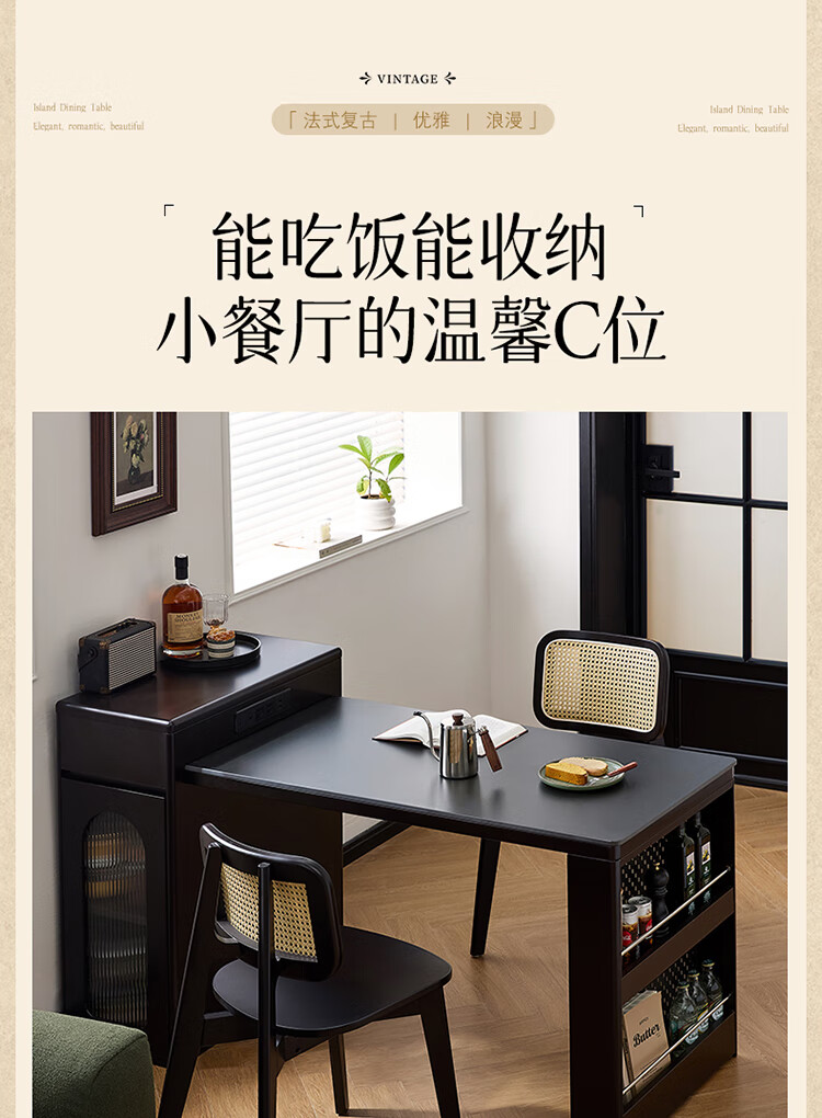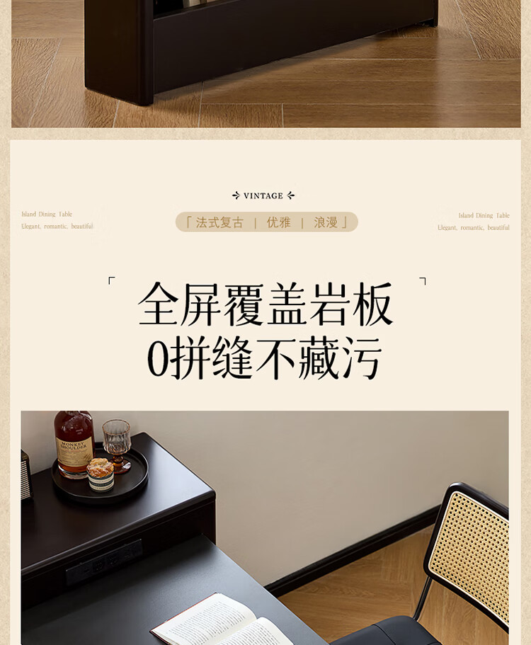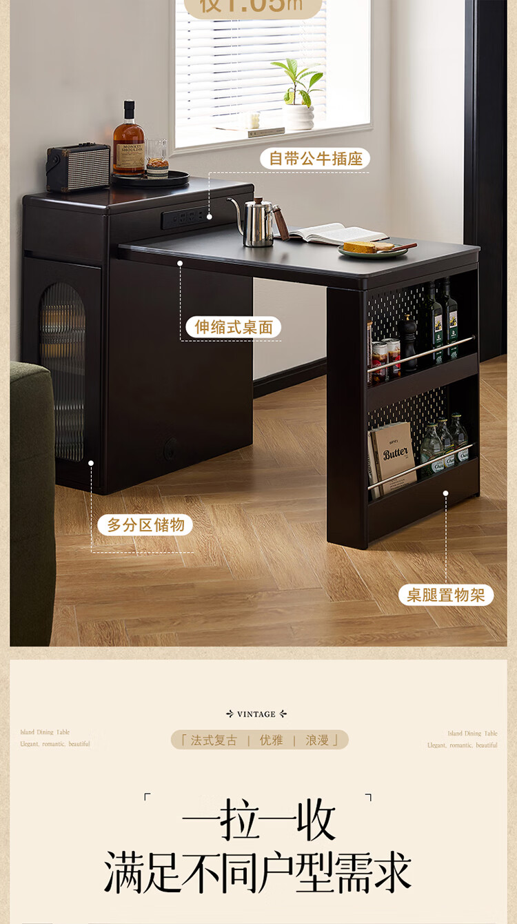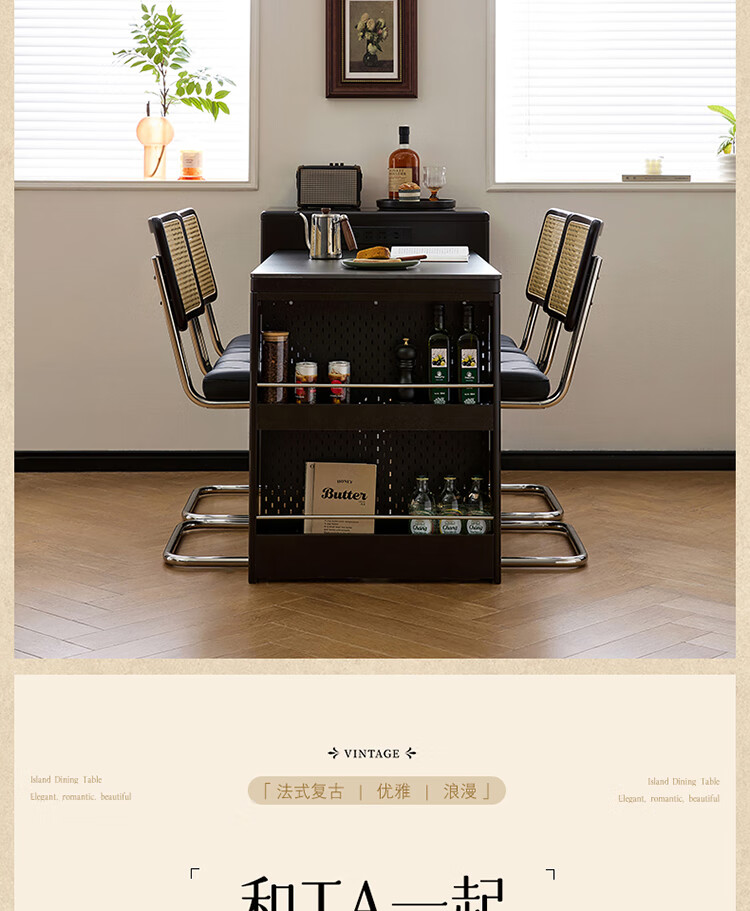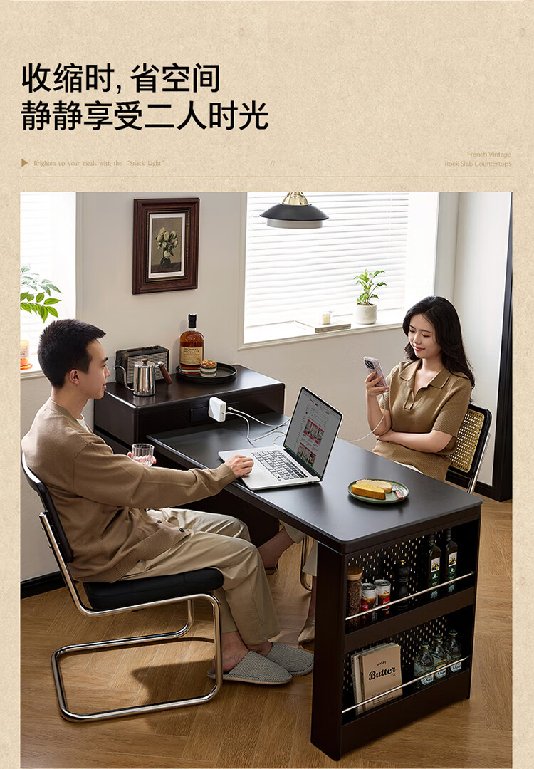 Quanyou Home French Retro Island Table Dining Table Sideboard Integrated Retractable Slate Table Top Dining Table With Chair Set Slate | Island Dining Table Single Table