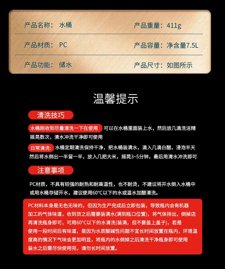 Dekeou pure water bucket empty bucket durable bucket household tea bar water dispenser bucket mineral pure water food grade PC outdoor (thick food grade blue version) 3.78L